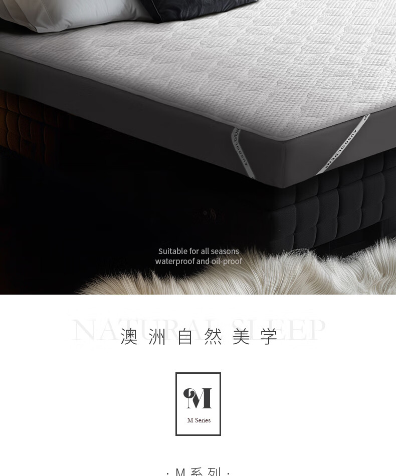 (巨邦佑)BJ+AusGolden M系列澳洲进口羊毛床垫保护罩 面纱: 100%粘胶纤维 底布:100%聚酯纤维 A类防螨抗菌席梦思 保护学生宿舍床垫透气防汗