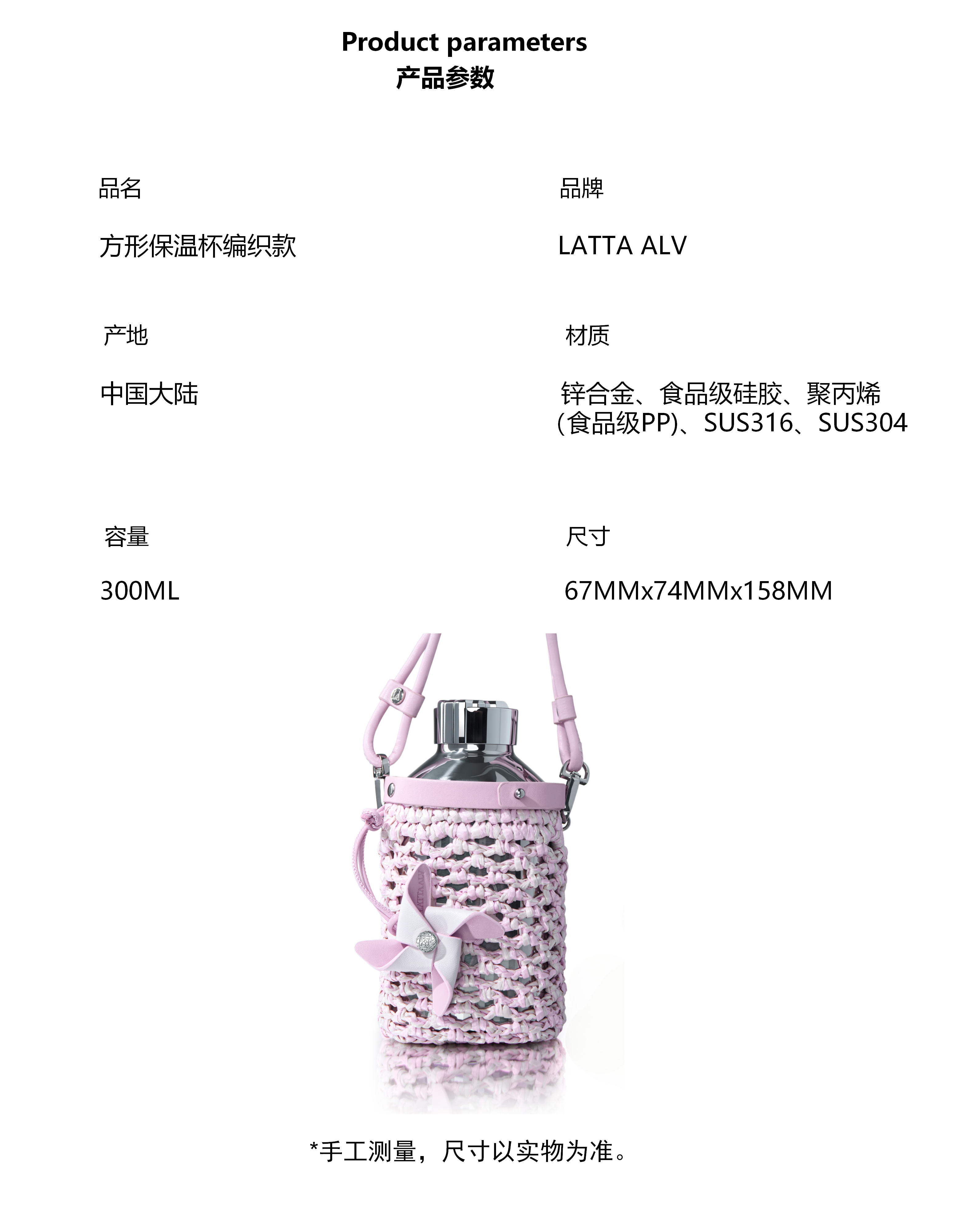 商品名称:(巨邦佑)BJ+LATTA ALV 手工PPT草编织四面保温杯 380ml 明星同款方杯高颜值新款水杯子送女生节日礼物