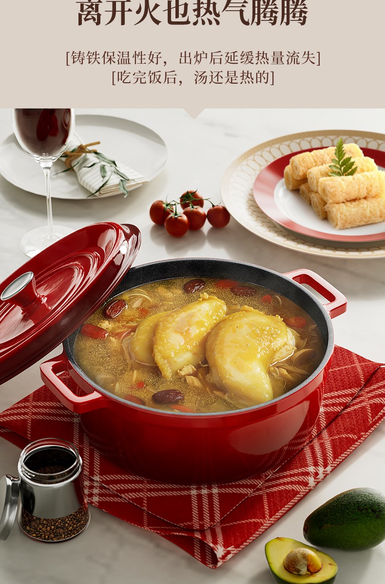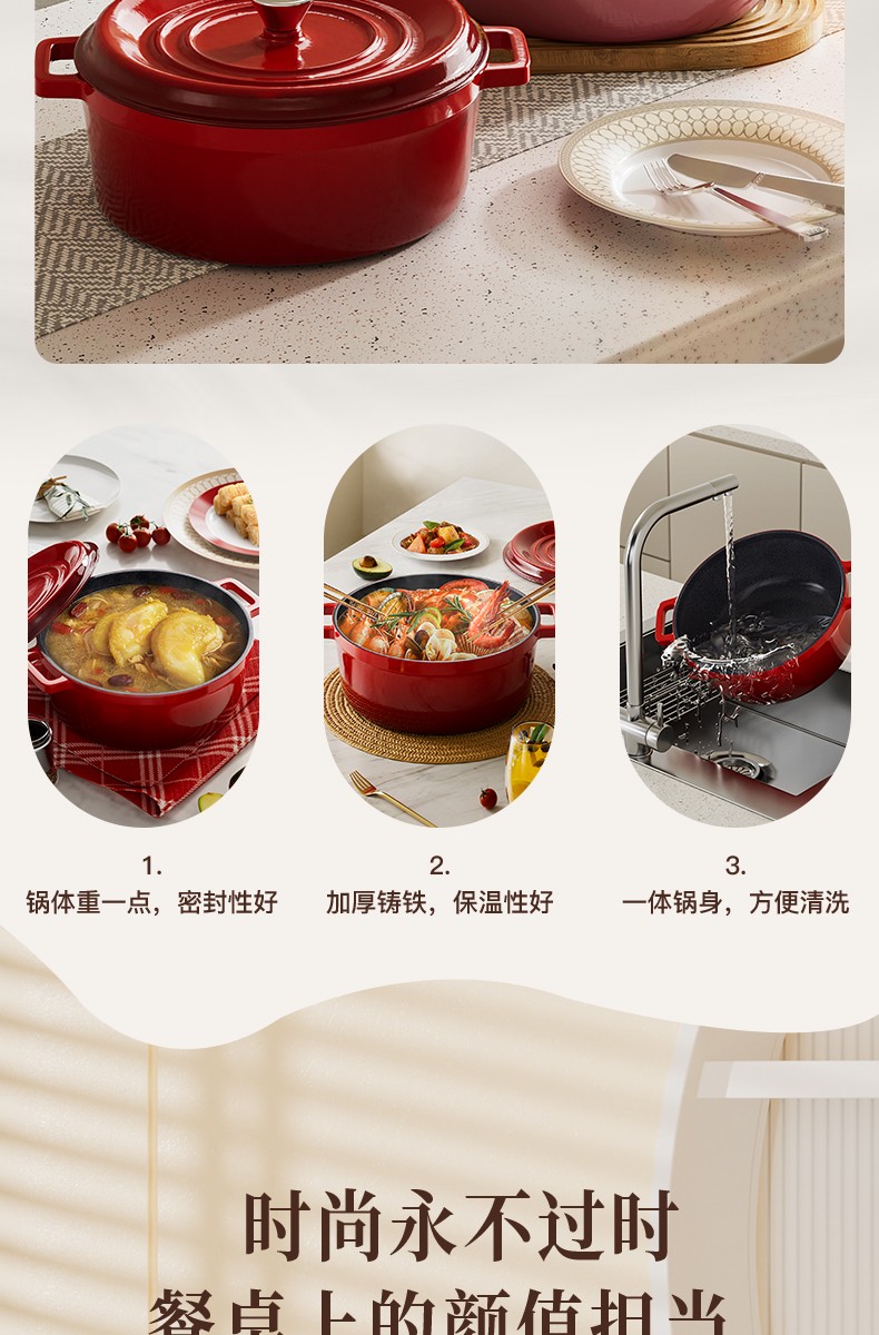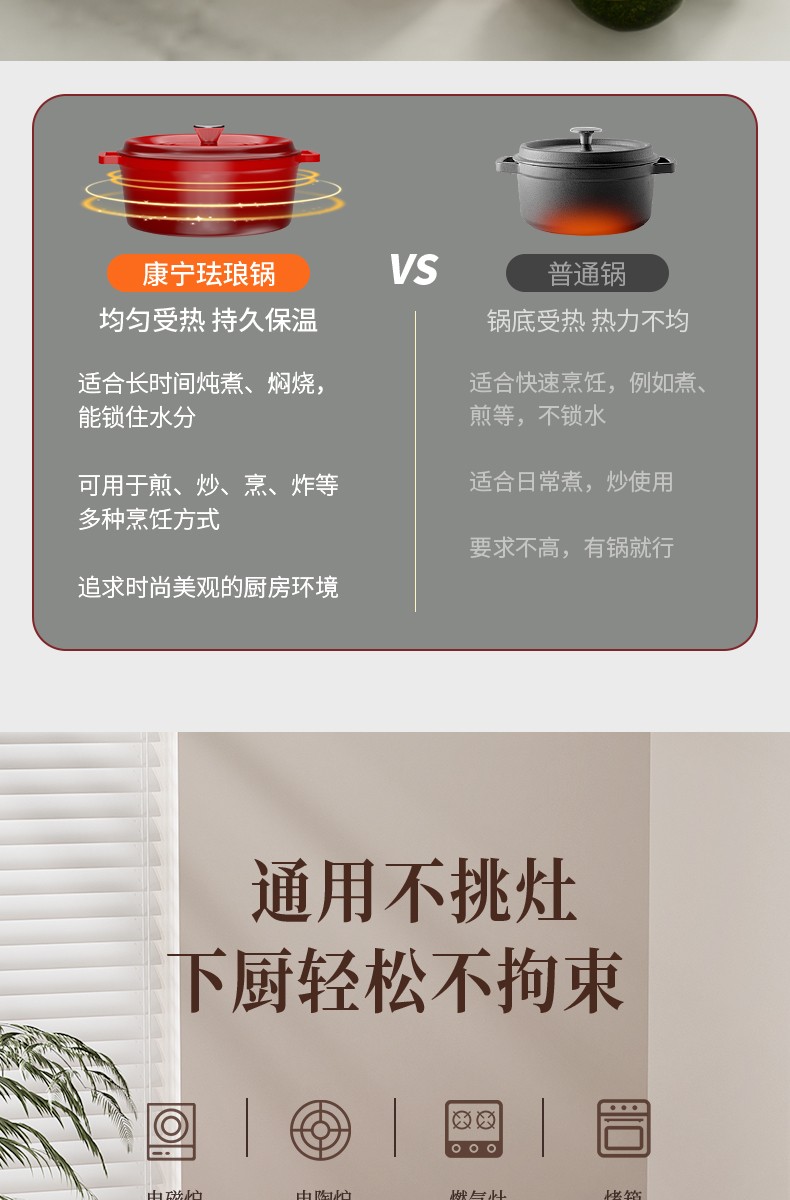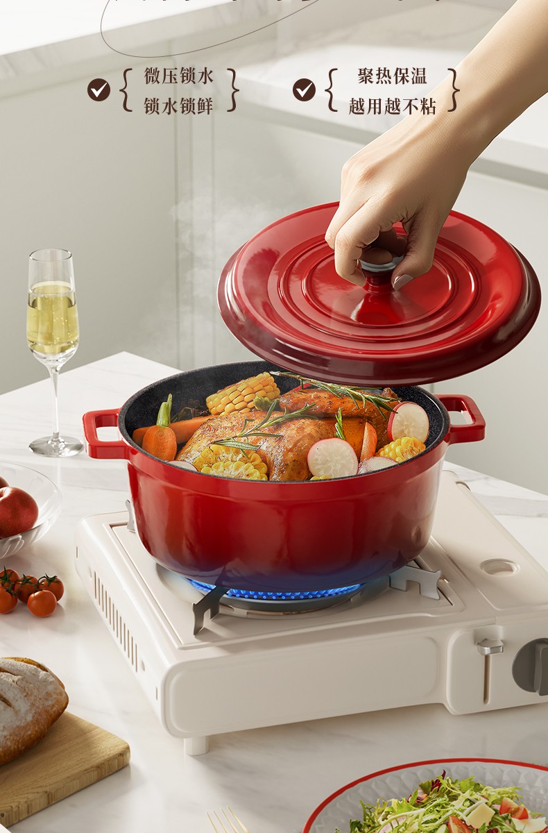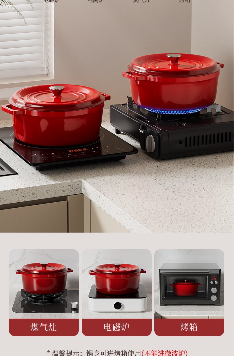 (巨邦佑)BJ+康宁 赤焰珐琅锅铸铁锅 2.8L 家用明火炖锅砂锅煲汤锅不粘锅煮锅