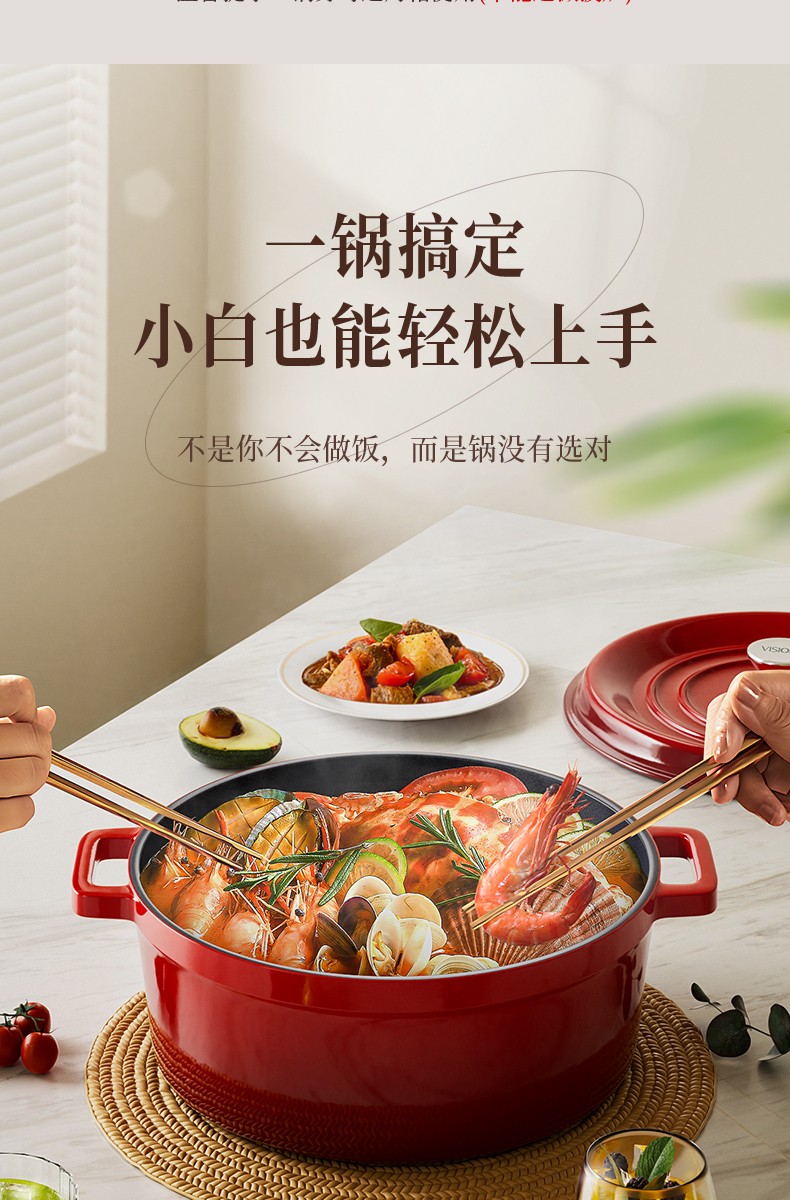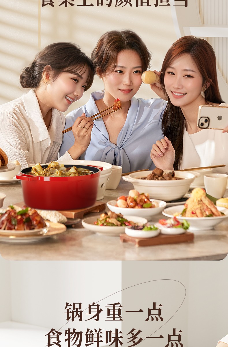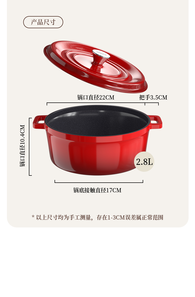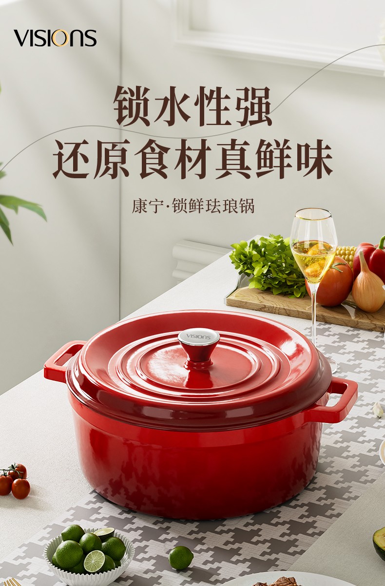 (巨邦佑)BJ+康宁 赤焰珐琅锅铸铁锅 2.8L 家用明火炖锅砂锅煲汤锅不粘锅煮锅