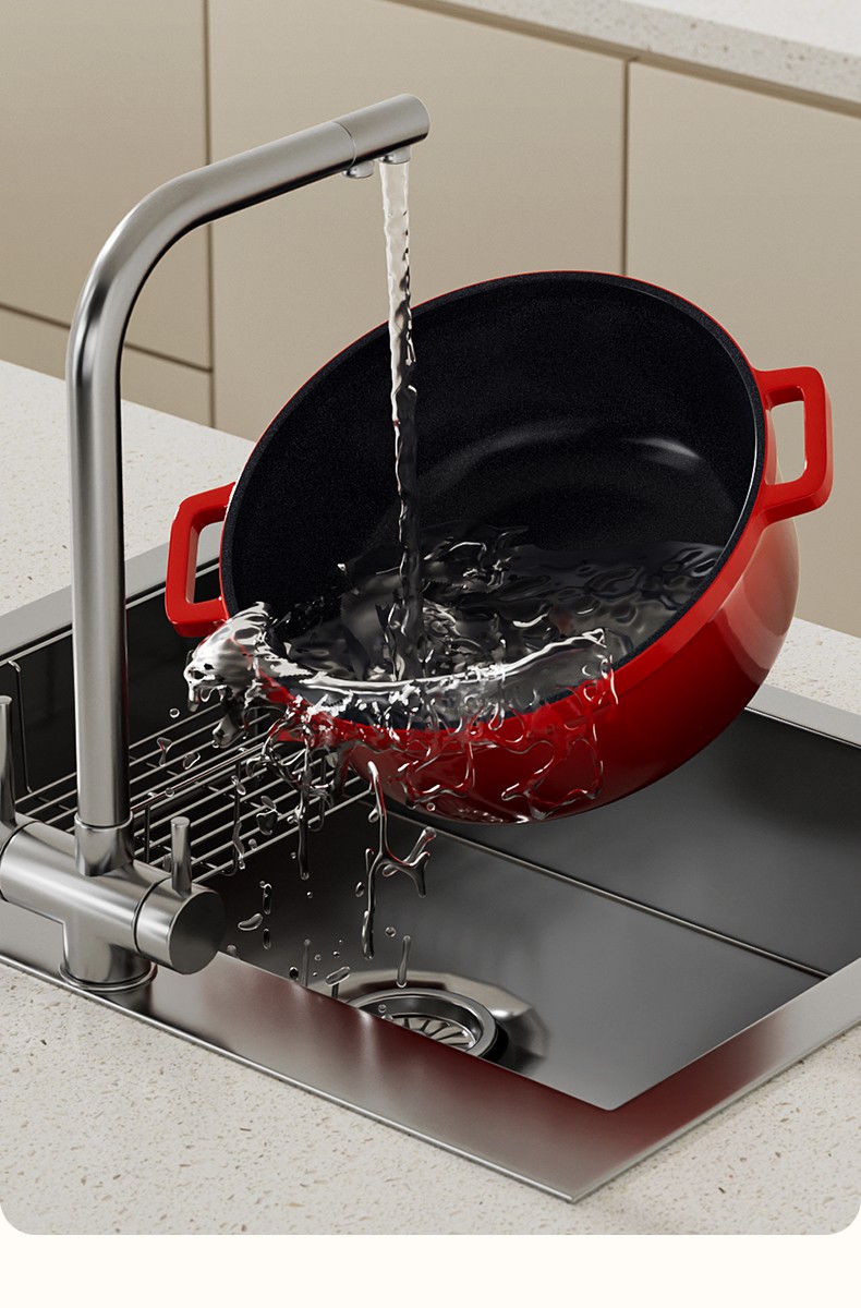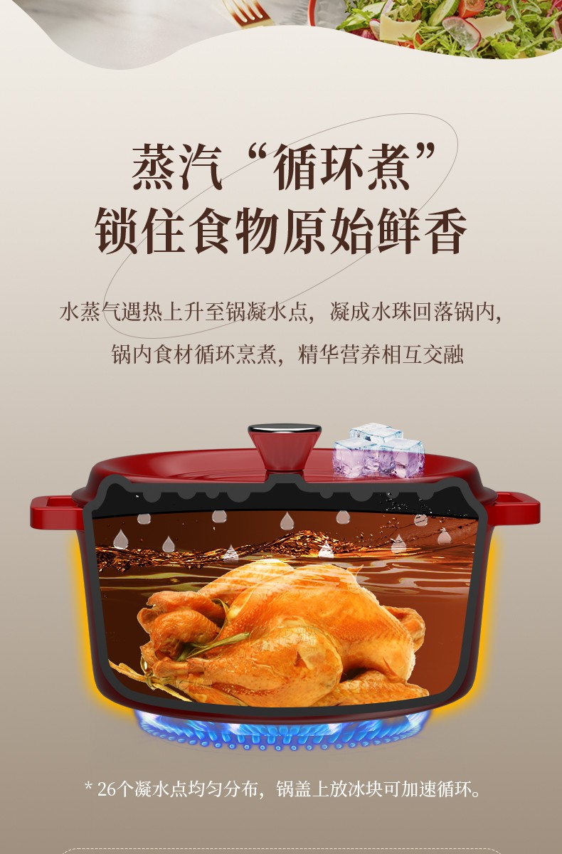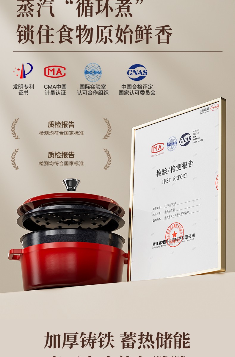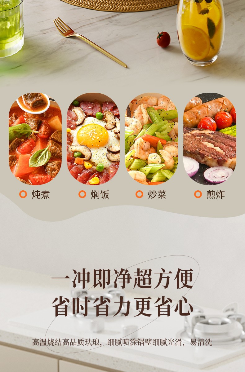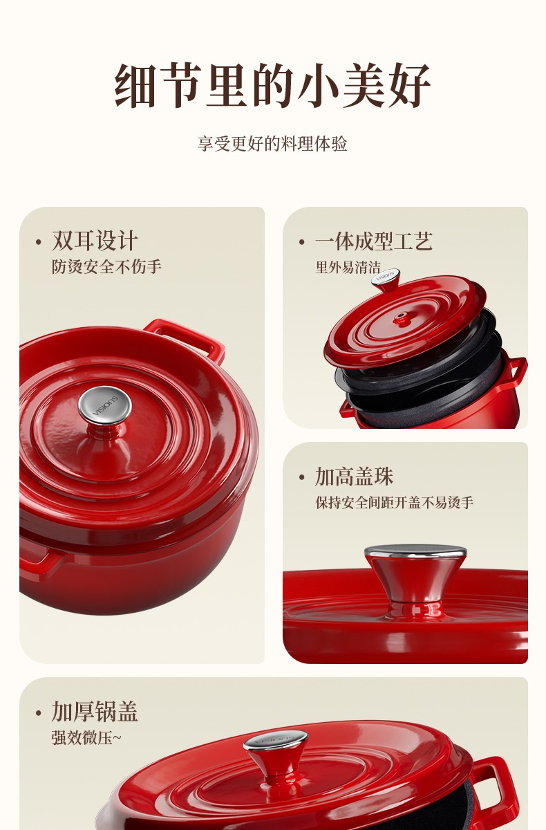(巨邦佑)BJ+康宁 赤焰珐琅锅铸铁锅 2.8L 家用明火炖锅砂锅煲汤锅不粘锅煮锅