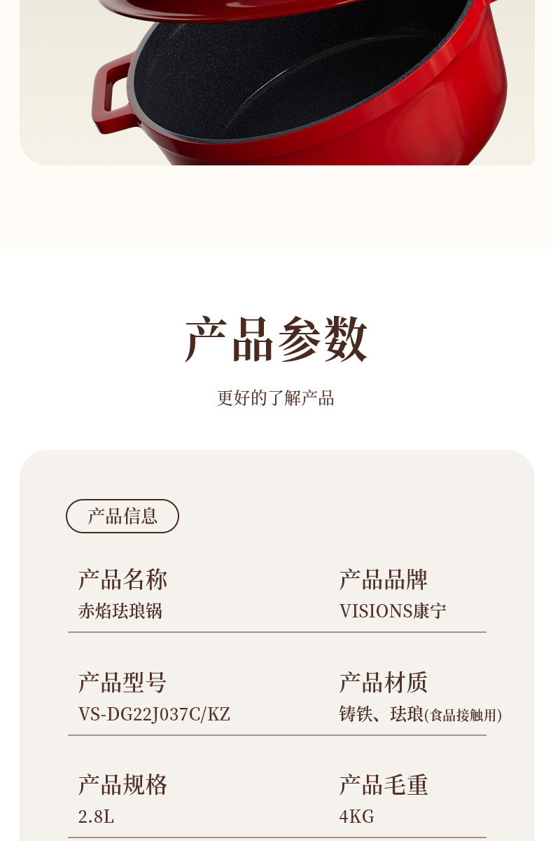 商品名称:(巨邦佑)BJ+康宁 赤焰珐琅锅铸铁锅 2.8L 家用明火炖锅砂锅煲汤锅不粘锅煮锅