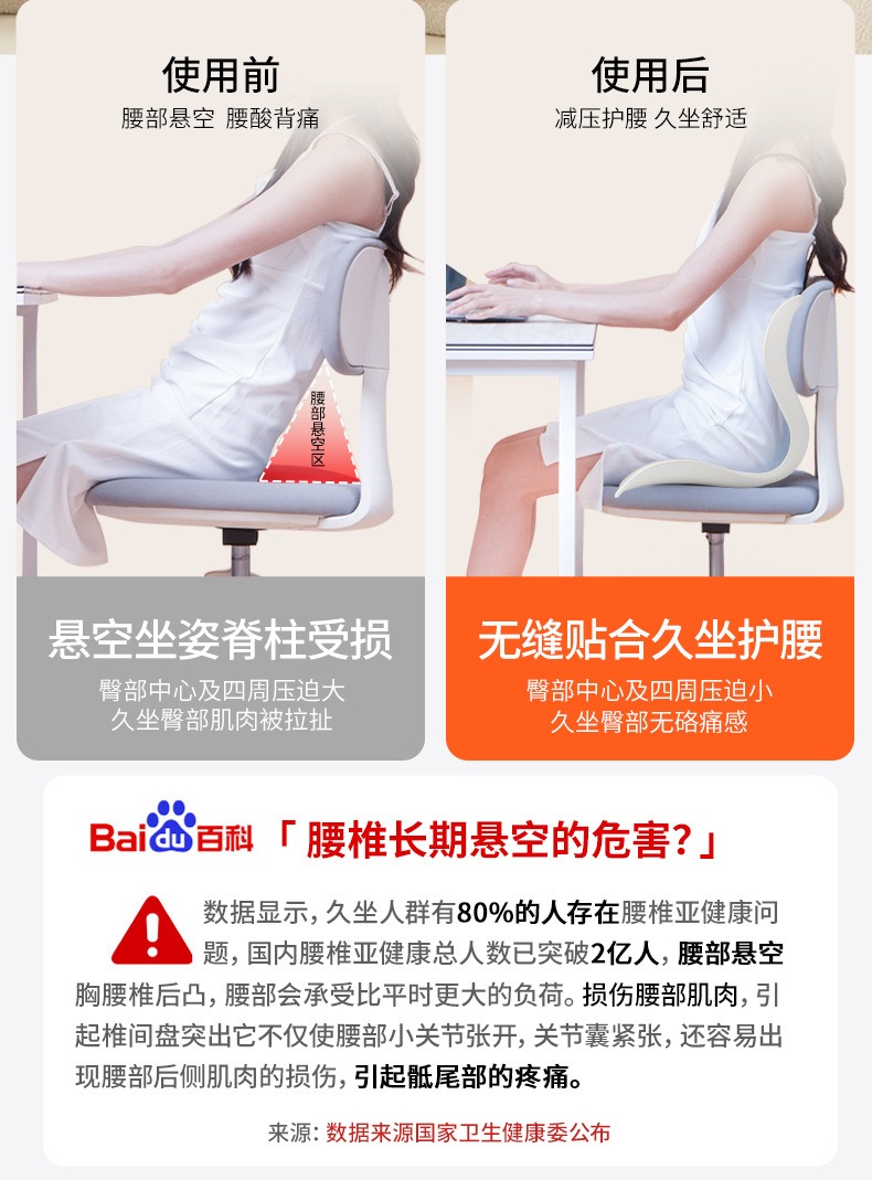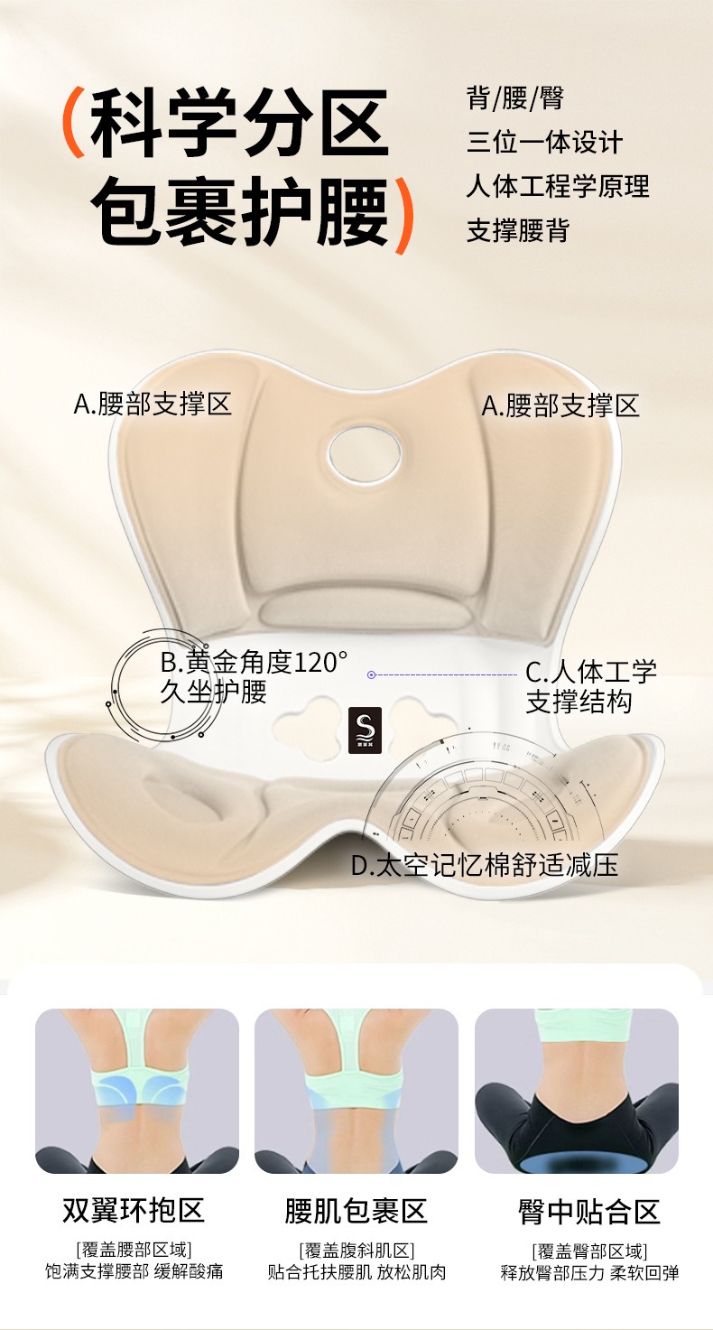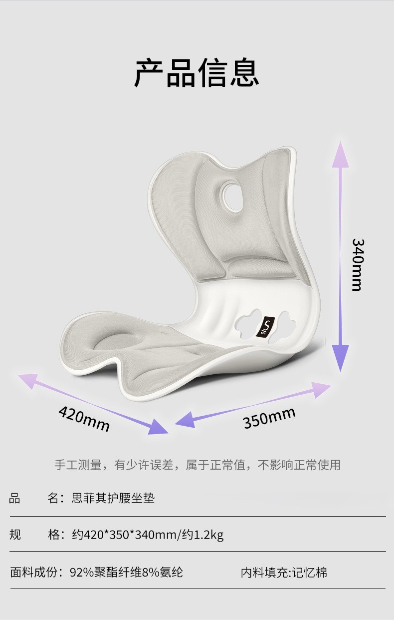 商品名称:(巨邦佑)BJ+思菲其 凹凸防痔疮款护腰坐垫(S021) 多色可选人体工学一体式坐垫办公室久坐不累神器支撑腰部
