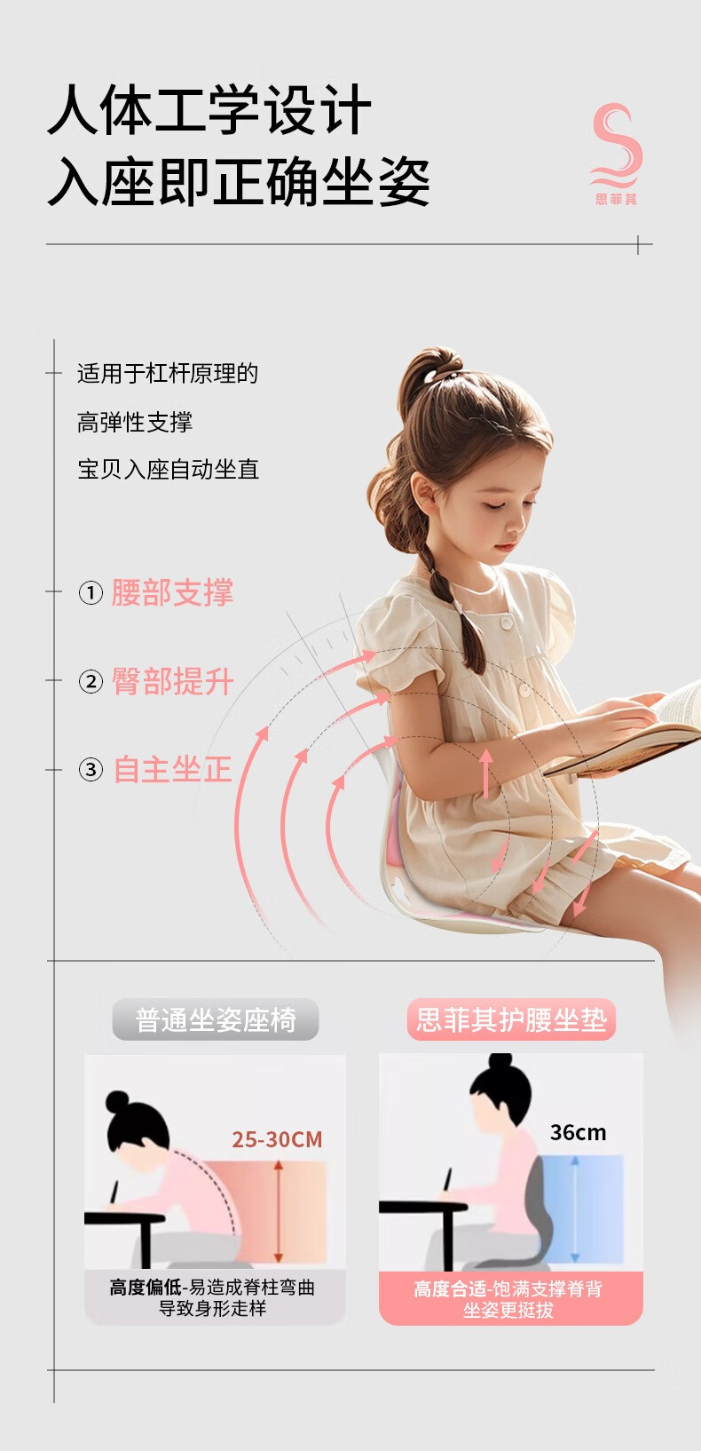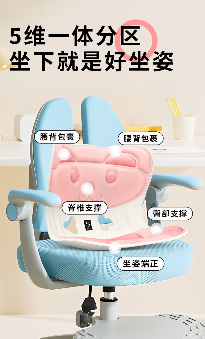 (巨邦佑)BJ+思菲其 兔子款护腰坐垫(S025) 儿童款靠背 一体人体工学靠垫学生防驼背矫正坐姿久坐不累神器
