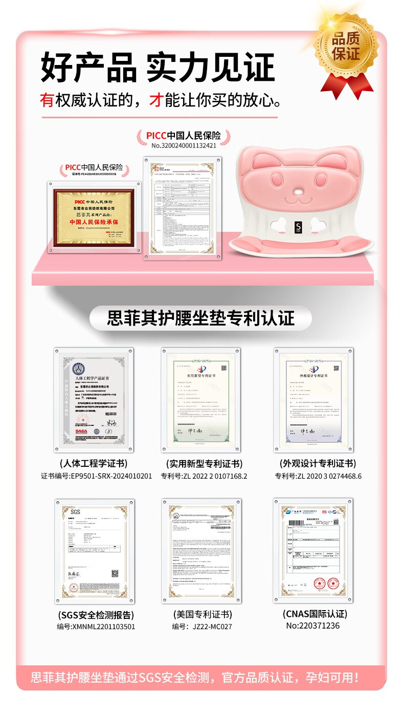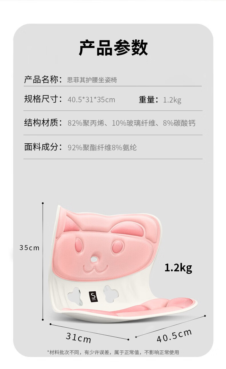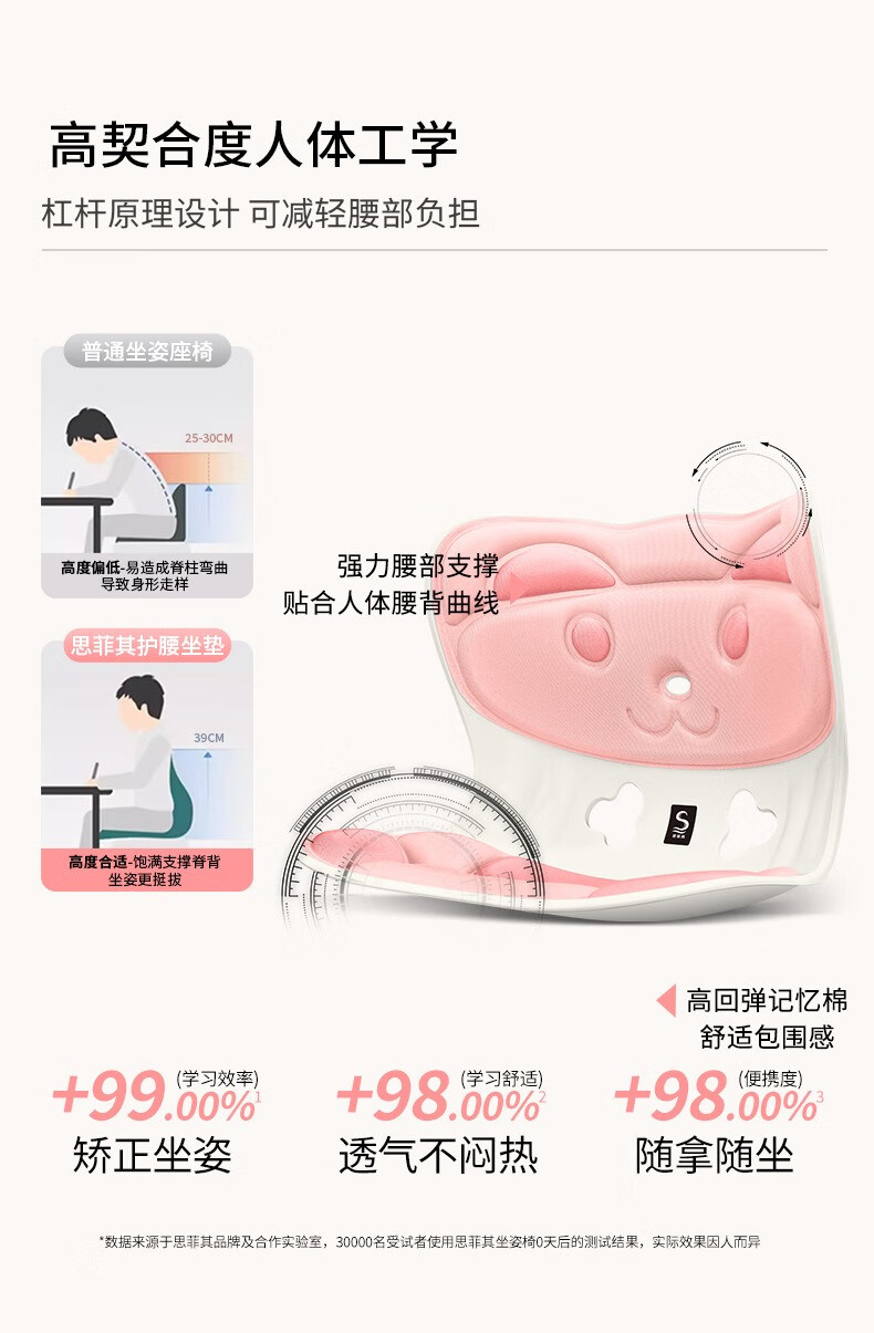 商品名称:(巨邦佑)BJ+思菲其 兔子款护腰坐垫(S025) 儿童款靠背 一体人体工学靠垫学生防驼背矫正坐姿久坐不累神器