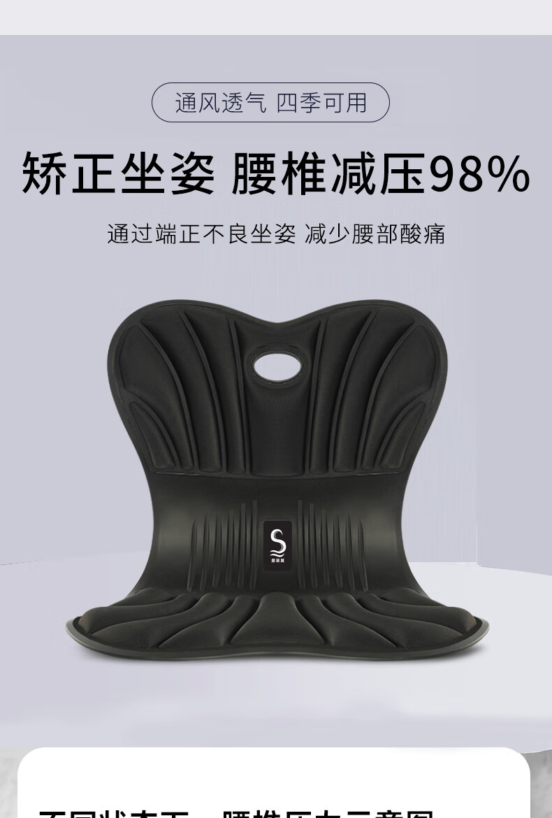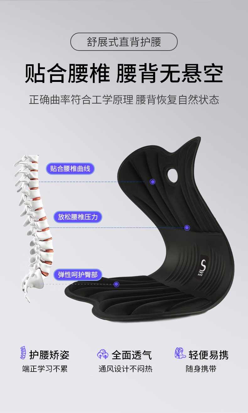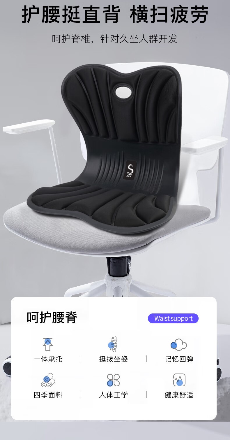 (巨邦佑)BJ+思菲其耳朵凝胶款护腰坐垫(S013PRO) 人体工学一体式凝胶蜂窝靠垫办公室久坐不累支撑腰部TPE凝胶升级款