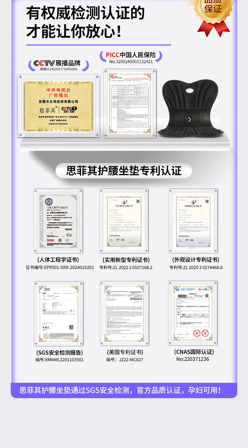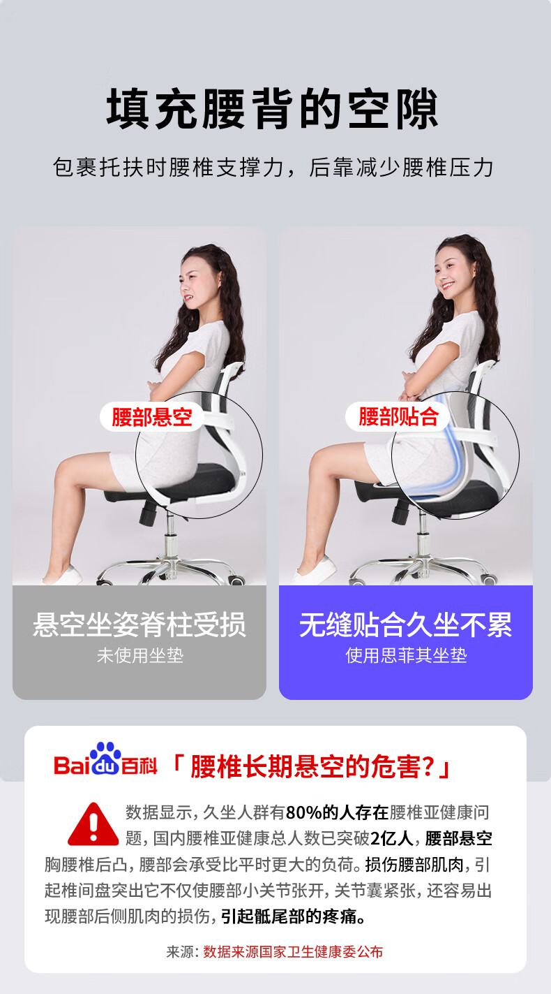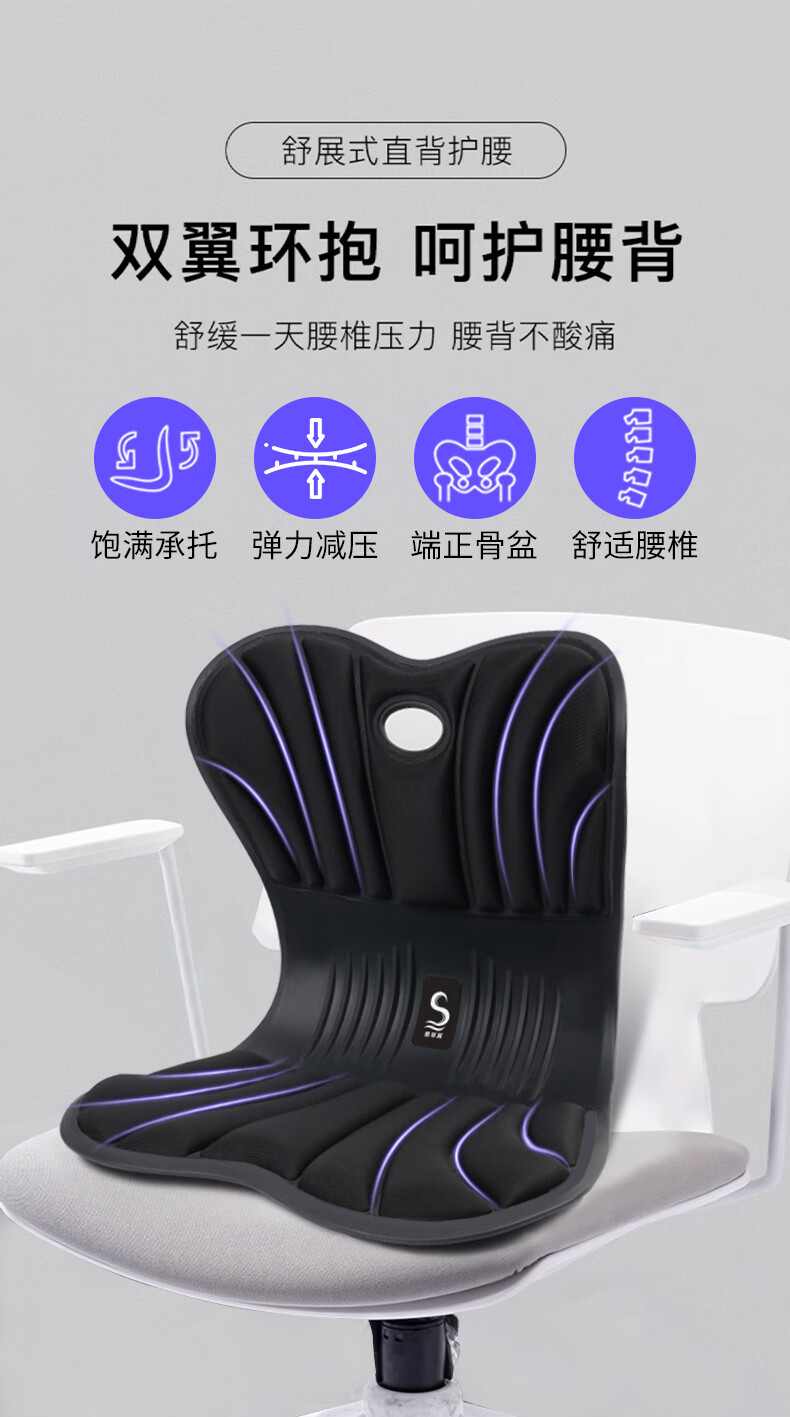 (巨邦佑)BJ+思菲其耳朵凝胶款护腰坐垫(S013PRO) 人体工学一体式凝胶蜂窝靠垫办公室久坐不累支撑腰部TPE凝胶升级款