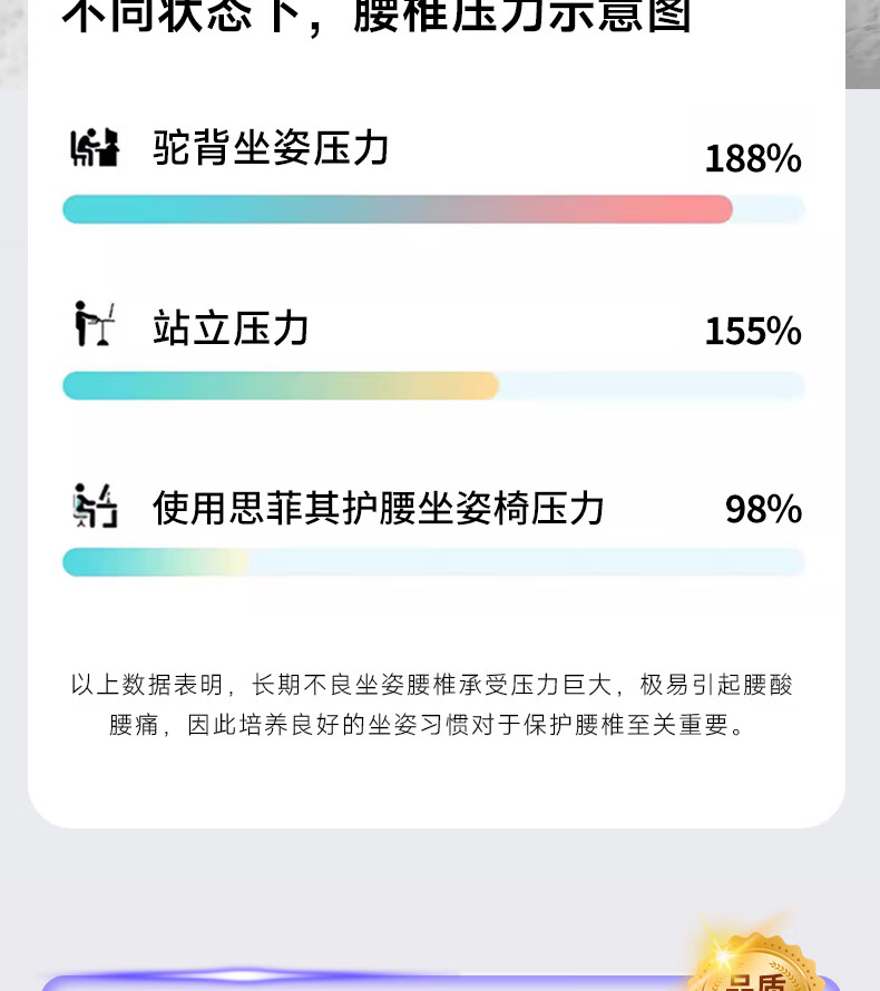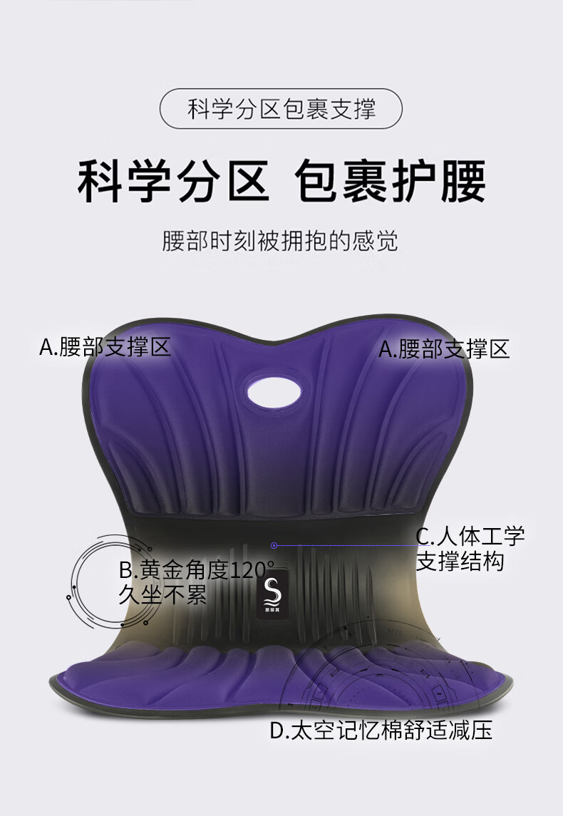 商品名称:(巨邦佑)BJ+思菲其 彩色条纹护腰坐垫 靠背一体人体工学靠垫防驼背矫正坐姿办公室久坐不累神器