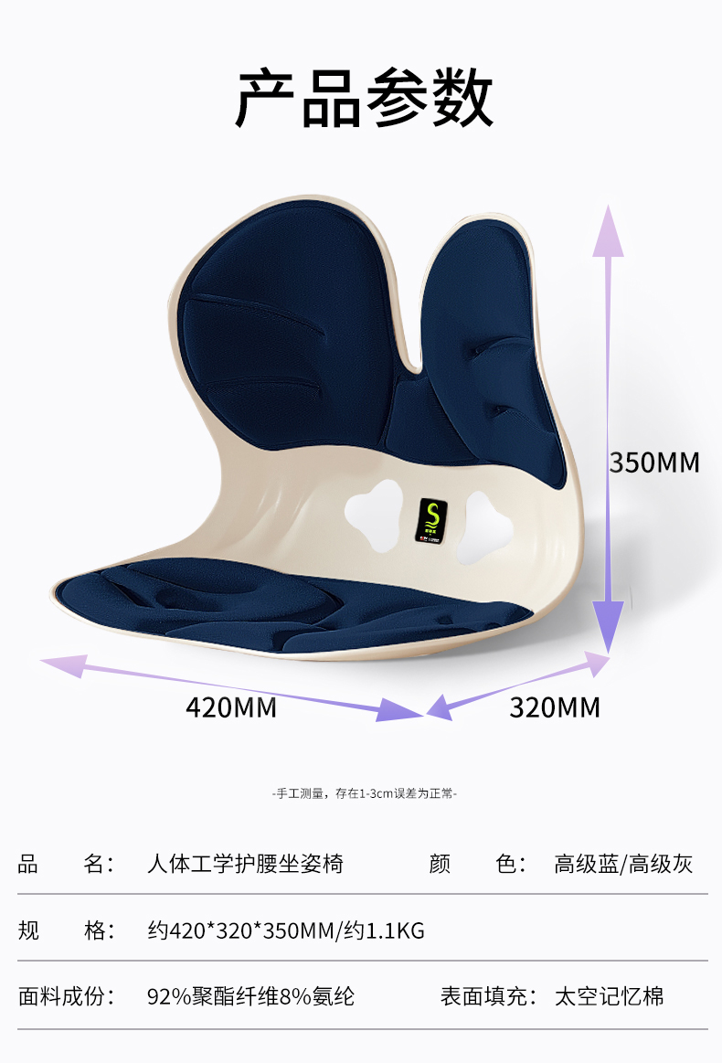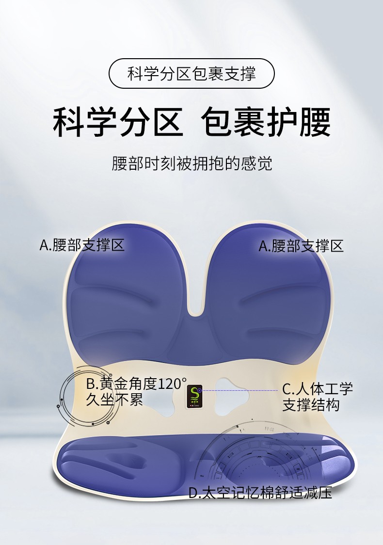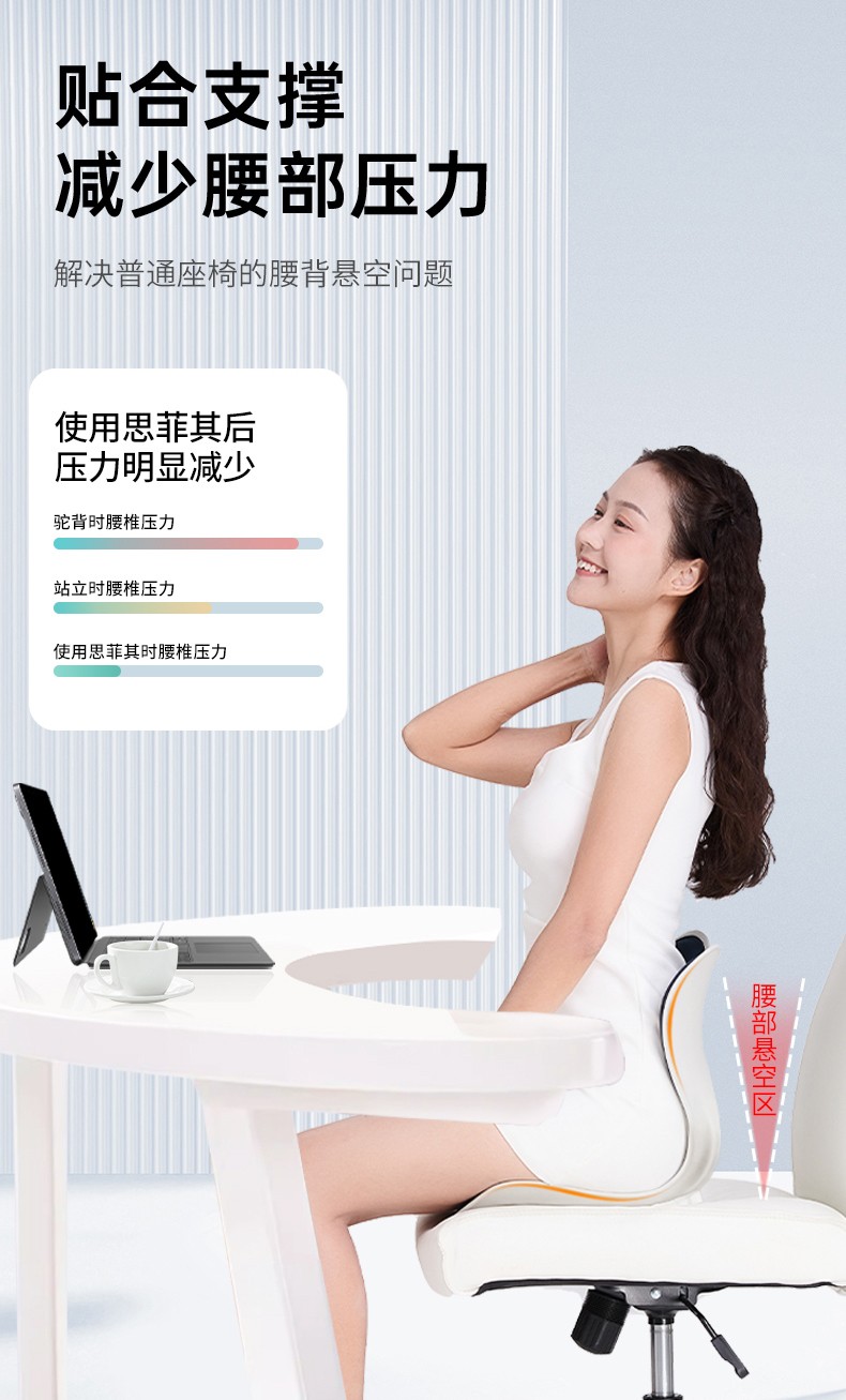 商品名称:(巨邦佑)BJ+思菲其 耳朵款护腰坐垫(S013)人体工学一体式座椅办公室久坐不累神器支撑腰部