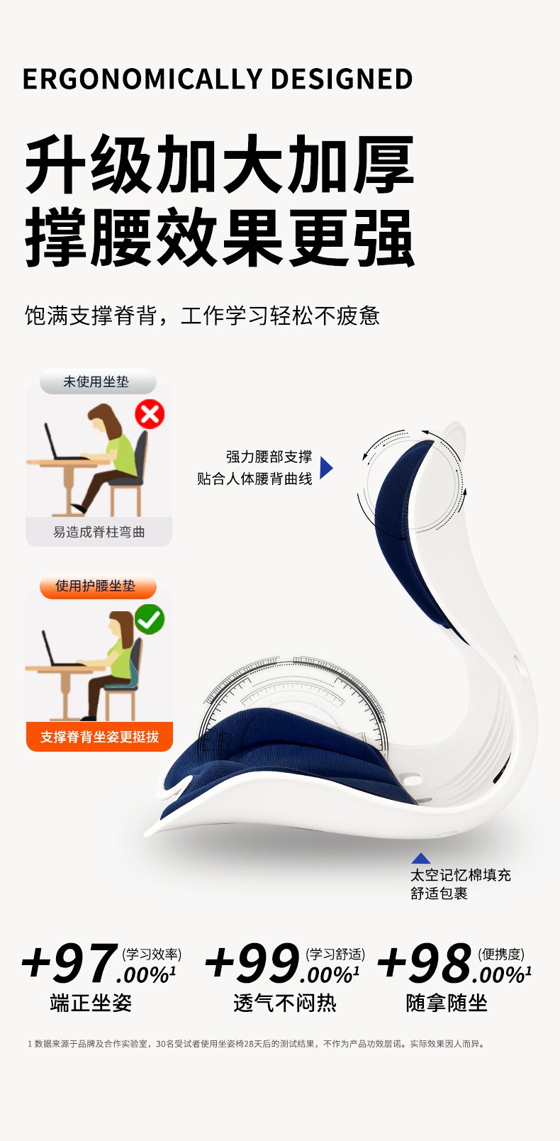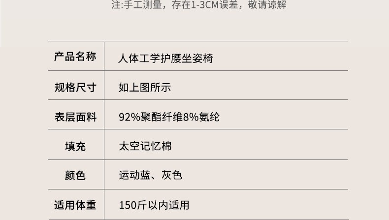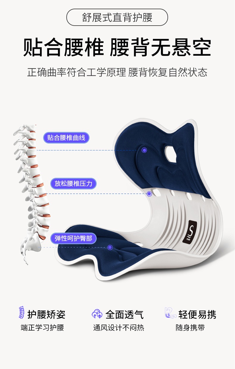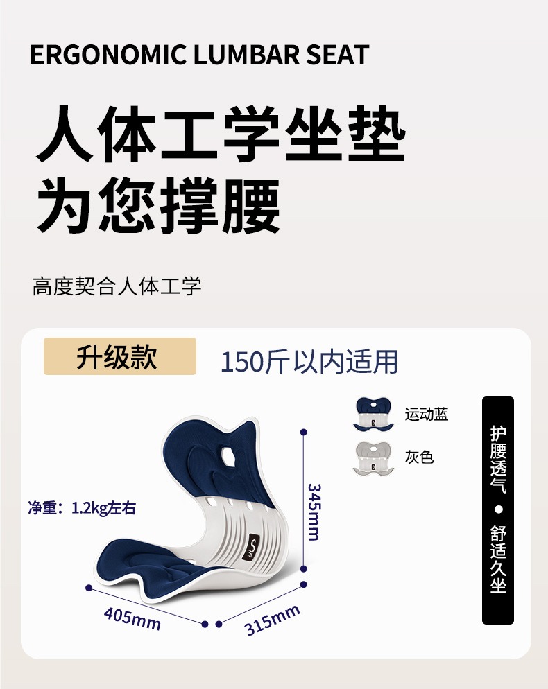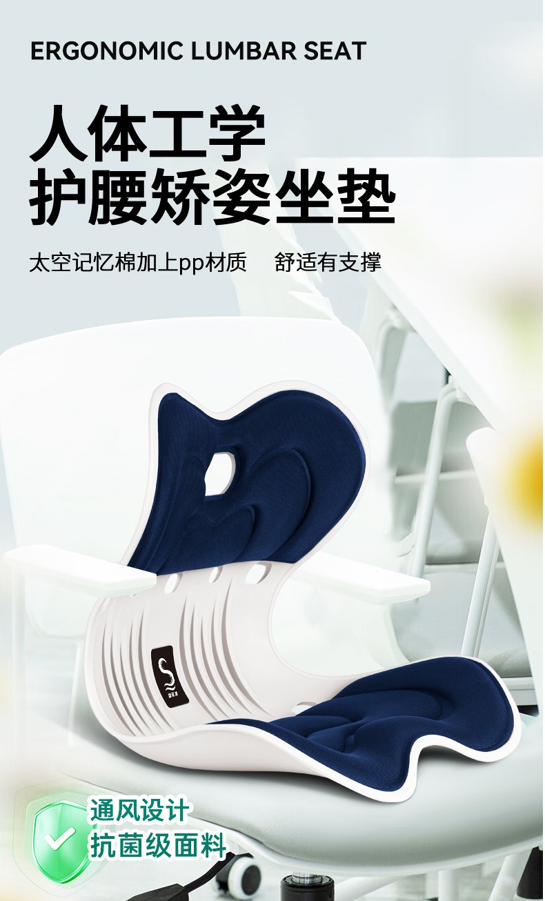 商品名称:(巨邦佑)BJ+思菲其 凹凸方孔款护腰坐垫(S011) 办公室久坐一体式记忆棉坐垫座椅垫矫姿椅垫