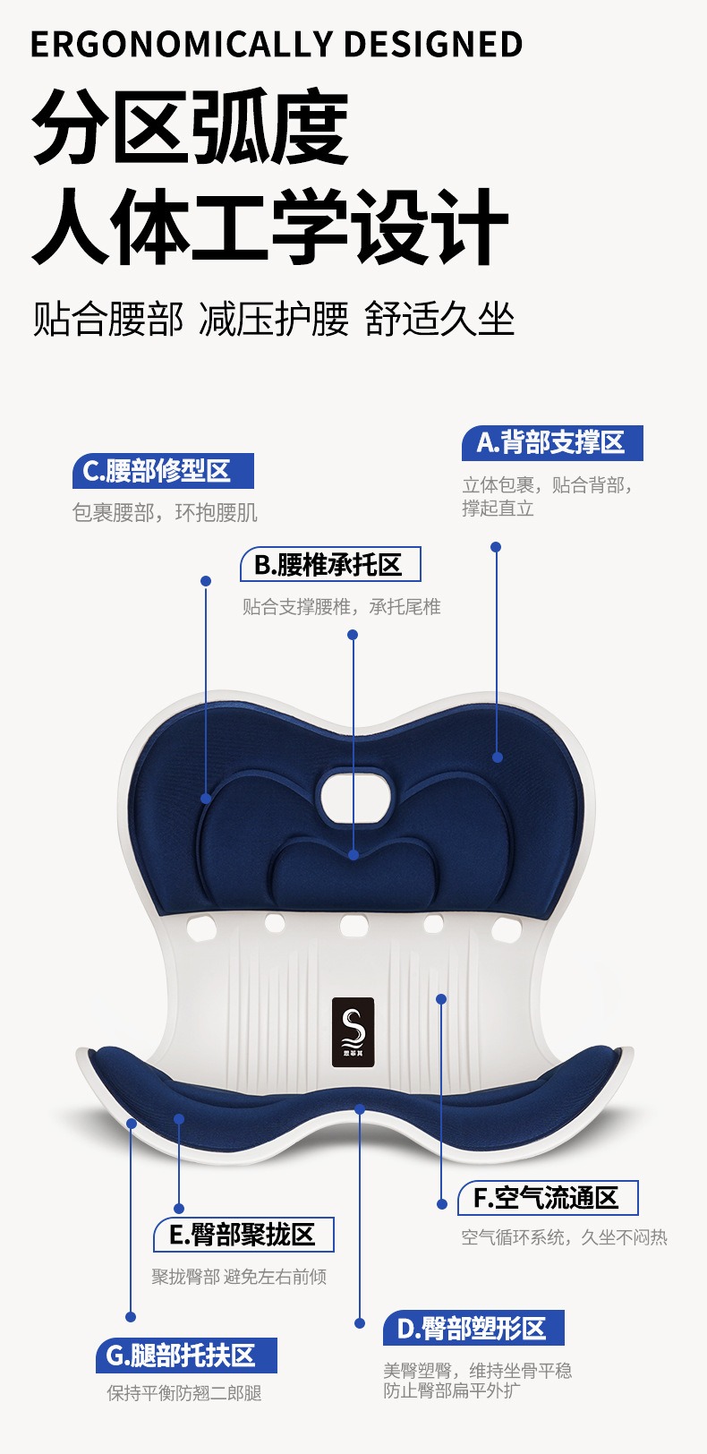 (巨邦佑)BJ+思菲其 方格款护腰坐垫S04 人体工学办公室舒适久坐腰靠屁垫蒲团