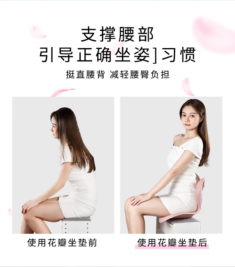 商品名称:(巨邦佑)BJ+思菲其 花瓣款护腰坐垫S06 多色可选人体工学一体式花瓣坐垫办公室久坐不累支撑腰部