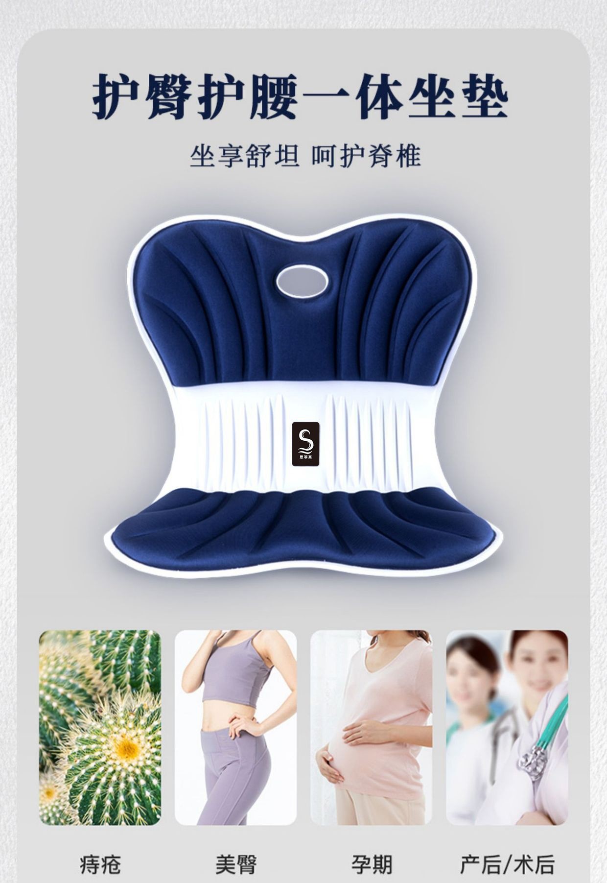 (巨邦佑)BJ+思菲其耳朵凝胶款护腰坐垫(S013PRO) 人体工学一体式凝胶蜂窝靠垫办公室久坐不累支撑腰部TPE凝胶升级款