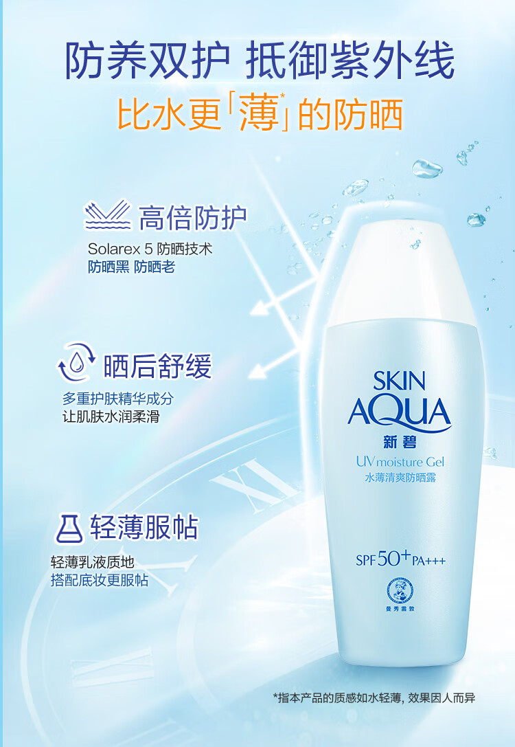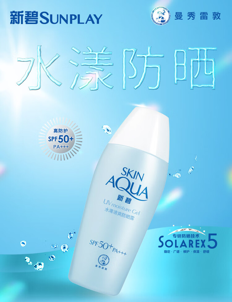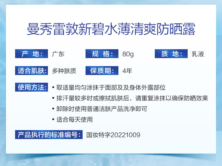 商品名称:(巨邦佑)R+曼秀雷敦新碧水薄防晒露80g 清爽保湿隔离油皮 适用户外高倍水润 男女防晒霜