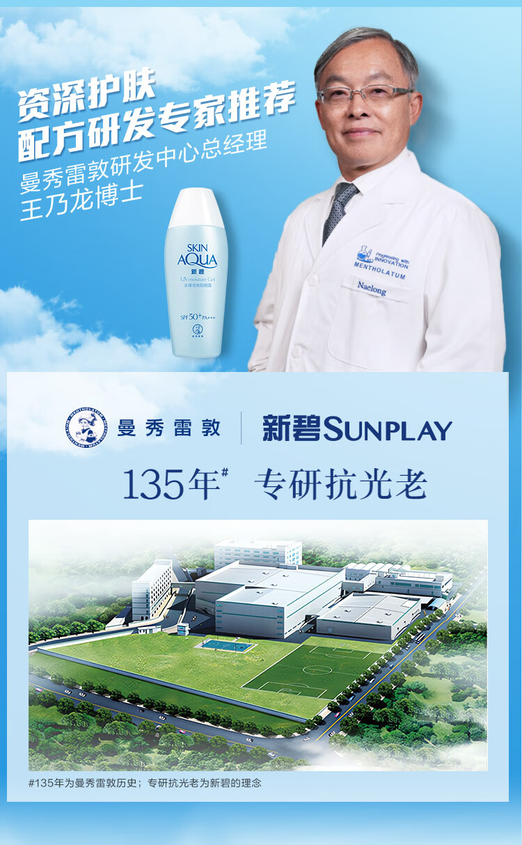 (巨邦佑)R+曼秀雷敦新碧水薄防晒露80g 清爽保湿隔离油皮 适用户外高倍水润 男女防晒霜