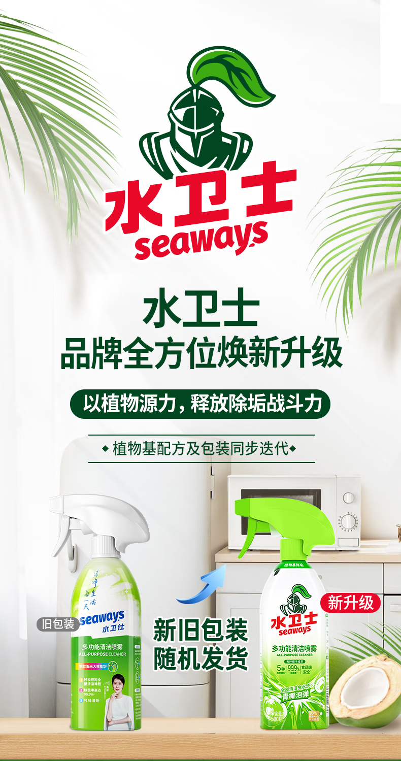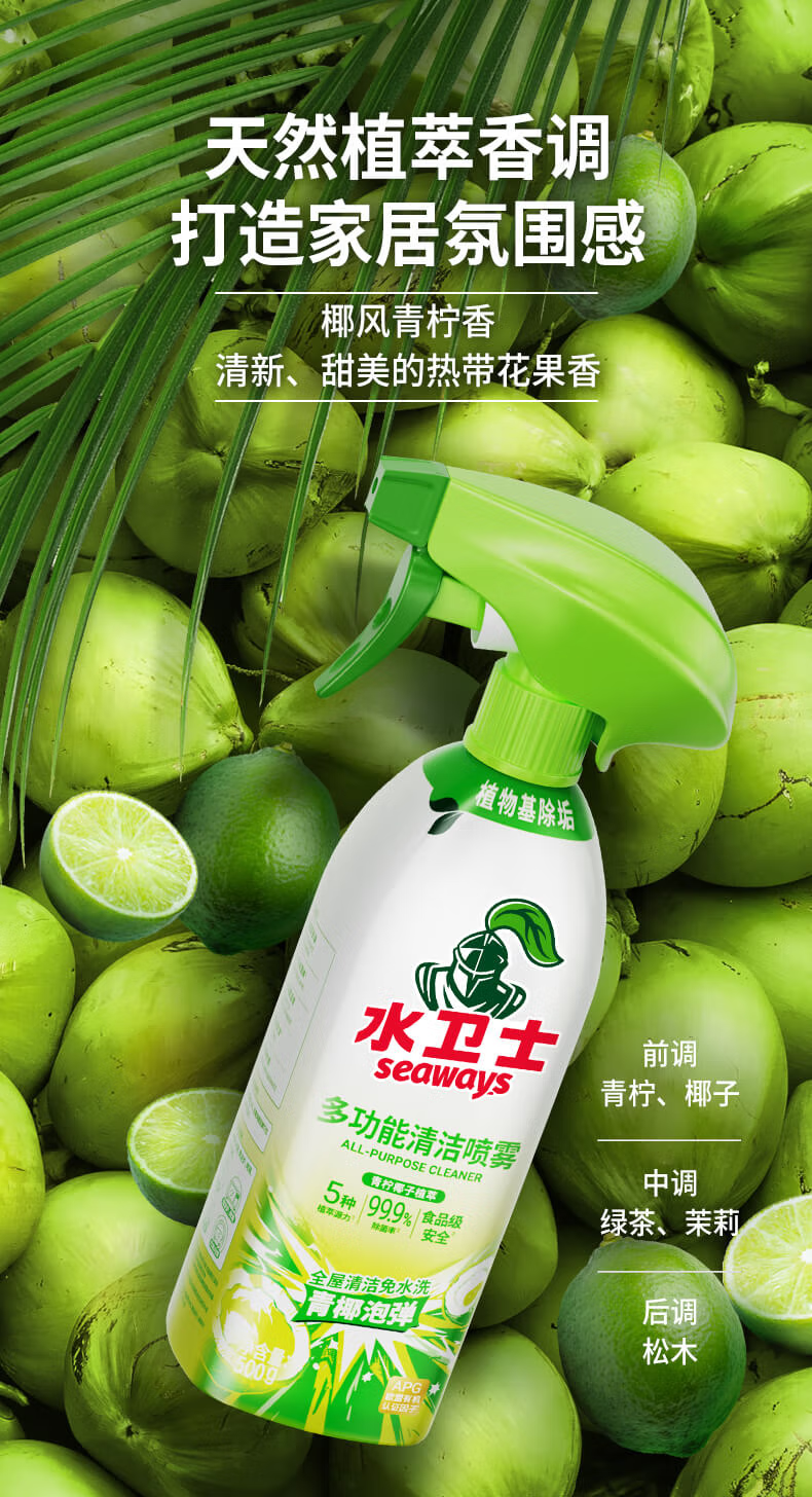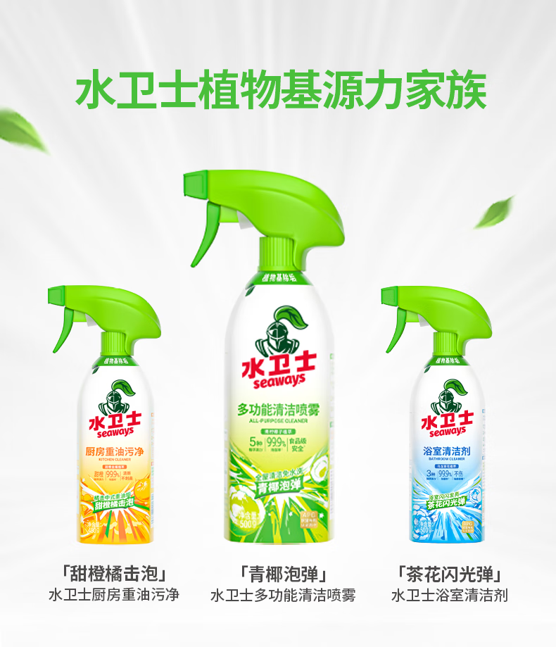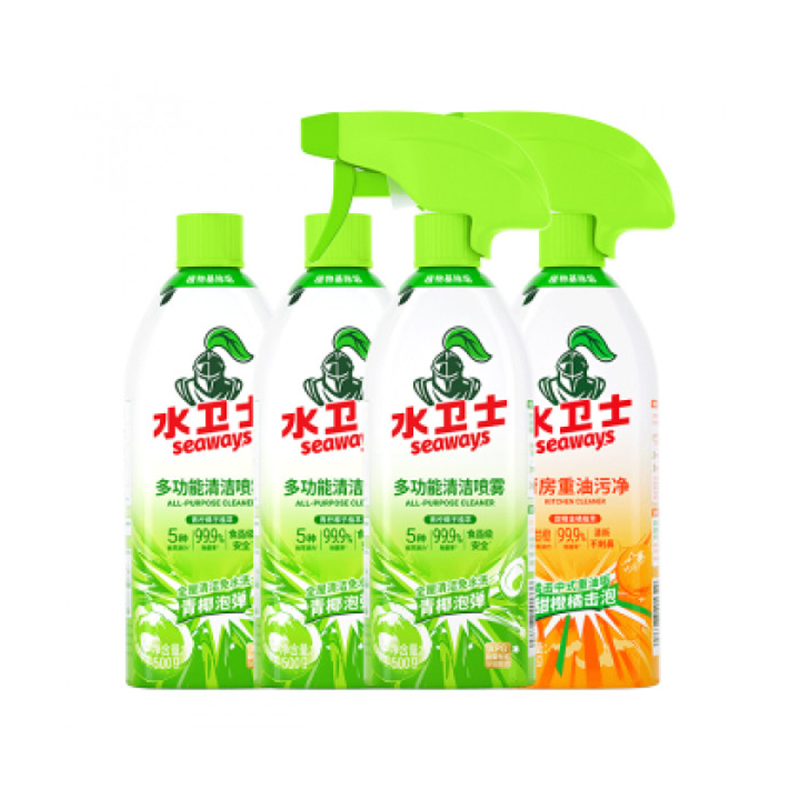 (世星阳光) 水卫士 多功能清洁喷雾*3瓶(喷头*1)+厨房重油污净*1瓶(喷头*1) 5重植萃净护力 一招击退污垢