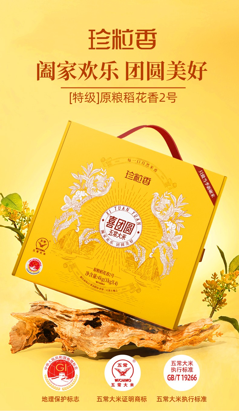 (世星阳光)+珍粒香 喜团圆五常大米礼盒4kg 软糯香甜 优质鲜稻现磨 优质产区