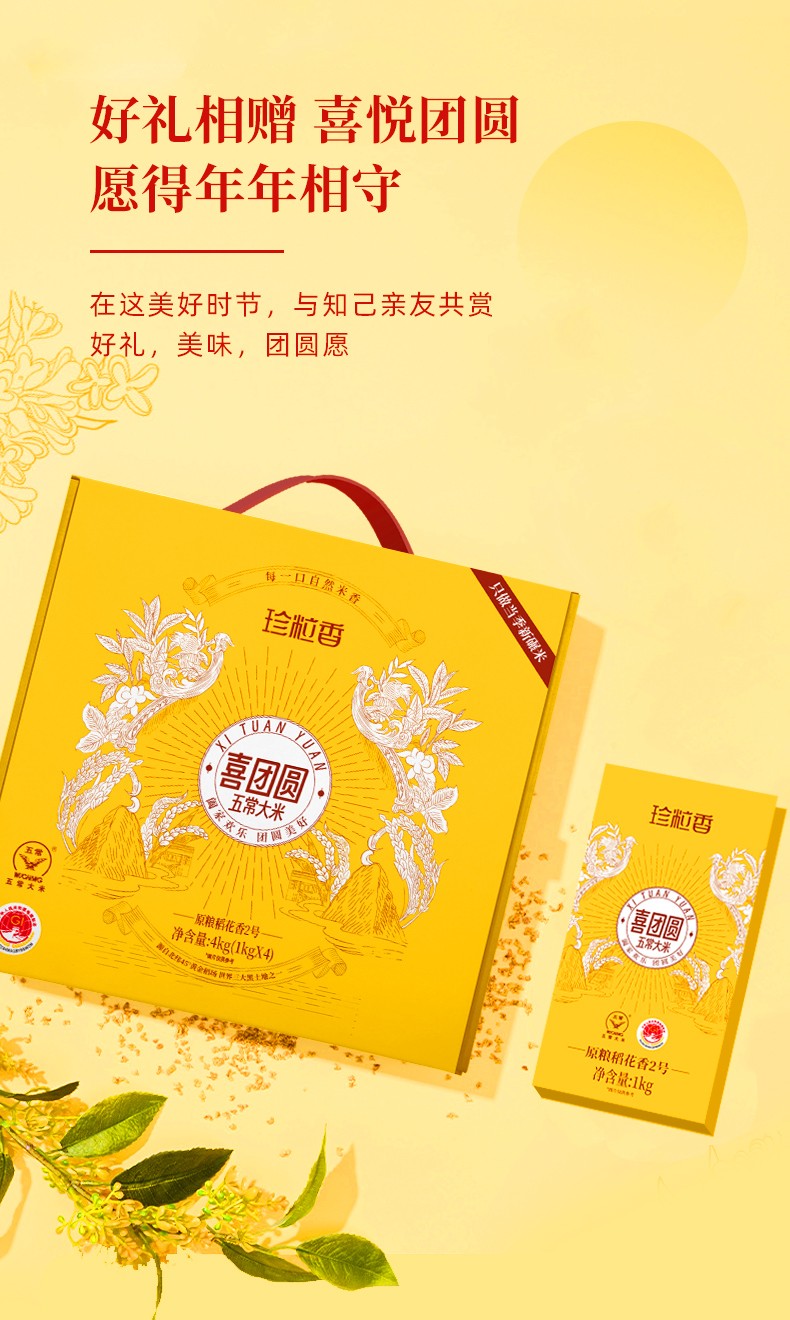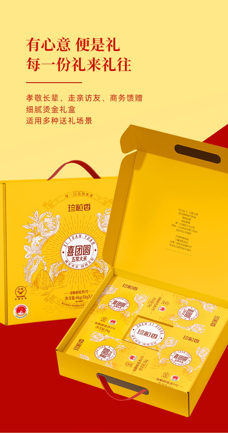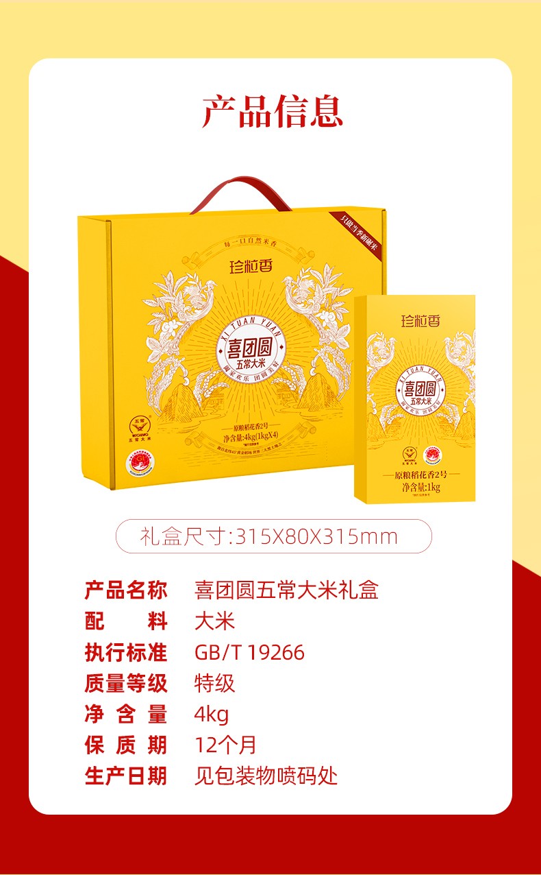 商品名称:(世星阳光)+珍粒香 喜团圆五常大米礼盒4kg 软糯香甜 优质鲜稻现磨 优质产区