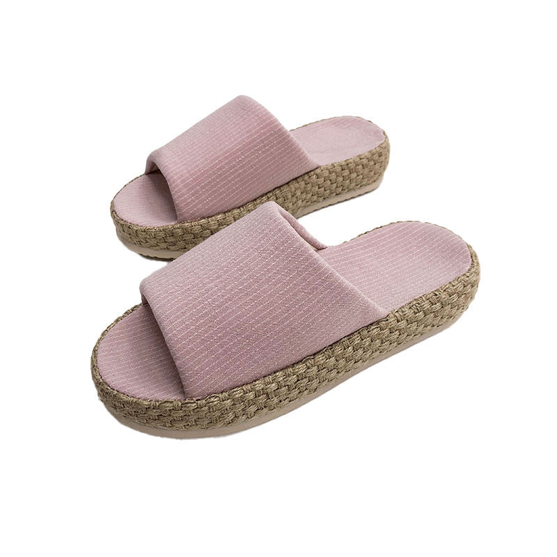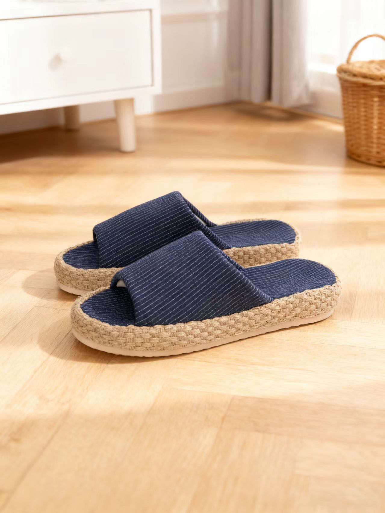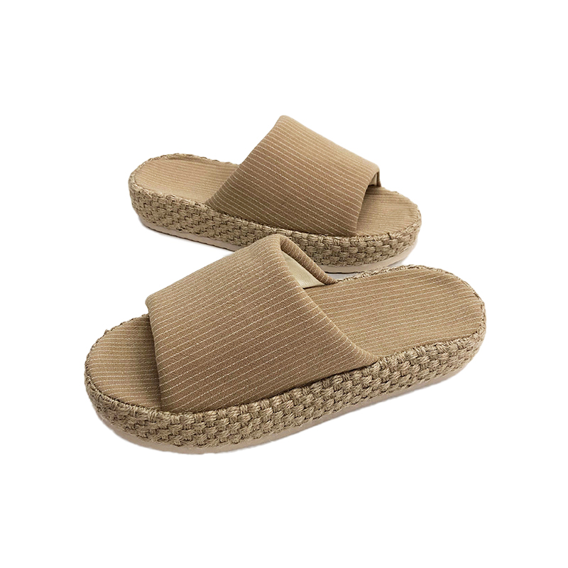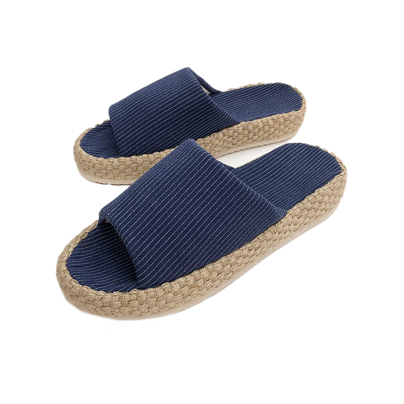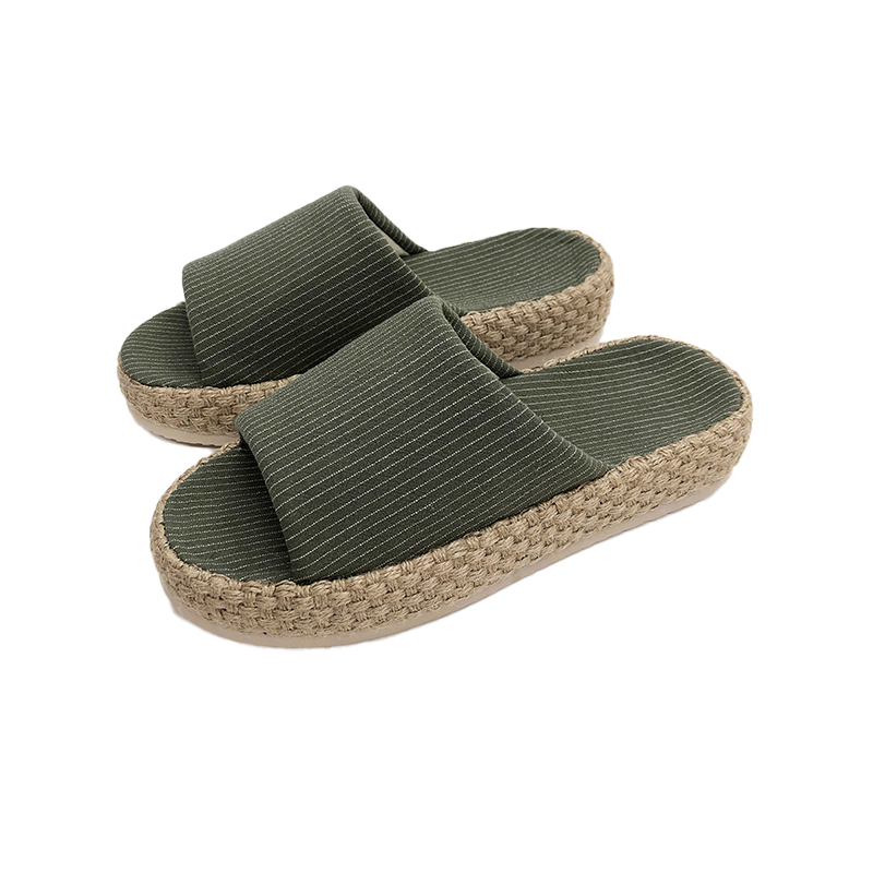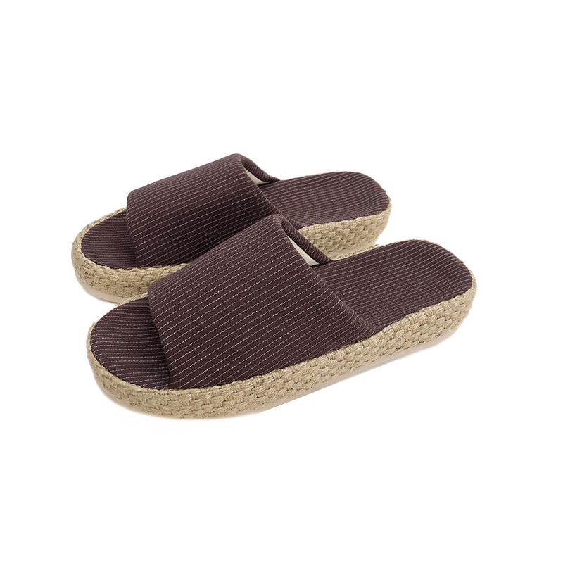 (巨邦佑)BJ+楠木之舟 楠木之舟竖纹棉麻四季拖764N765W 居家厚底男女通用防滑静音室内四季拖