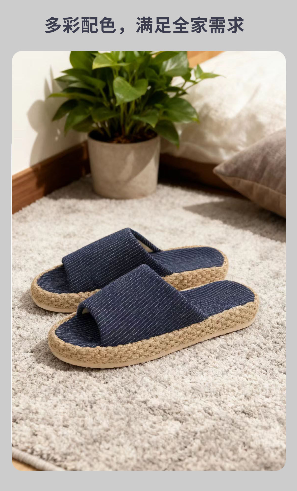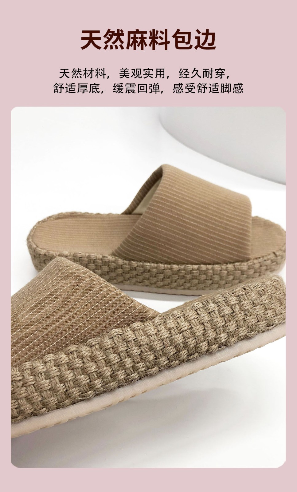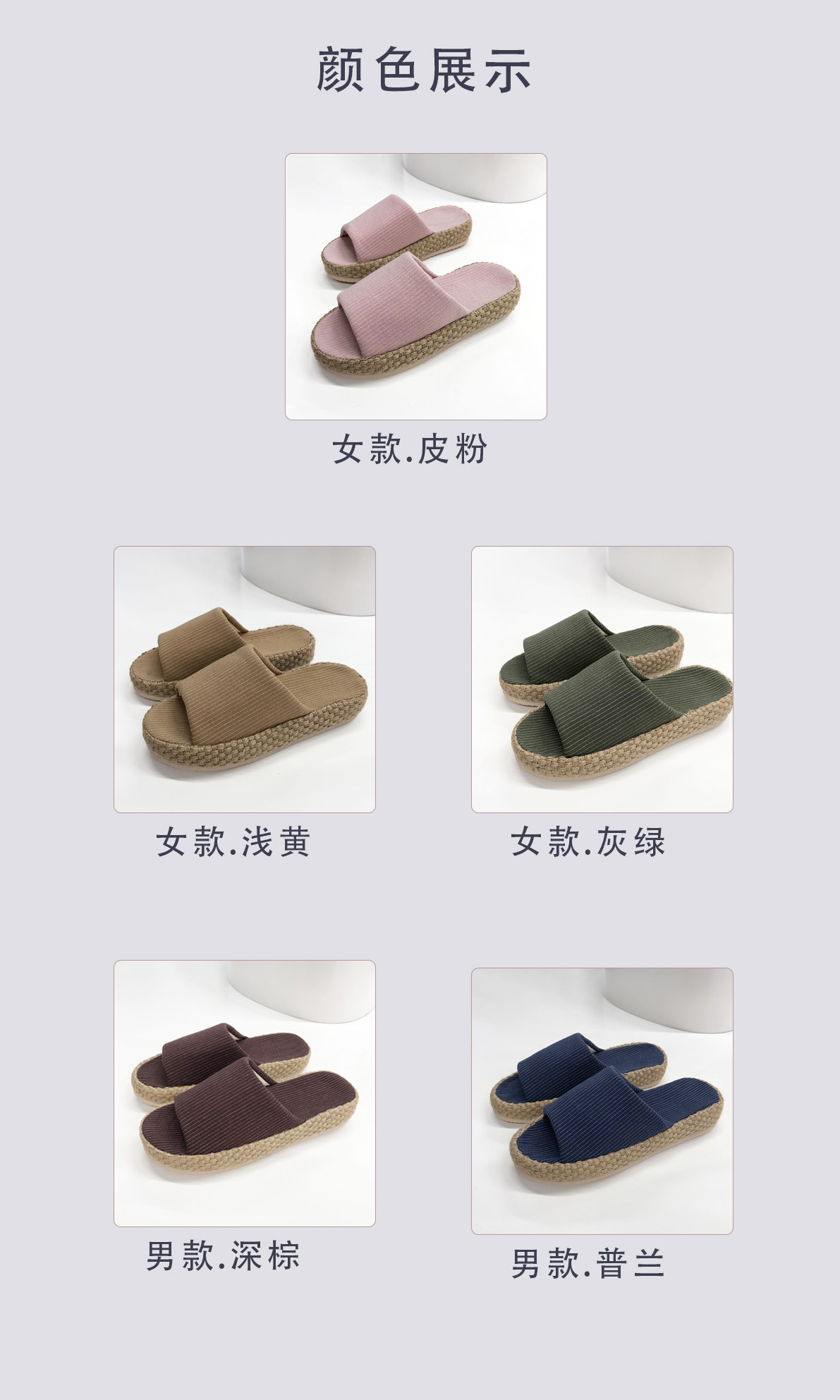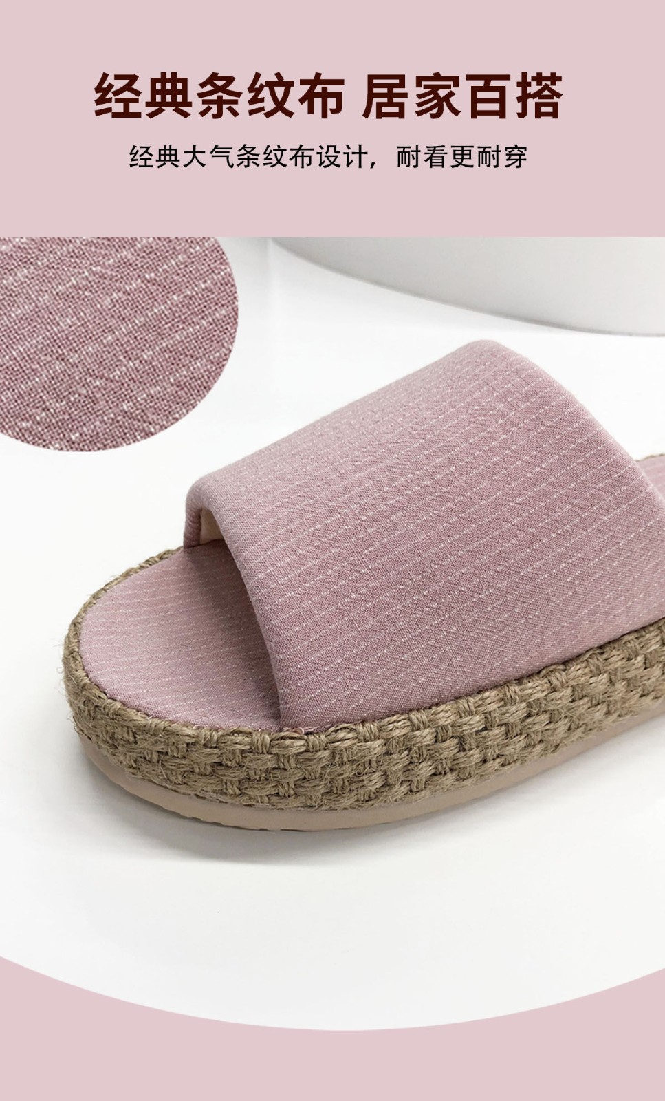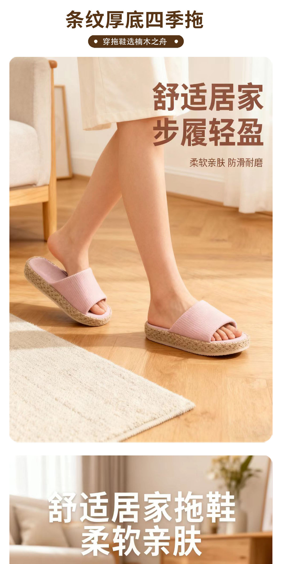 商品名称:(巨邦佑)BJ+楠木之舟 楠木之舟竖纹棉麻四季拖764N765W 居家厚底男女通用防滑静音室内四季拖
