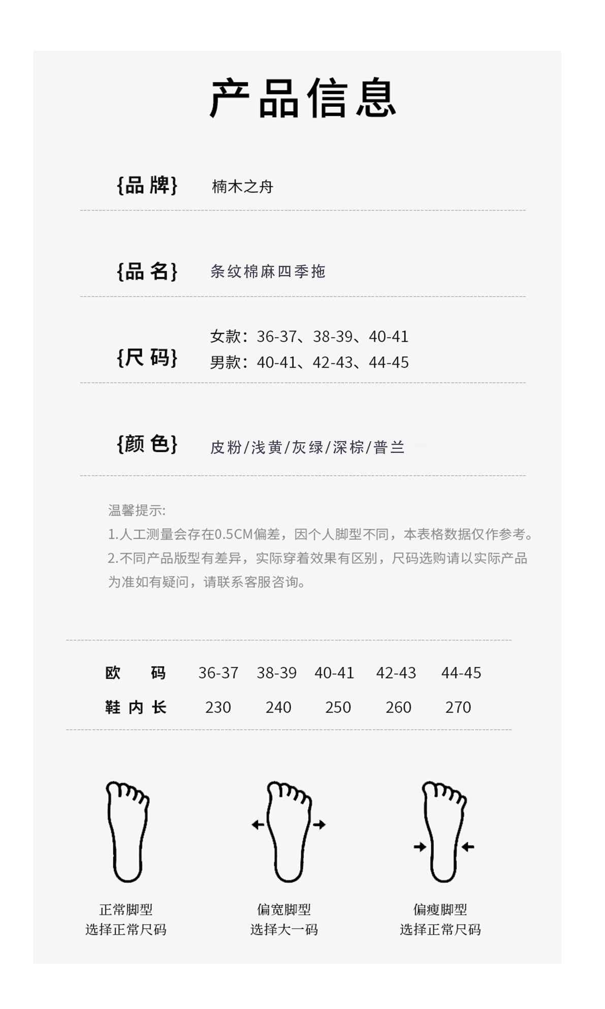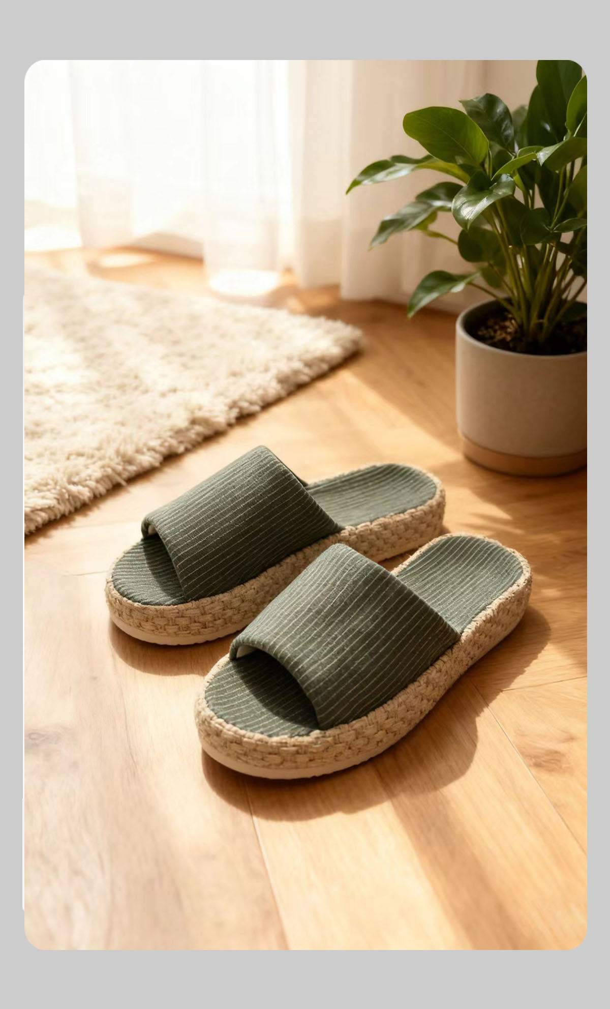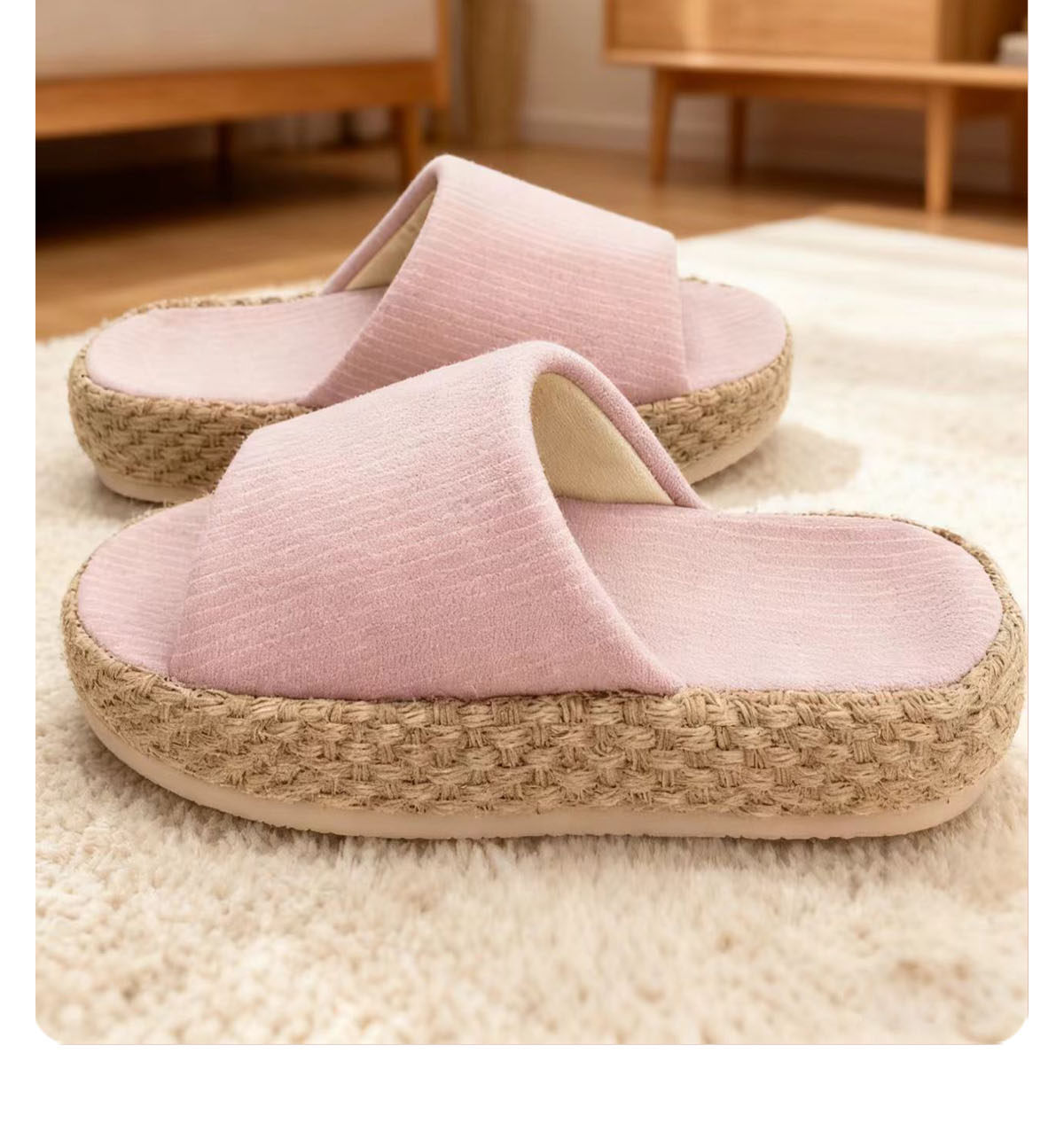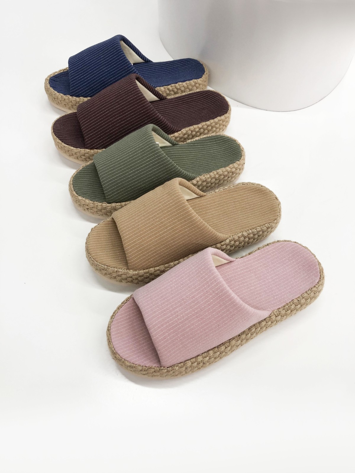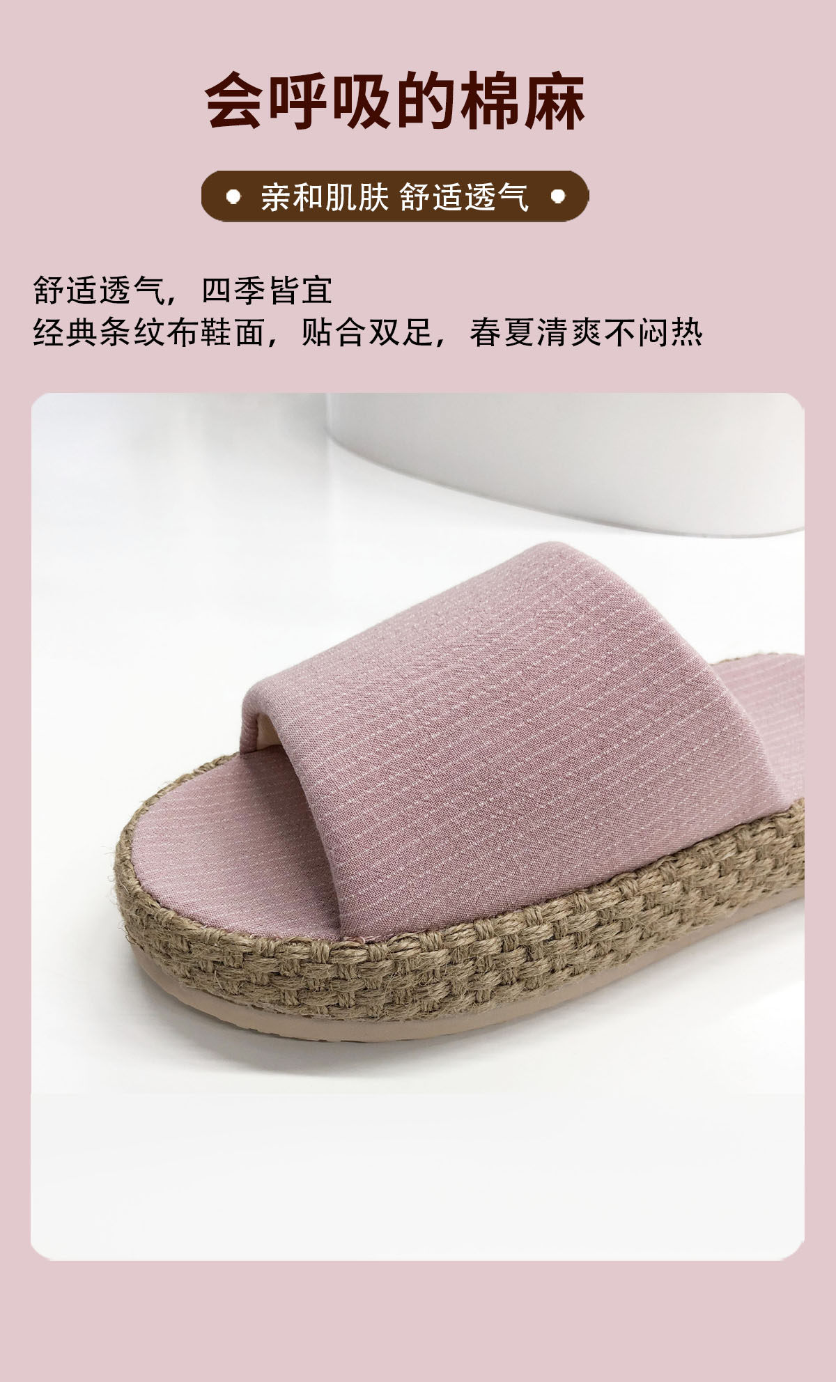 商品名称:(巨邦佑)BJ+楠木之舟 楠木之舟竖纹棉麻四季拖764N765W 居家厚底男女通用防滑静音室内四季拖