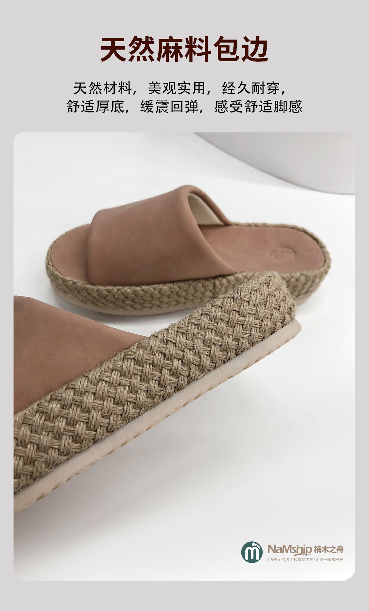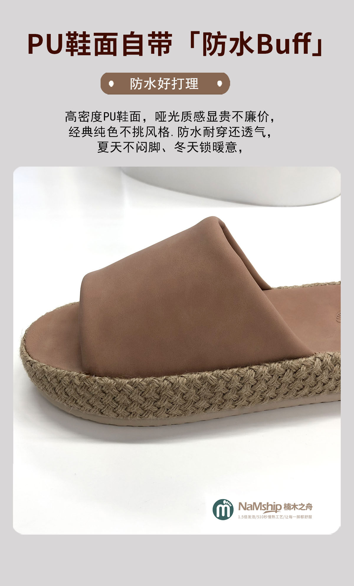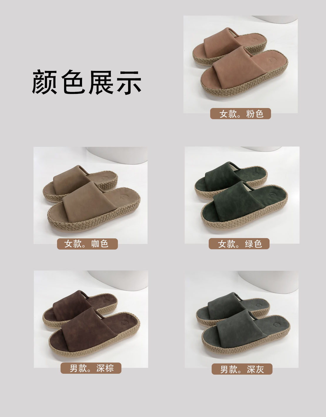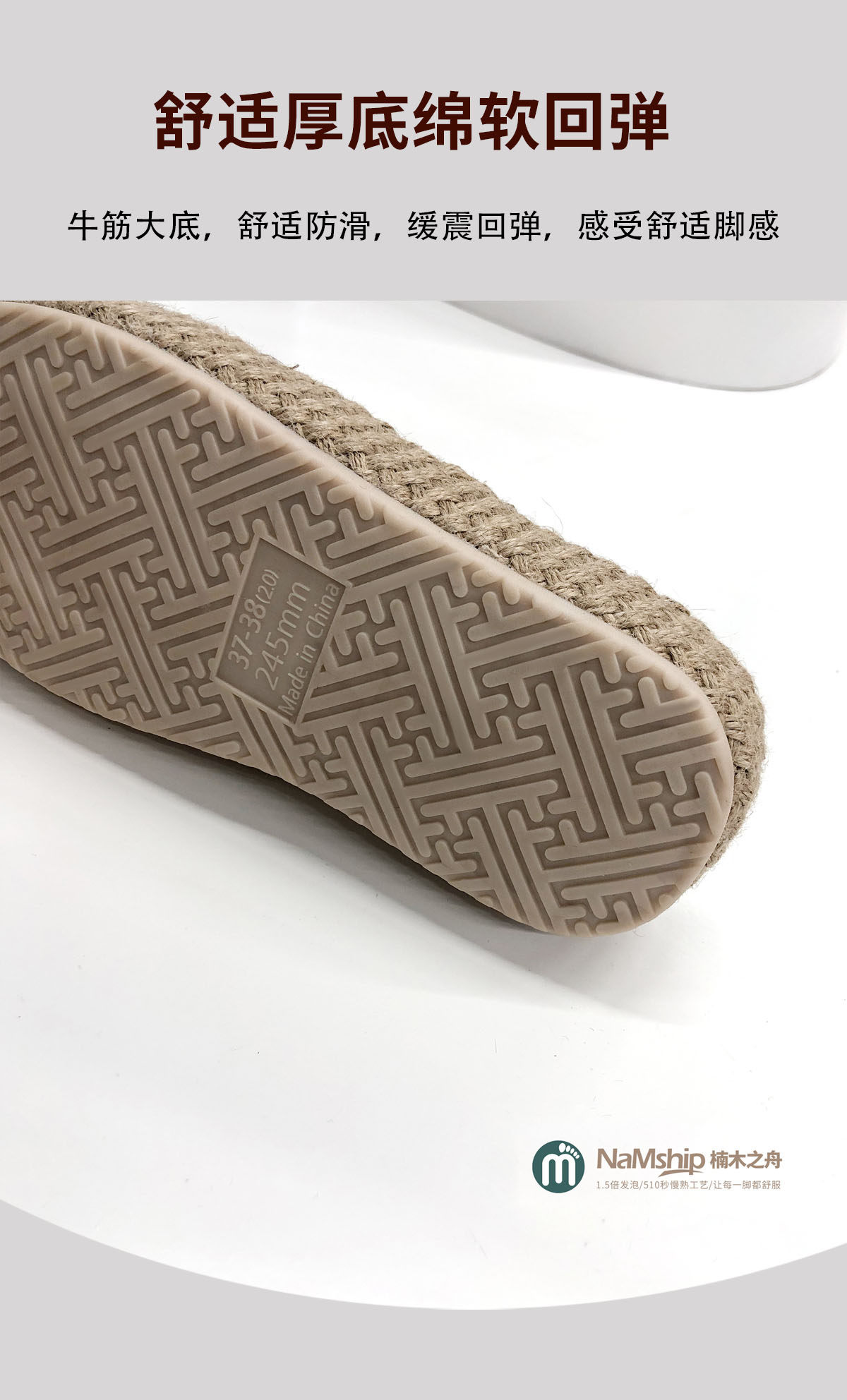 商品名称:(巨邦佑)BJ+楠木之舟 羊巴皮棉麻四季拖754N755W 鞋面防水防滑亚麻包边情侣居家四季拖