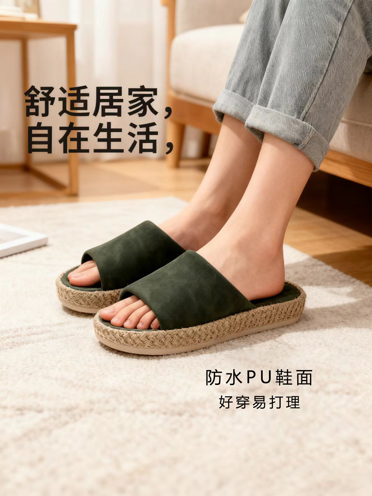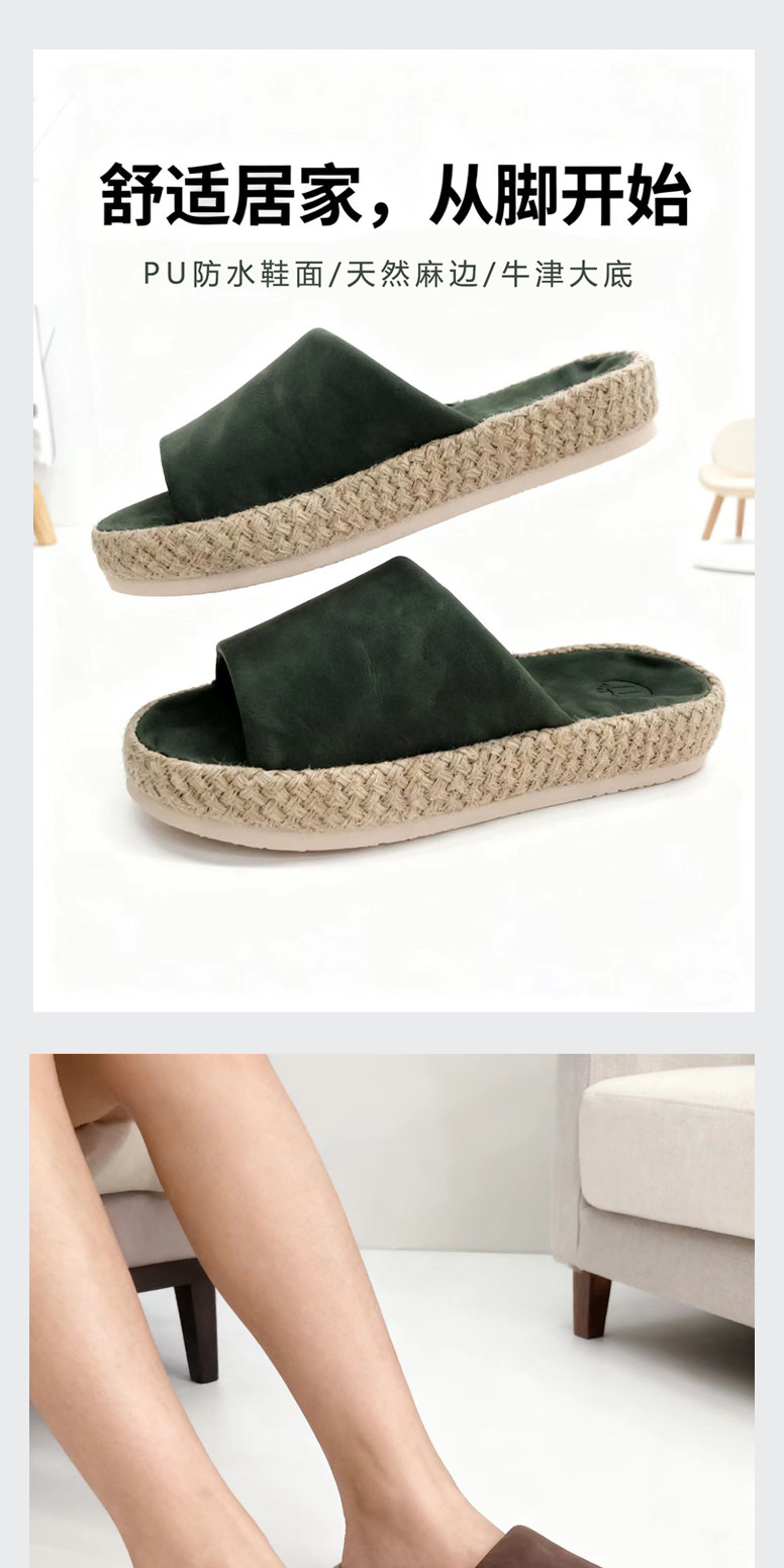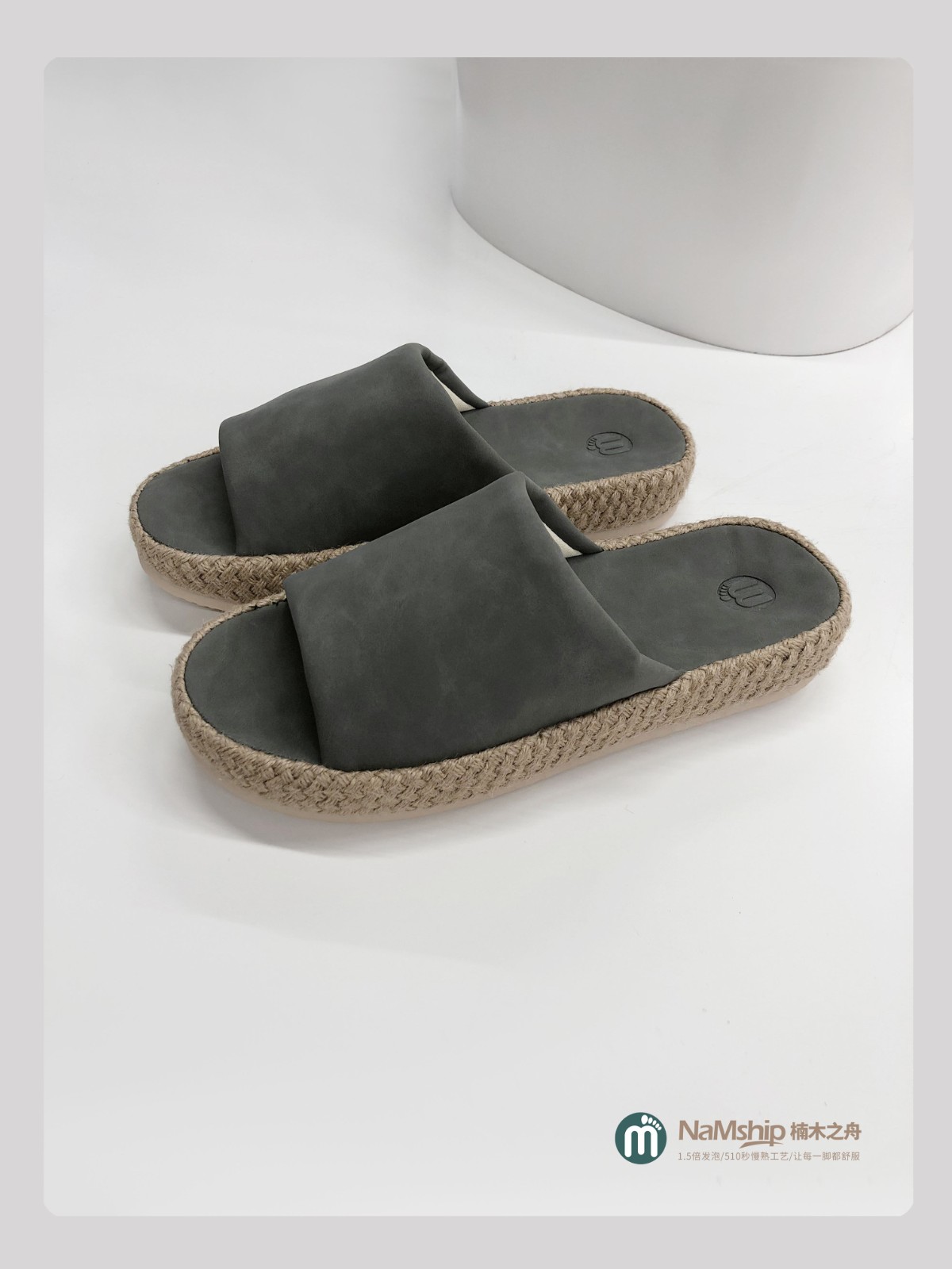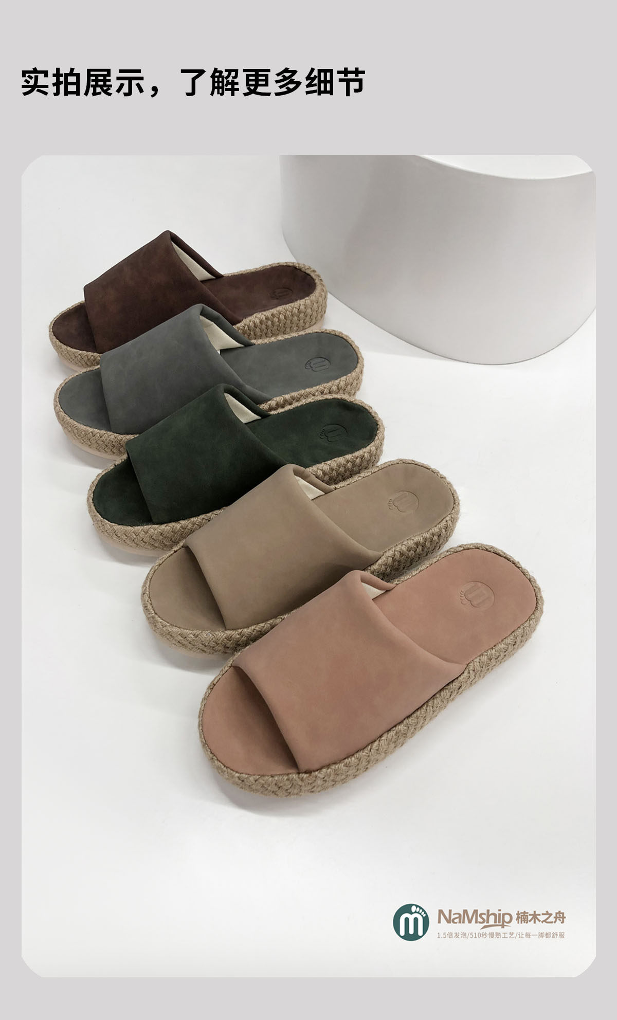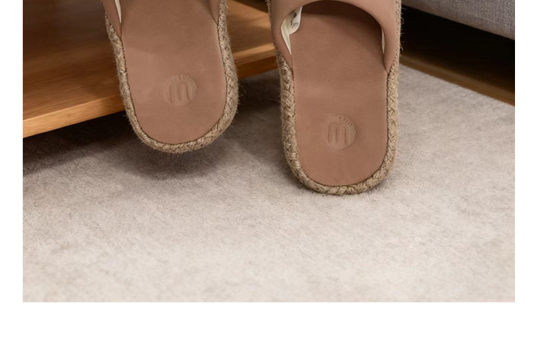 商品名称:(巨邦佑)BJ+楠木之舟 羊巴皮棉麻四季拖754N755W 鞋面防水防滑亚麻包边情侣居家四季拖