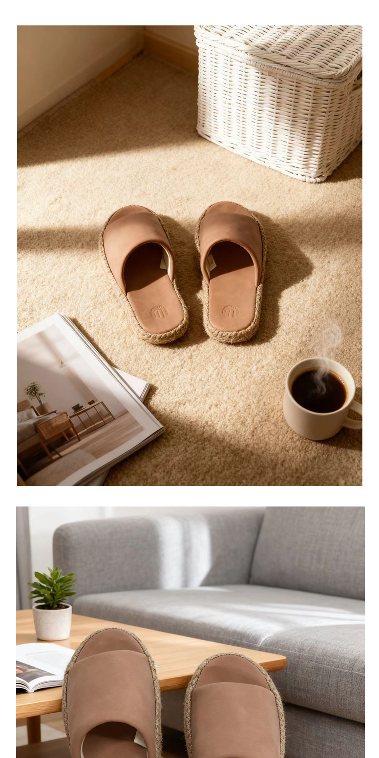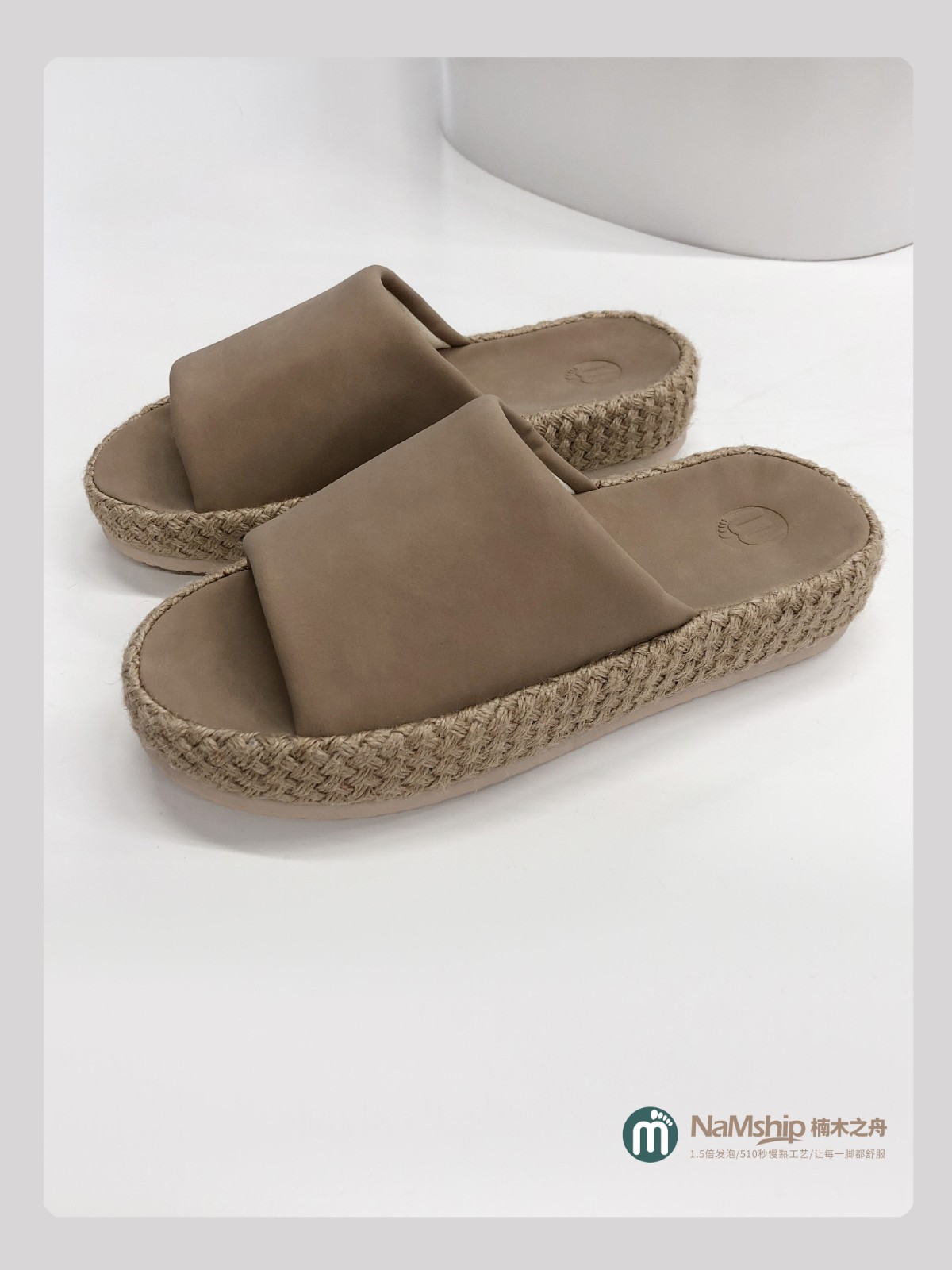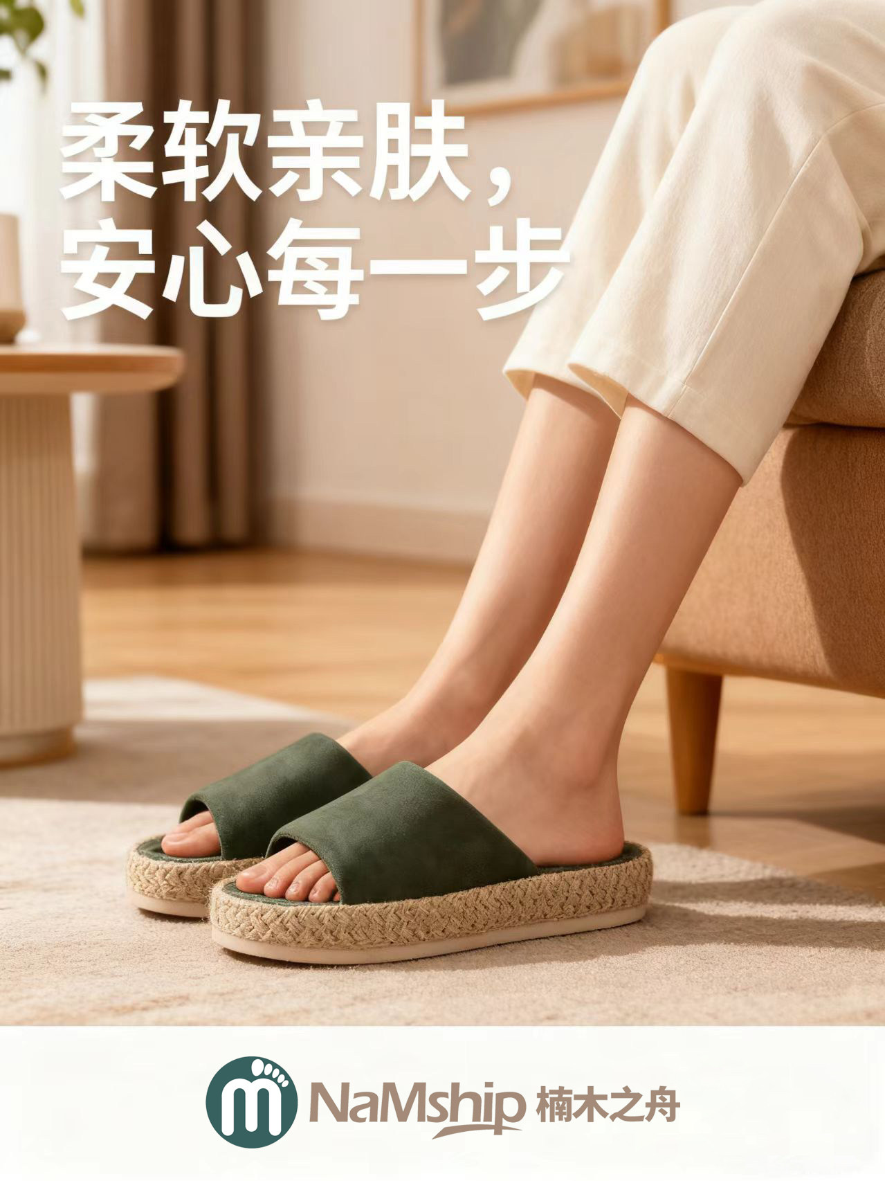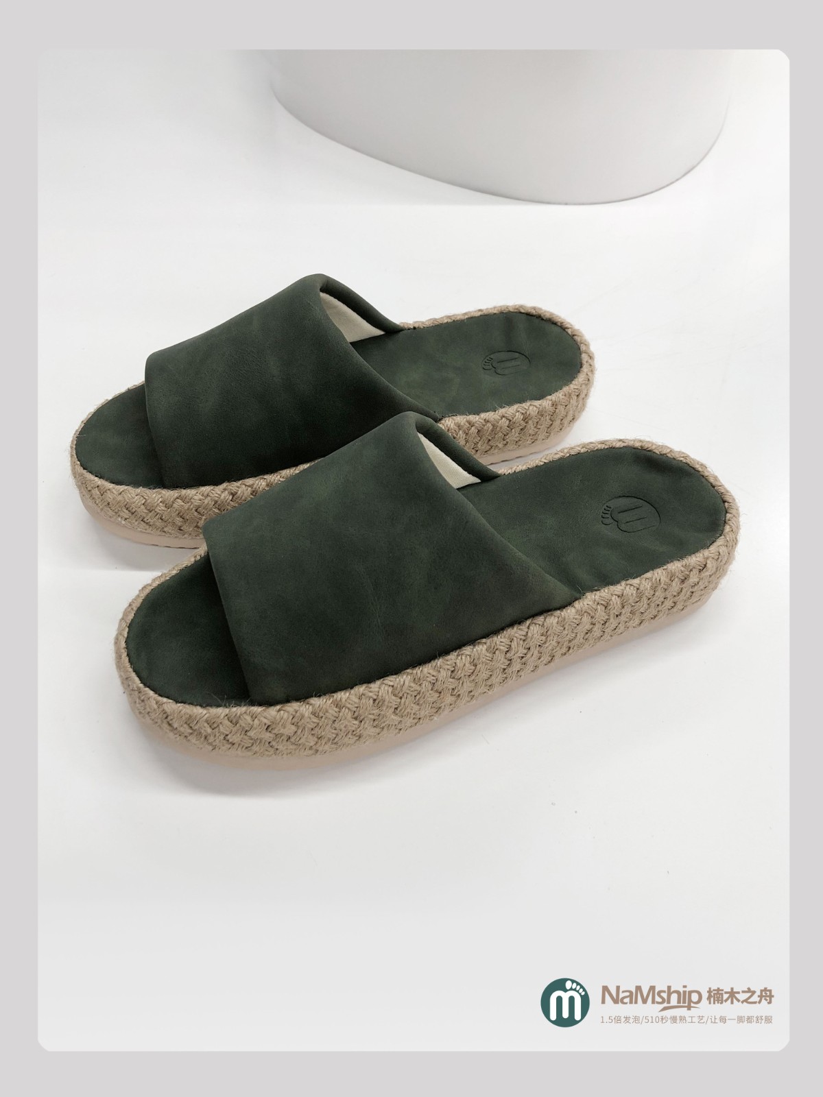 商品名称:(巨邦佑)BJ+楠木之舟 羊巴皮棉麻四季拖754N755W 鞋面防水防滑亚麻包边情侣居家四季拖