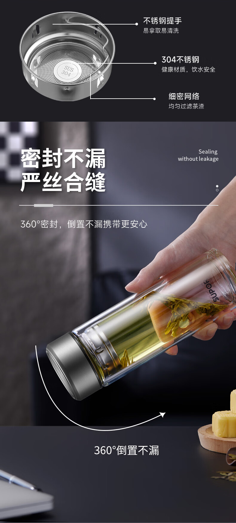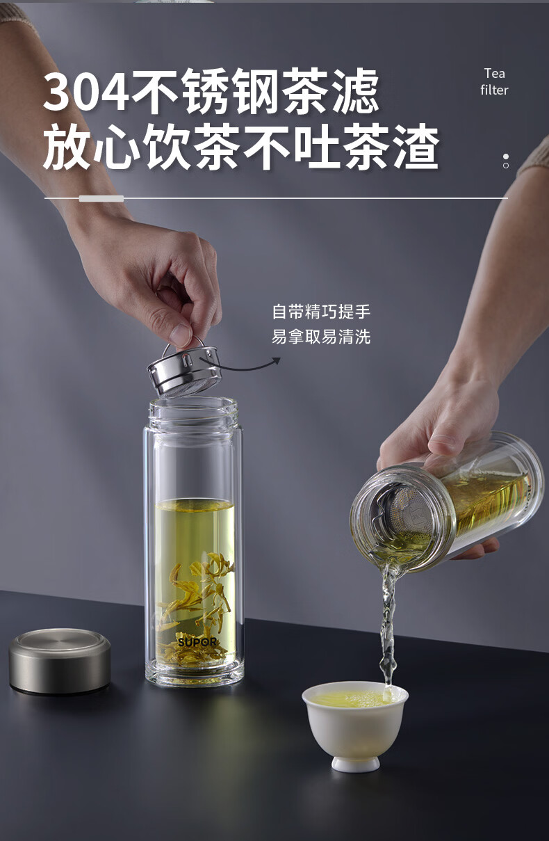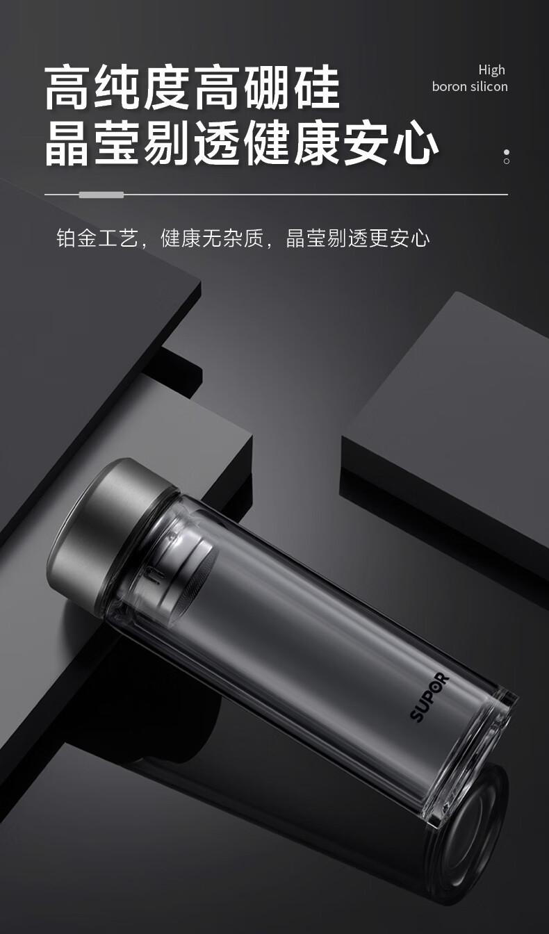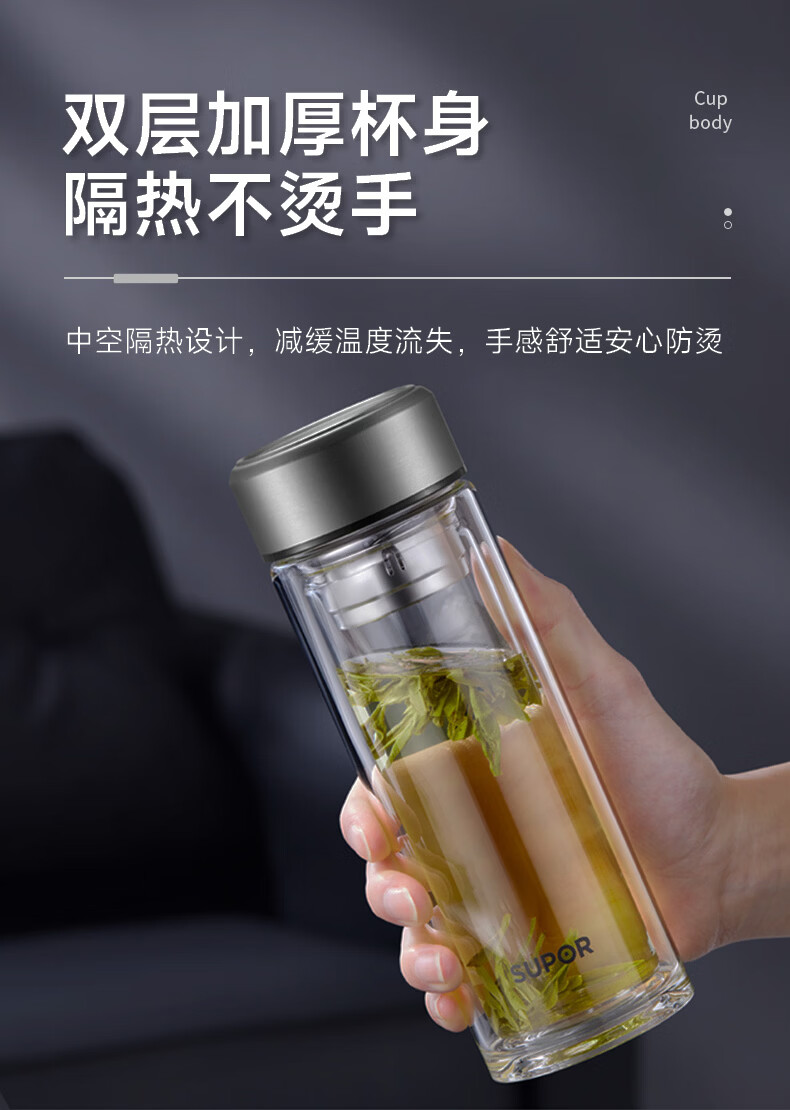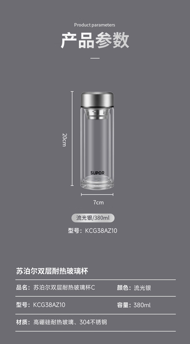 商品名称:(巨邦佑)BJ+苏泊尔(SUPOR) 双层耐热玻璃杯 380ml KCG38AZ10 双层隔热高硼硅杯子
