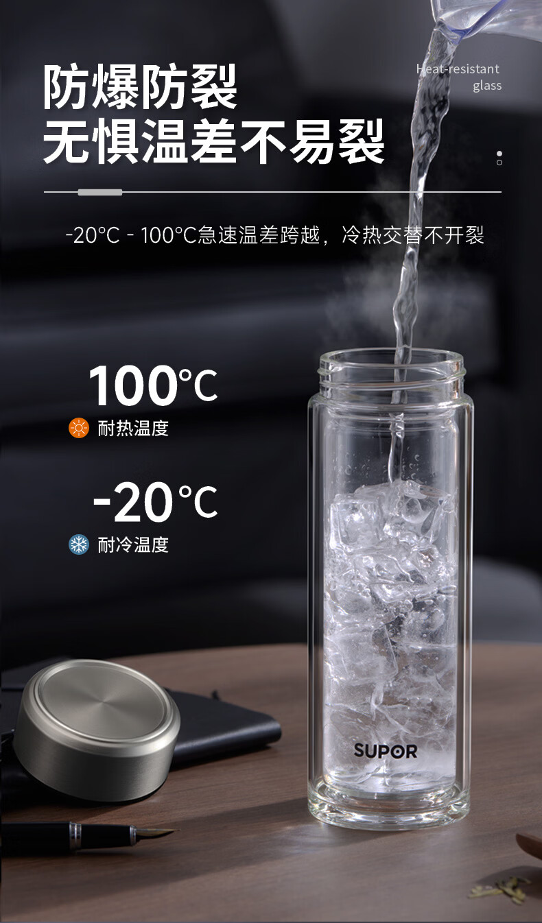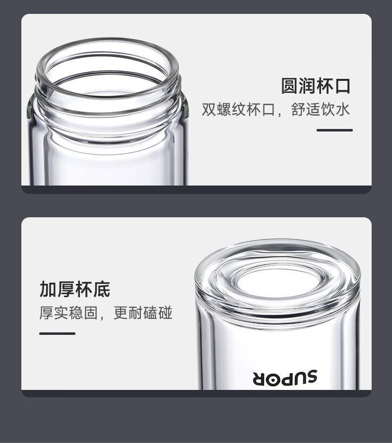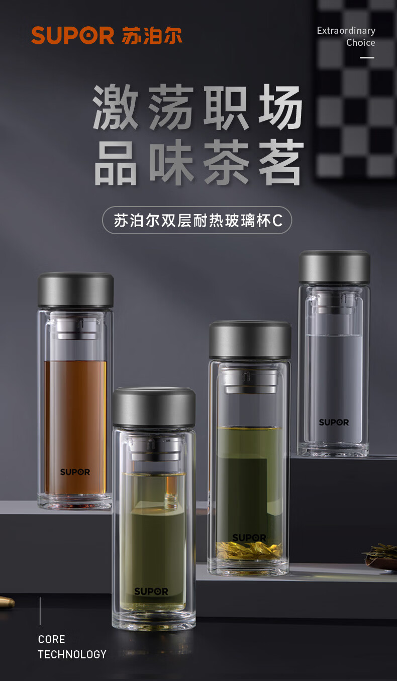 (巨邦佑)BJ+苏泊尔(SUPOR) 双层耐热玻璃杯 380ml KCG38AZ10 双层隔热高硼硅杯子