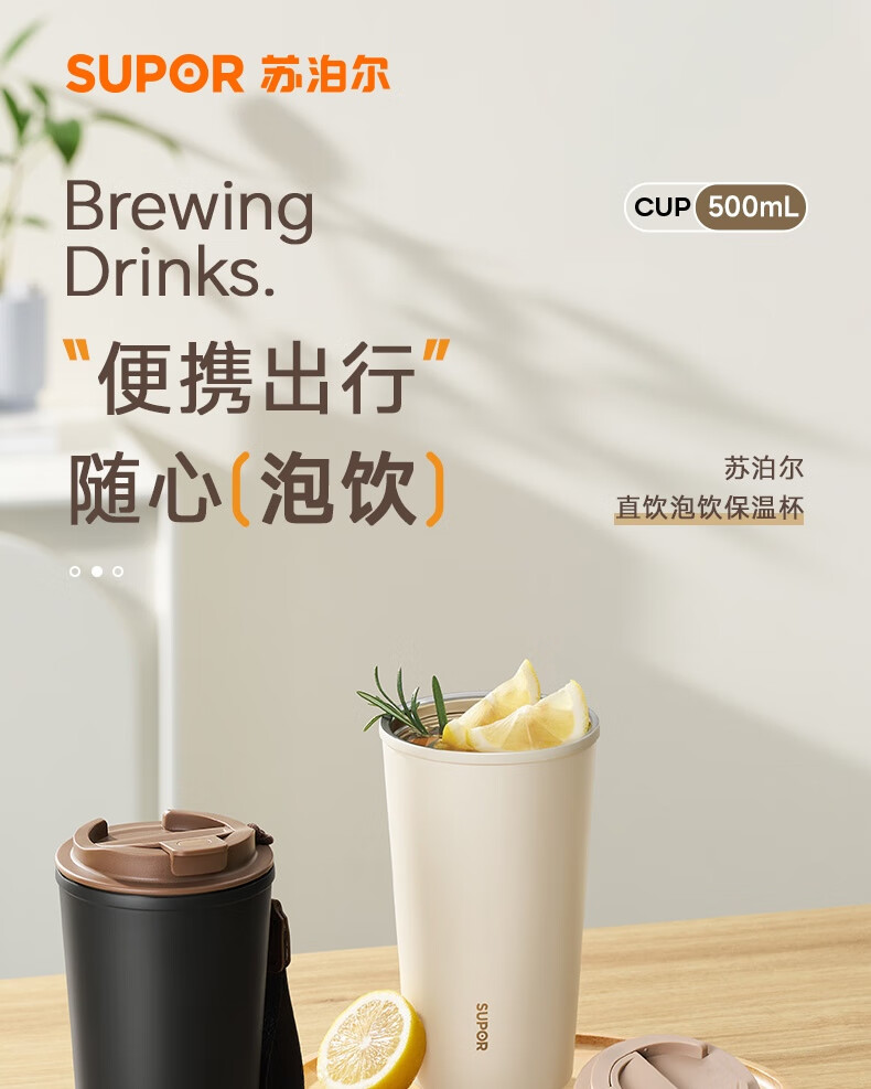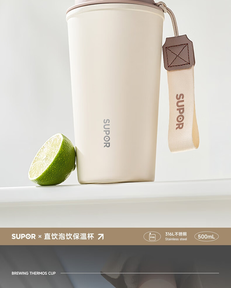 (巨邦佑)BJ+苏泊尔(SUPOR) 直饮泡饮保温杯 500ml KCV50DW10 保温保冷咖啡杯果汁杯奶茶杯水杯子