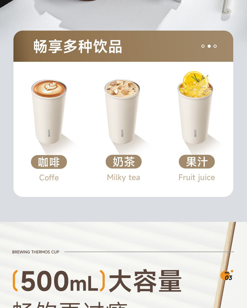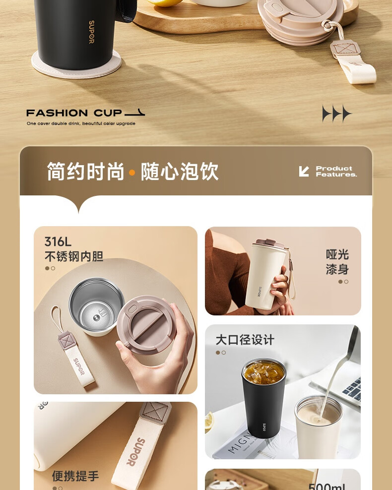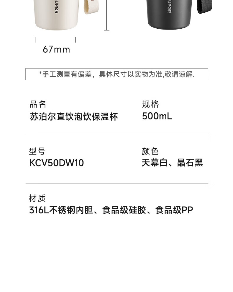 商品名称:(巨邦佑)BJ+苏泊尔(SUPOR) 直饮泡饮保温杯 500ml KCV50DW10 保温保冷咖啡杯果汁杯奶茶杯水杯子