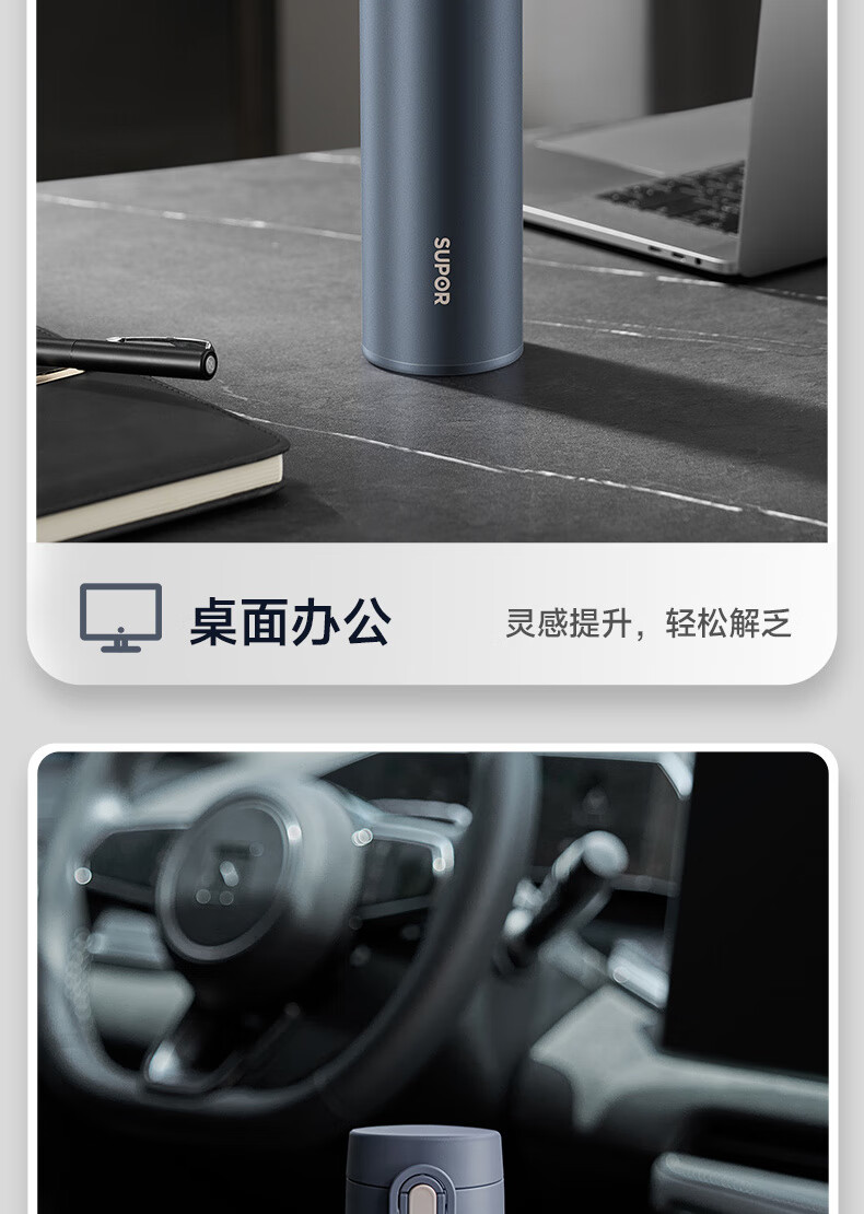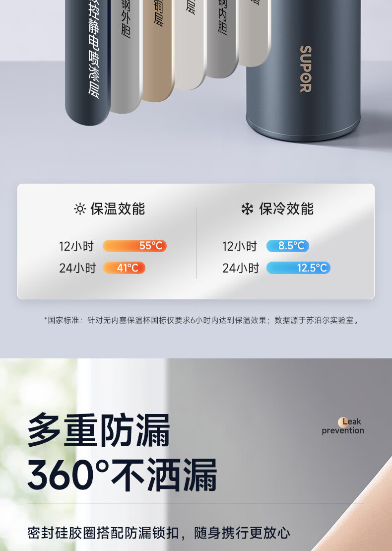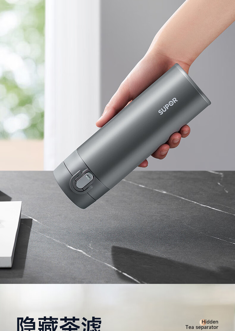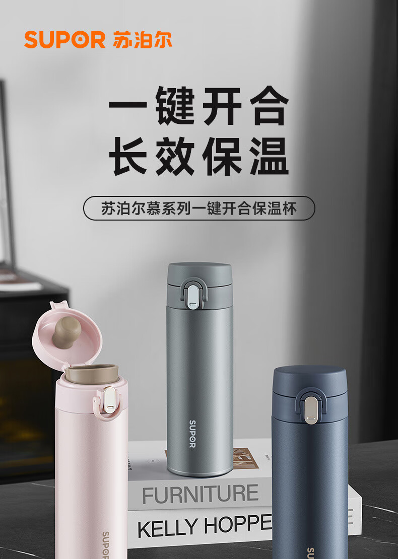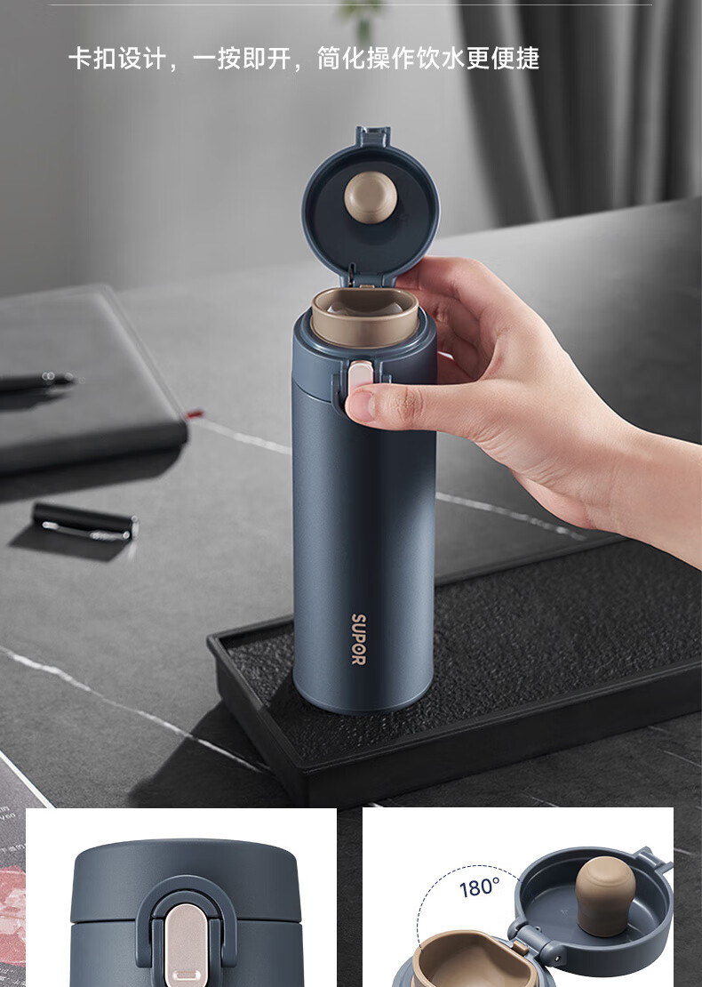 (巨邦佑)BJ+苏泊尔(SUPOR)一键开合保温杯 450ml KCV45AZ20 男女士儿童学生316L不锈钢保冷水杯子