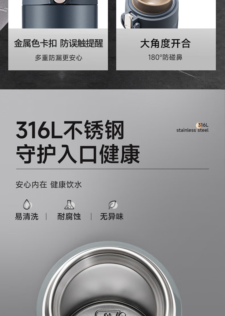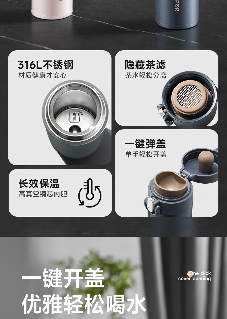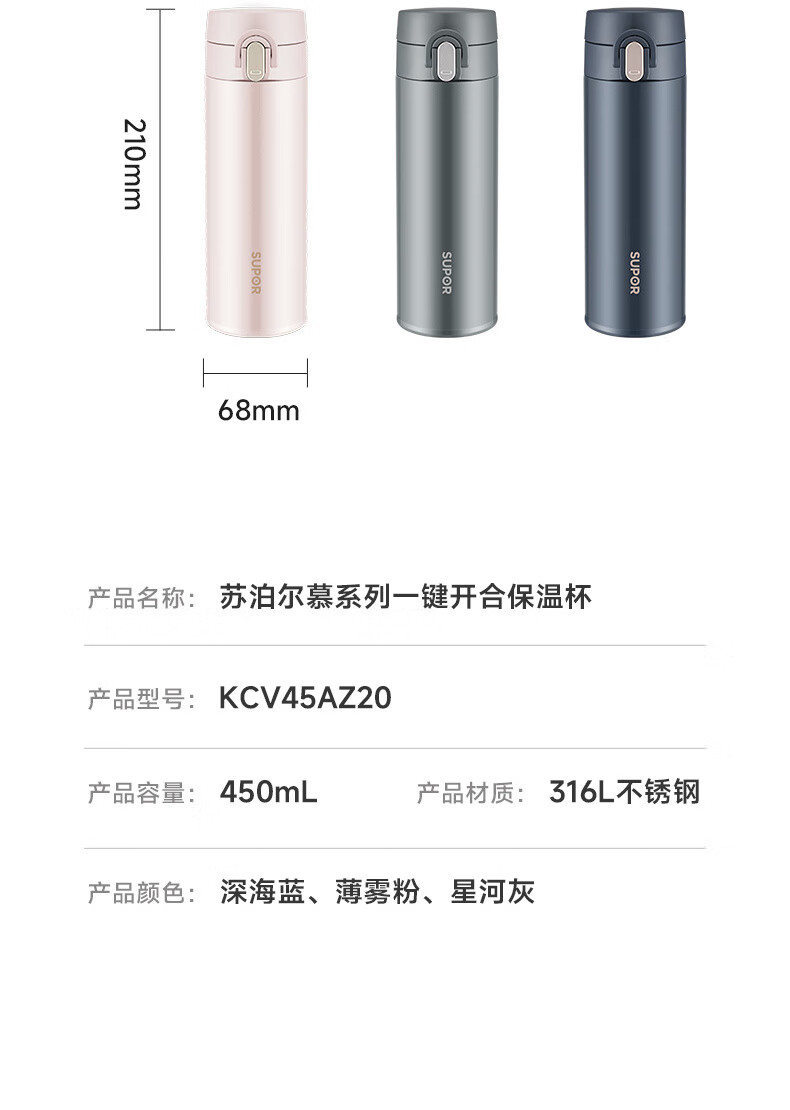 商品名称:(巨邦佑)BJ+苏泊尔(SUPOR)一键开合保温杯 450ml KCV45AZ20 男女士儿童学生316L不锈钢保冷水杯子