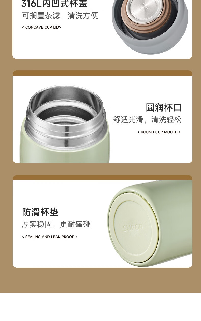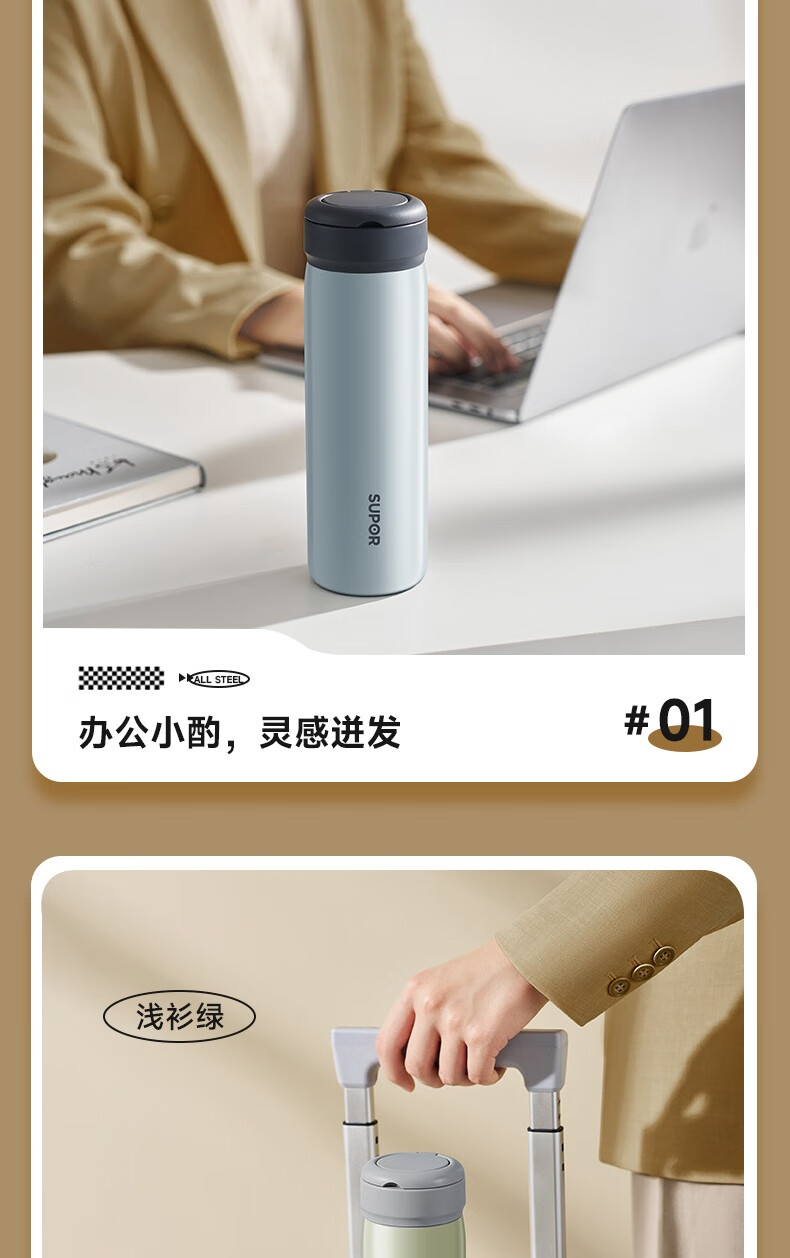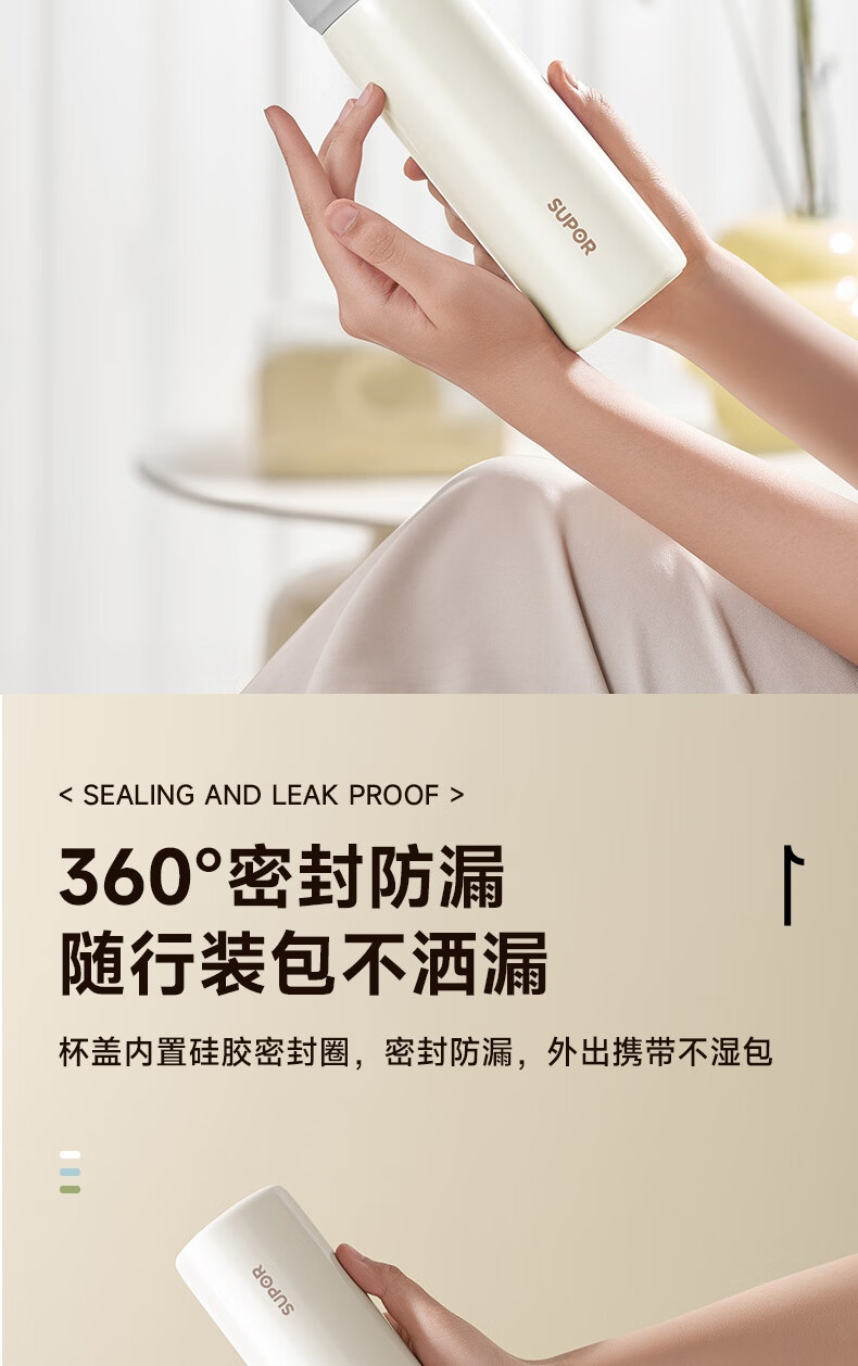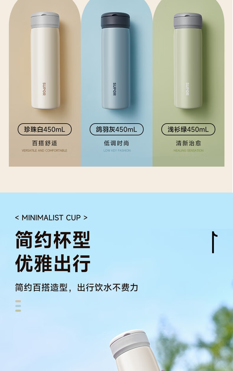 (巨邦佑)BJ+苏泊尔(SUPOR) 优系列保温杯 450ml KCV45BC10 速开双饮保温杯大容量便携男女士学生户外健身运动骑行水杯子