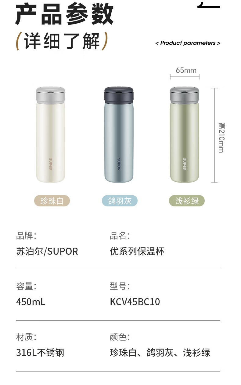 商品名称:(巨邦佑)BJ+苏泊尔(SUPOR) 优系列保温杯 450ml KCV45BC10 速开双饮保温杯大容量便携男女士学生户外健身运动骑行水杯子