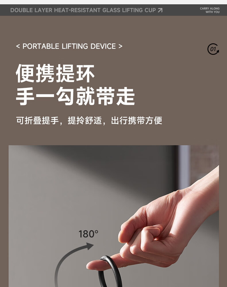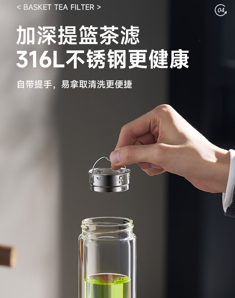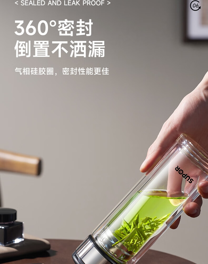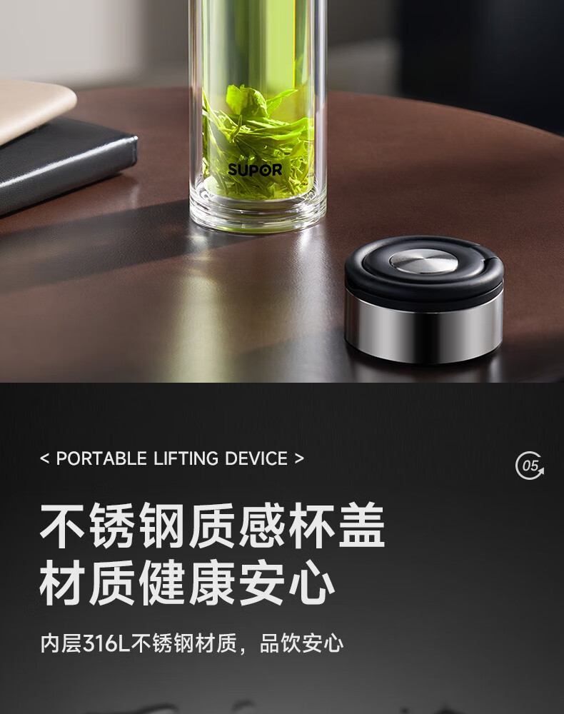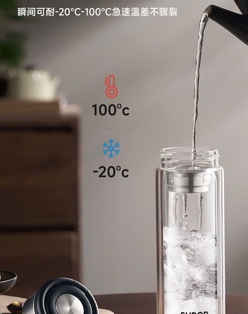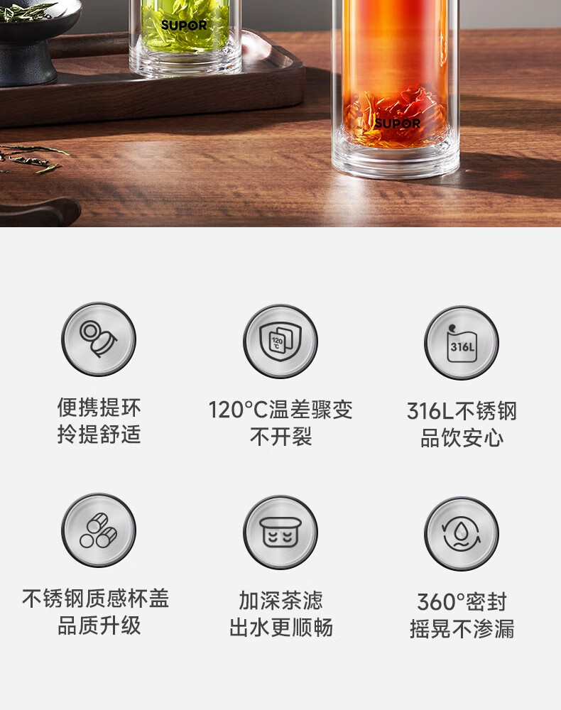 商品名称:(巨邦佑)BJ+苏泊尔(SUPOR)双层耐热玻璃提环杯320ml KCG32BR10 水杯男女过滤泡茶杯子
