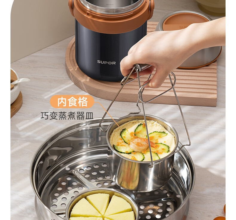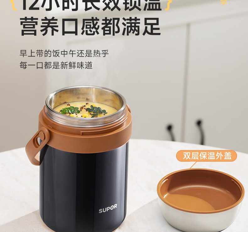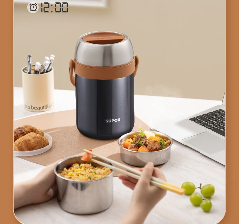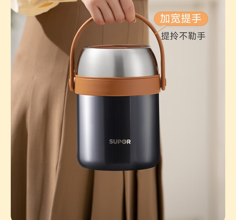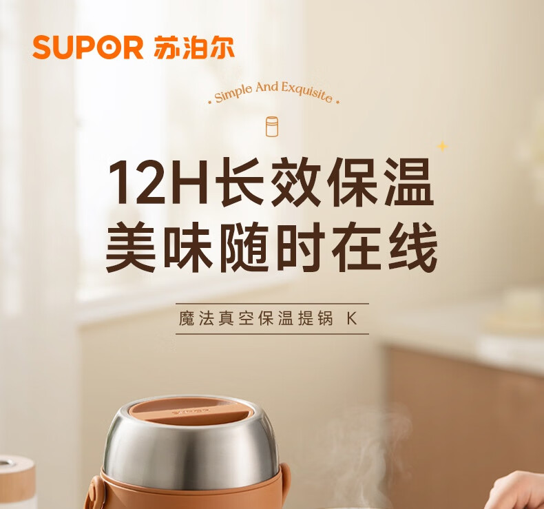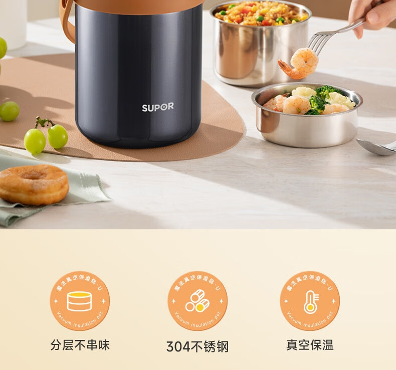 (巨邦佑)BJ+苏泊尔(SUPOR)魔法真空保温提锅 2L KFV20AD10 直型防溢304不锈钢三层饭盒保温桶