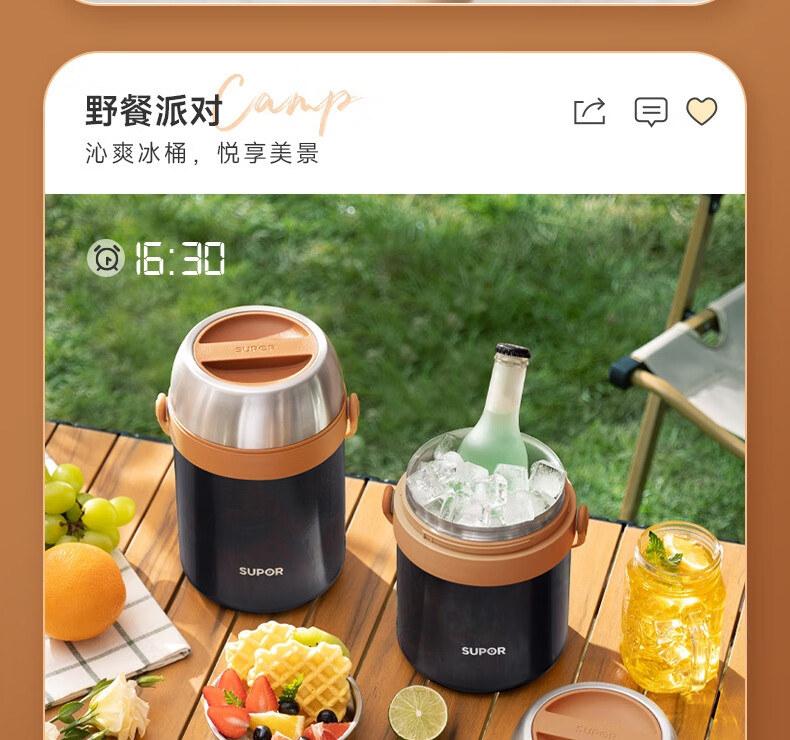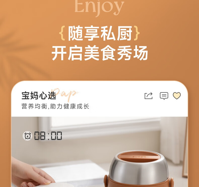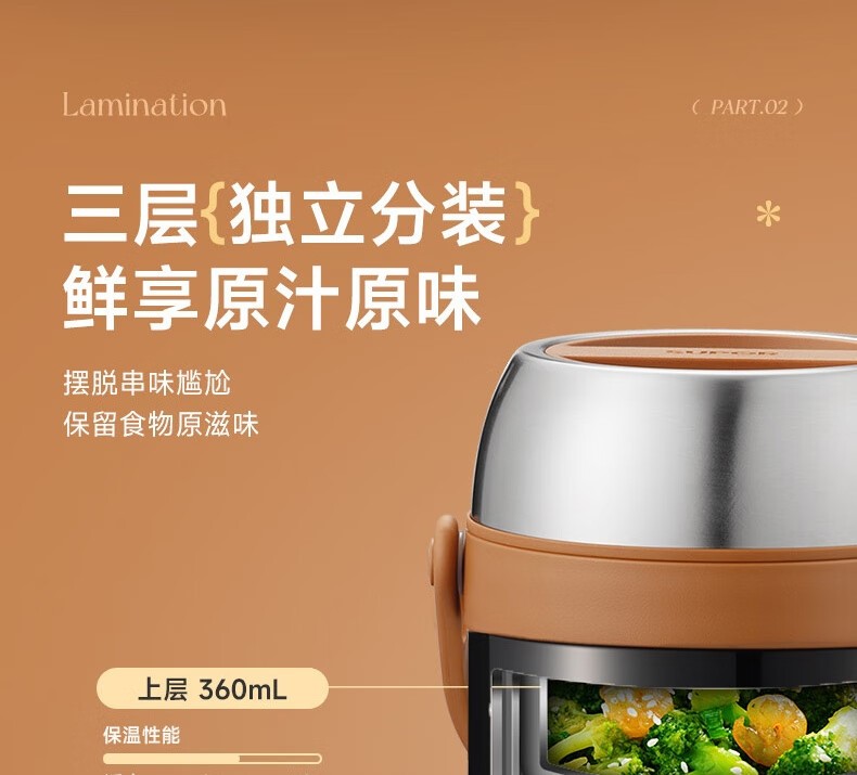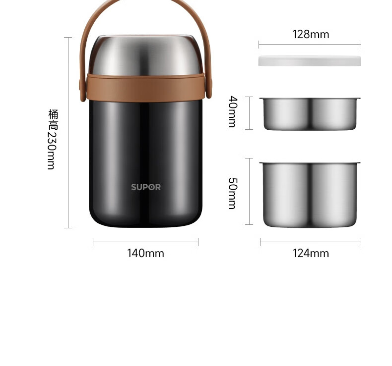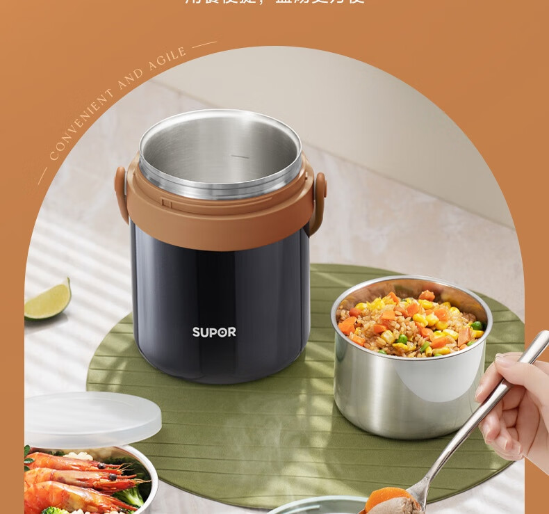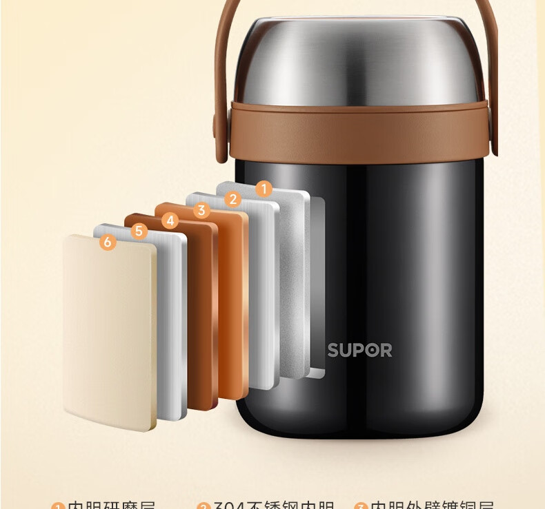 (巨邦佑)BJ+苏泊尔(SUPOR)魔法真空保温提锅 2L KFV20AD10 直型防溢304不锈钢三层饭盒保温桶