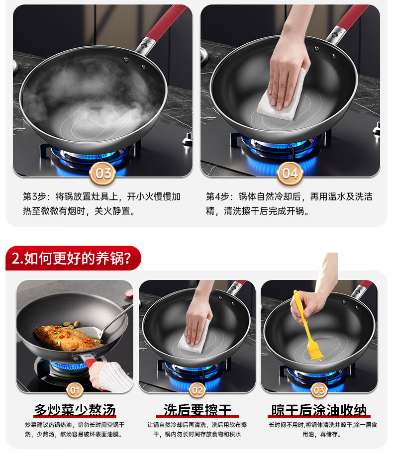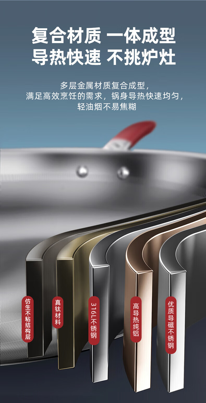 商品名称:(巨邦佑)BJ+康巴赫(KBH)真钛0涂层不粘炒锅第三代32cm KGO-C32T 0涂层抗菌炒锅无涂层316L不锈钢炒菜锅电磁炉燃气通用