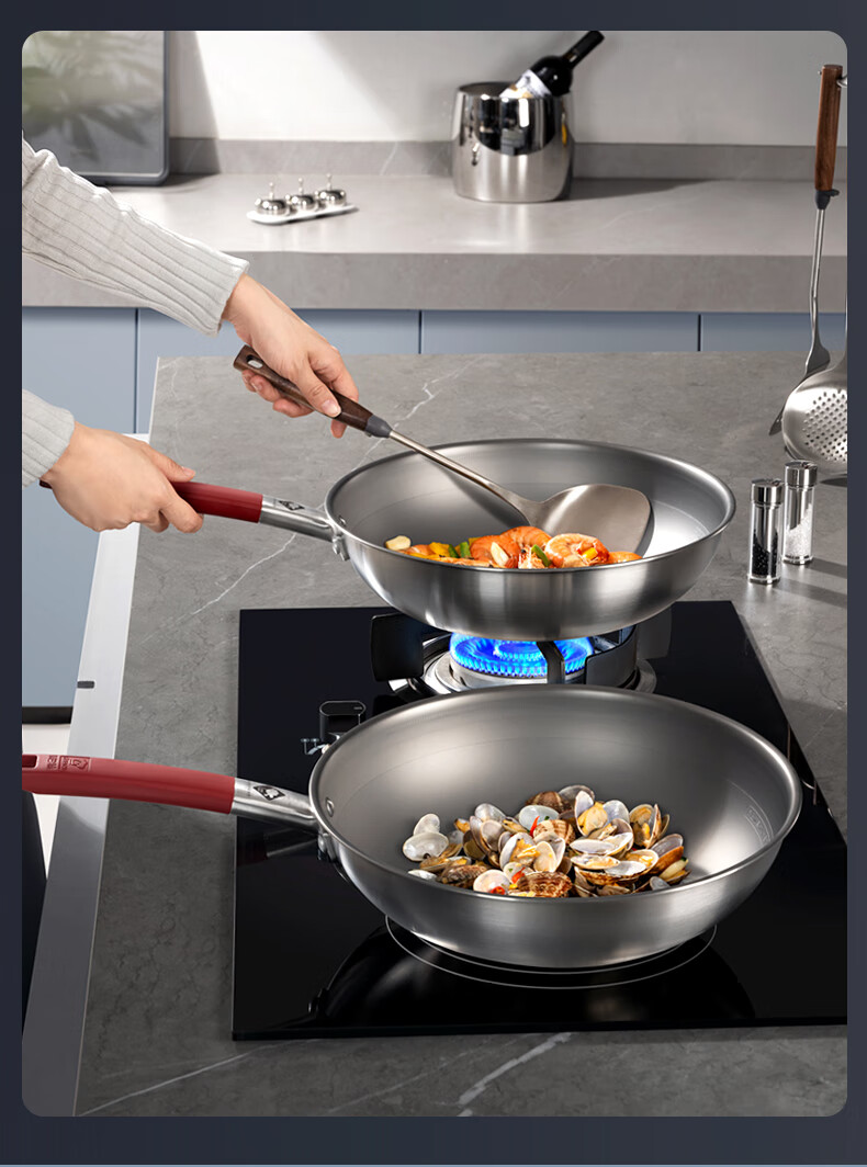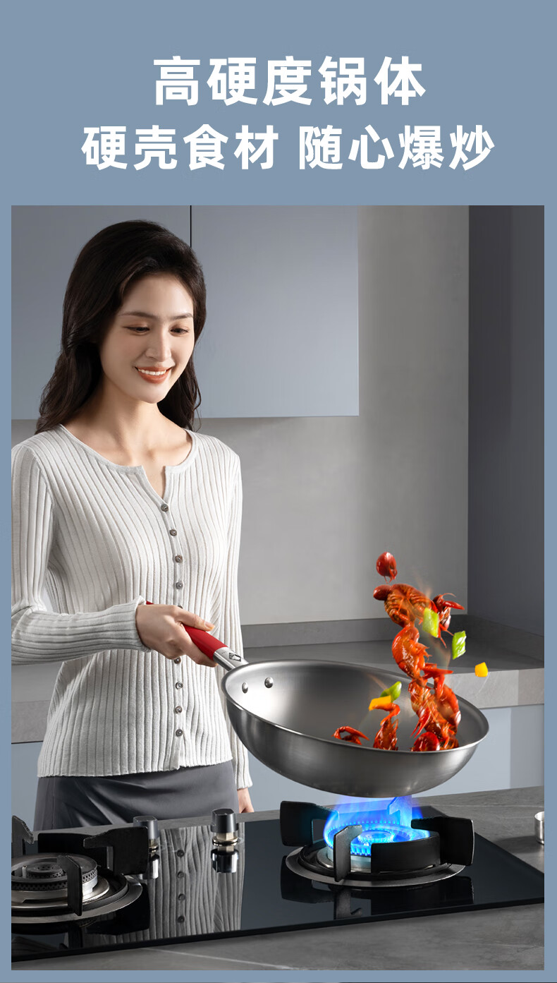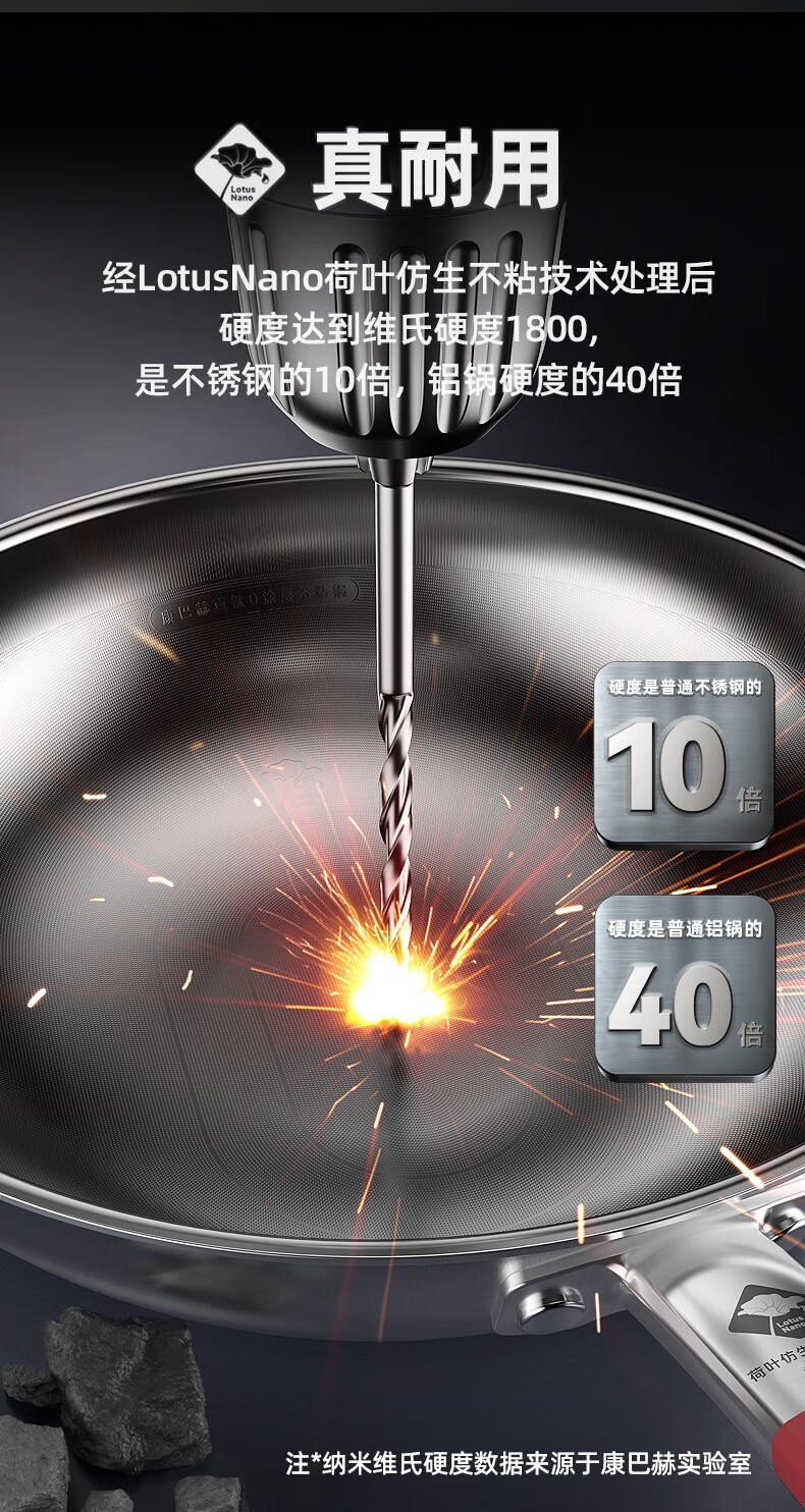 (巨邦佑)BJ+康巴赫(KBH)真钛0涂层不粘炒锅第三代32cm KGO-C32T 0涂层抗菌炒锅无涂层316L不锈钢炒菜锅电磁炉燃气通用