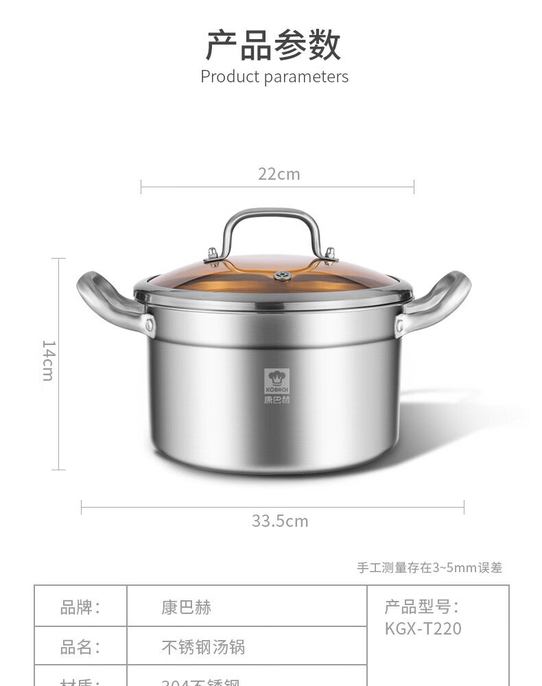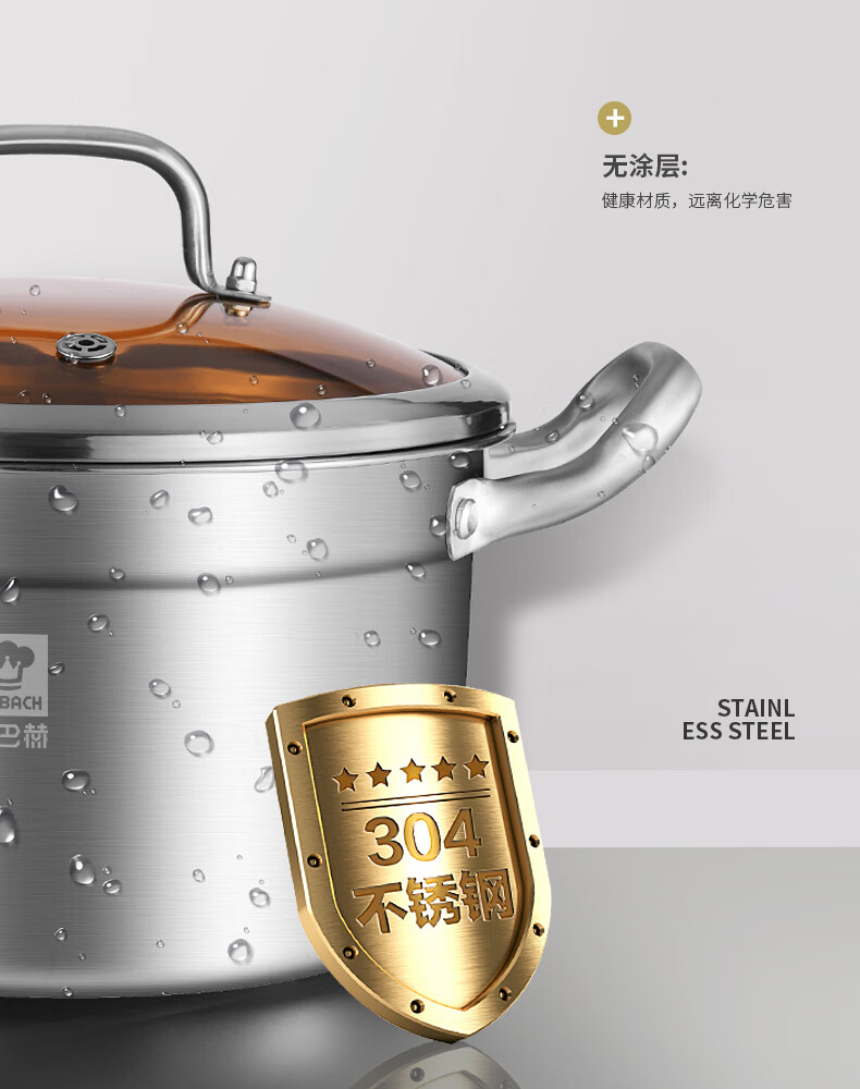 商品名称:(巨邦佑)BJ+康巴赫 新欧式304汤锅 22cm KGX-T22O 不锈钢炖锅煮面锅煲汤炖肉煮奶锅厨房电磁炉燃气灶通用