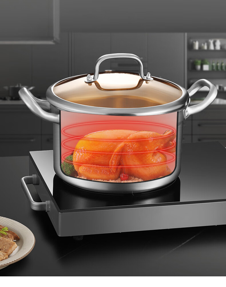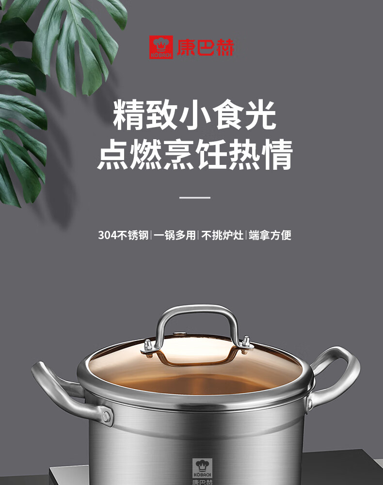 (巨邦佑)BJ+康巴赫 新欧式304汤锅 22cm KGX-T22O 不锈钢炖锅煮面锅煲汤炖肉煮奶锅厨房电磁炉燃气灶通用