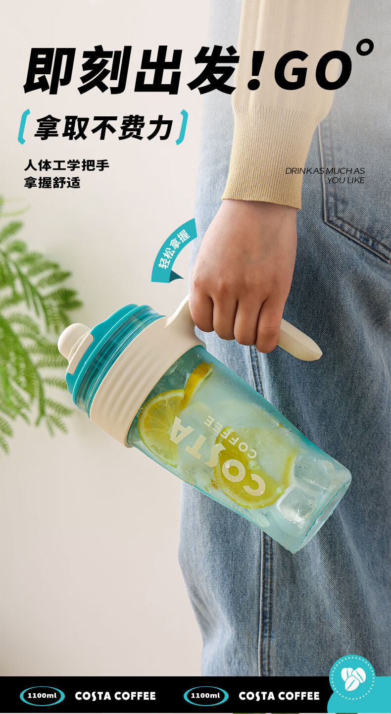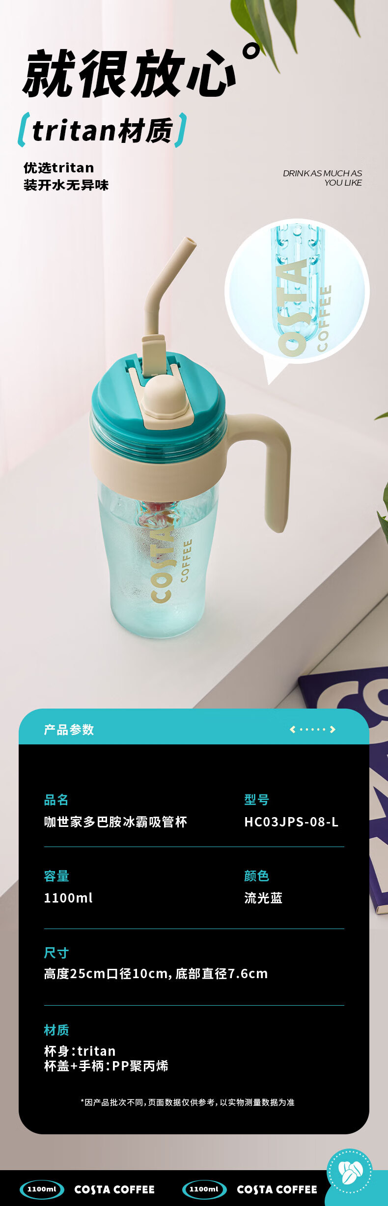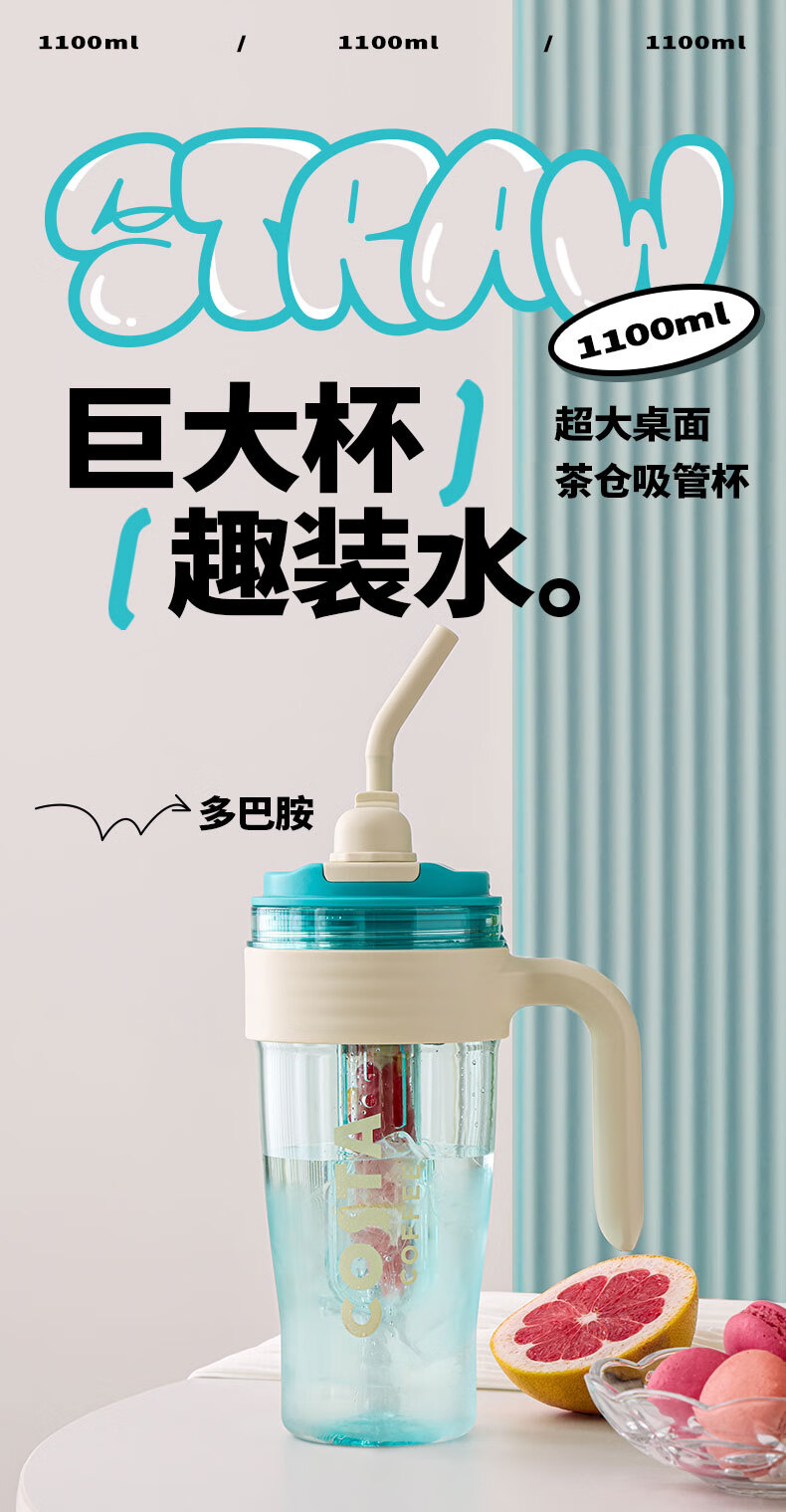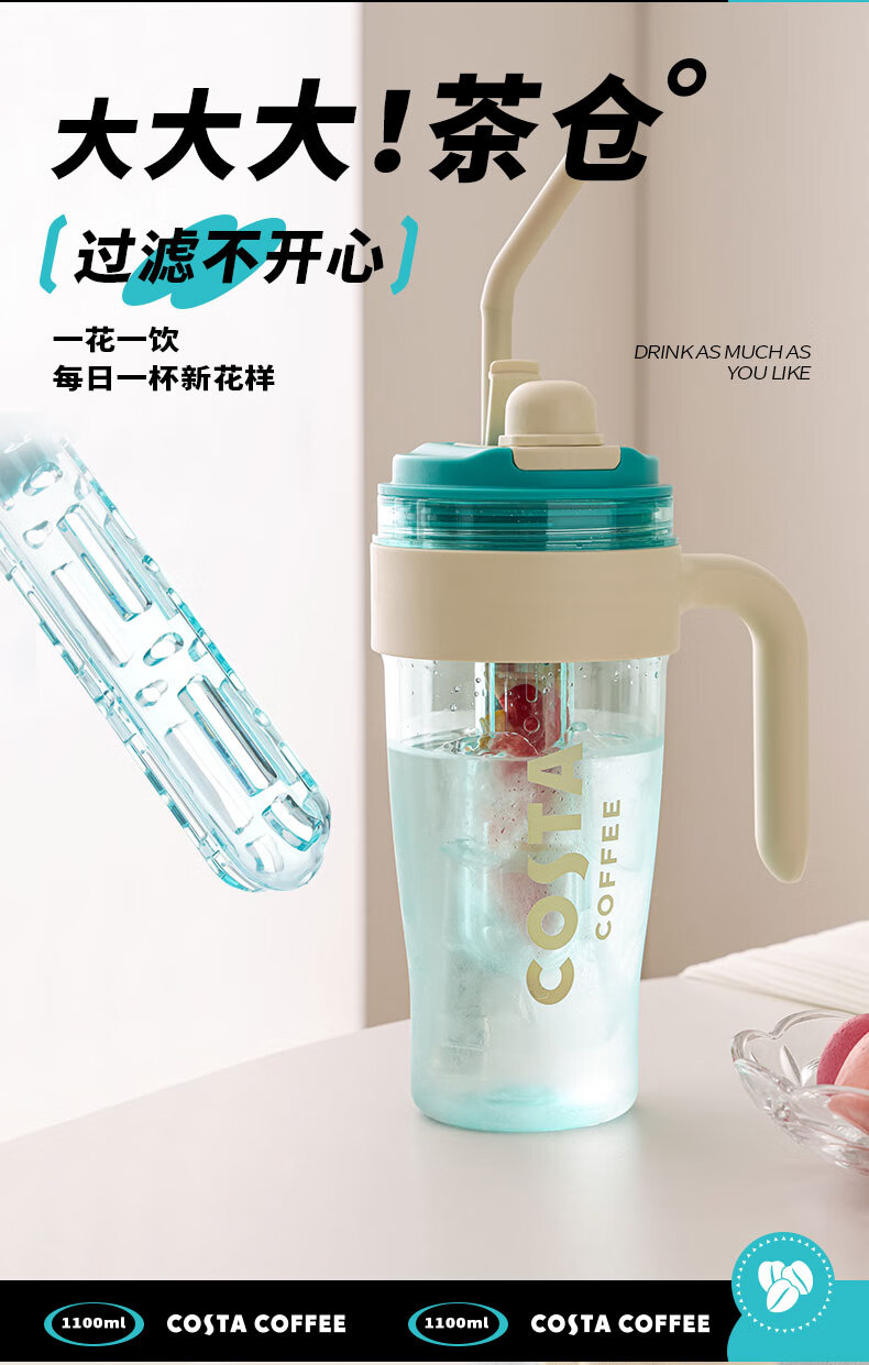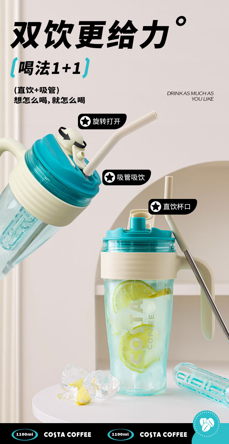 商品名称:(巨邦佑)BJ+COSTA 咖世家多巴胺冰霸吸管杯 1100ml HC03JPS-08-L 人体工学把手双饮杯便携杯子