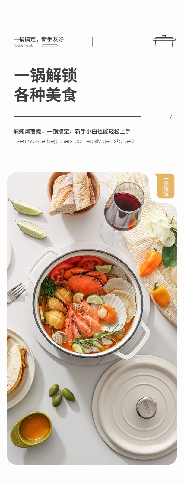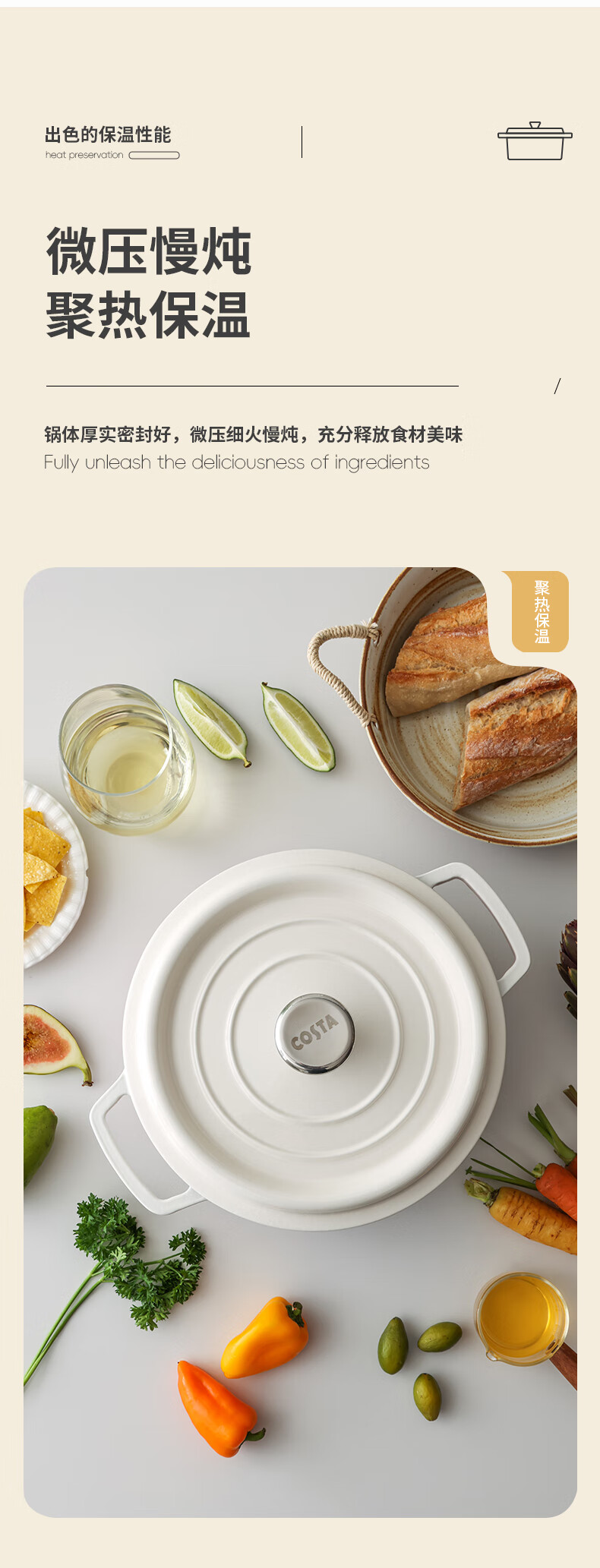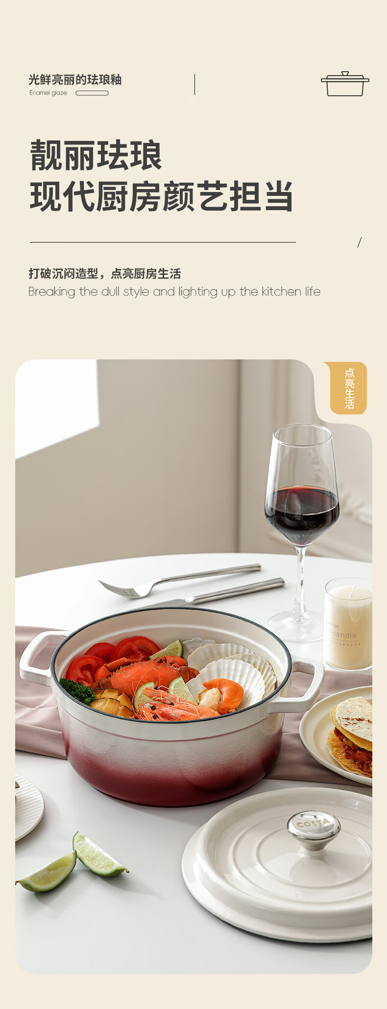 (巨邦佑)BJ+COSTA 咖世家铸铁珐琅炖锅 COSTA -9511 珐琅内壁厚实把手