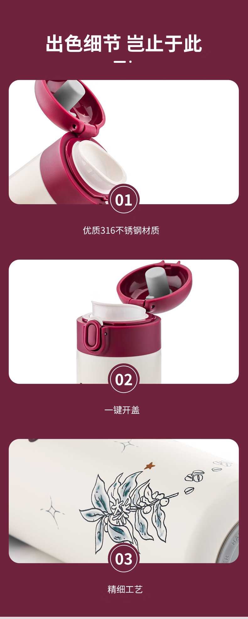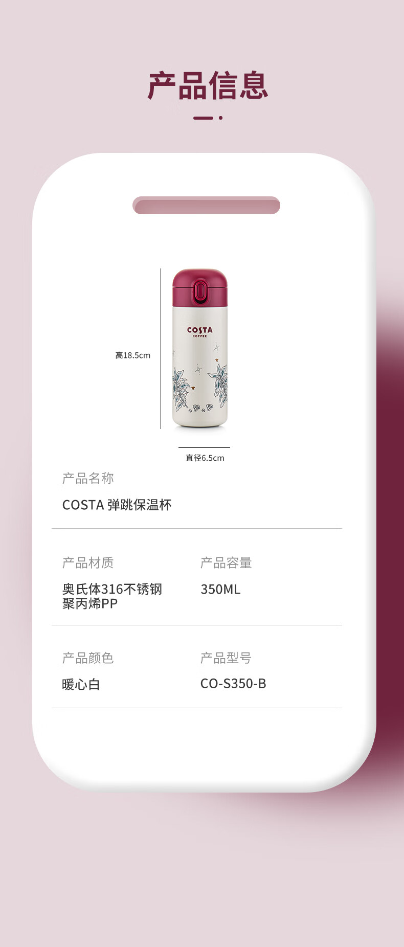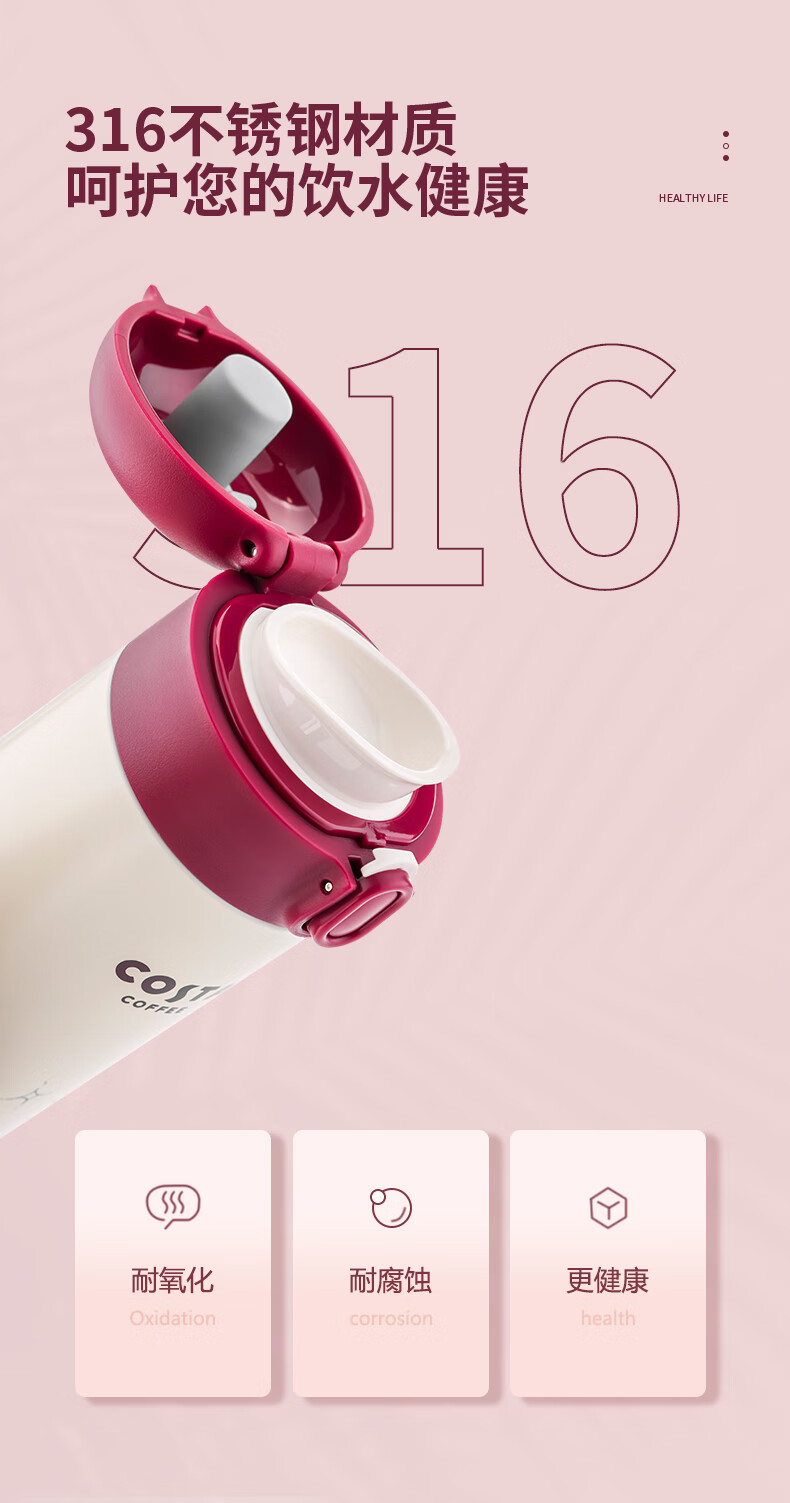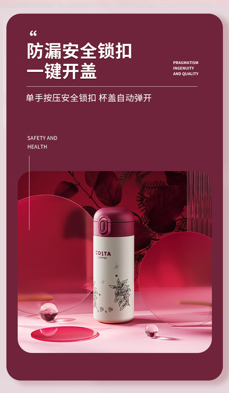 商品名称:(巨邦佑)BJ+COSTA 弹跳保温杯 360ml CO-S350-B 316不锈钢防漏安全锁扣
