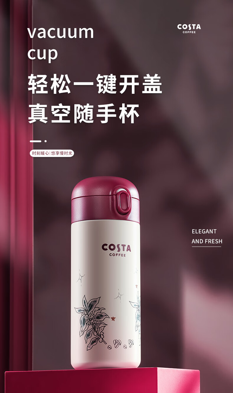 (巨邦佑)BJ+COSTA 弹跳保温杯 360ml CO-S350-B 316不锈钢防漏安全锁扣