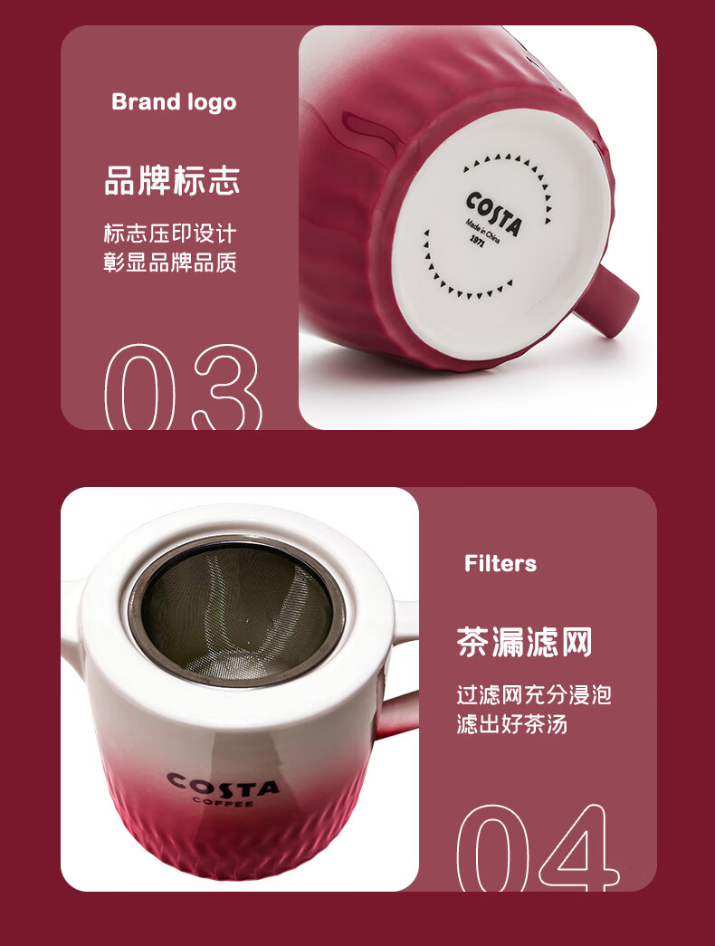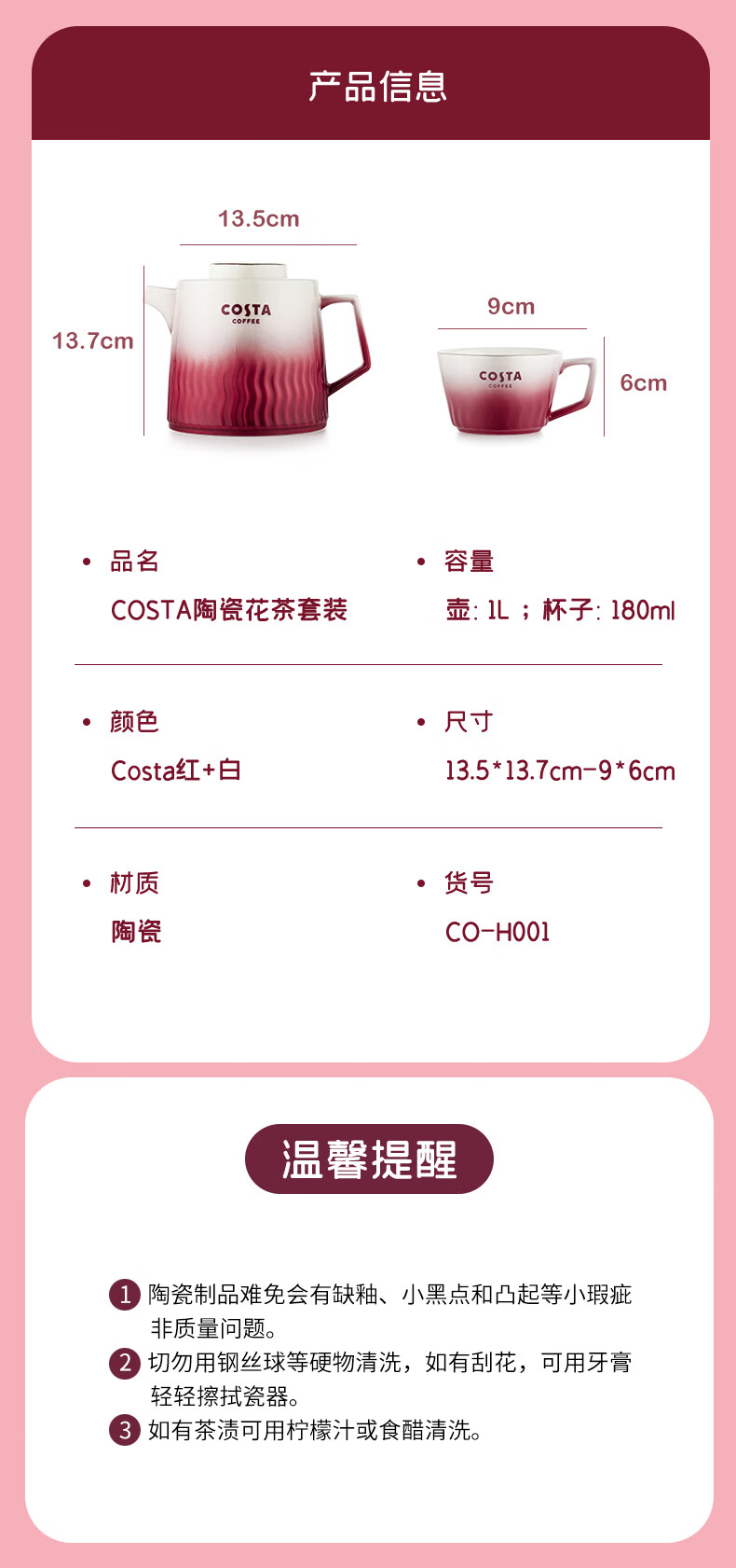 商品名称:(巨邦佑)BJ+COSTA 陶瓷花茶套装 CO-H001 耐冷耐热舒适握把