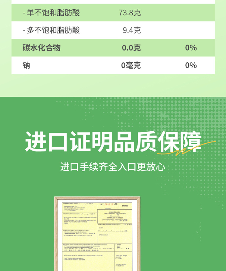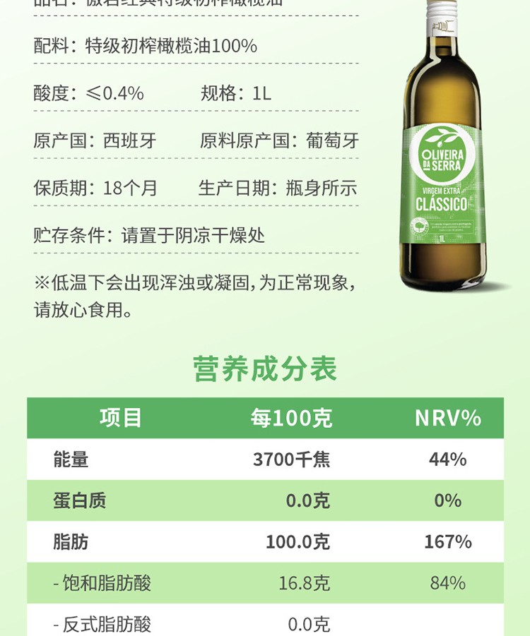 商品名称:(超运·禾贸)傲若(原瓶进口) 特级初榨橄榄油 1L 西班牙原装原瓶进口 压榨烹饪