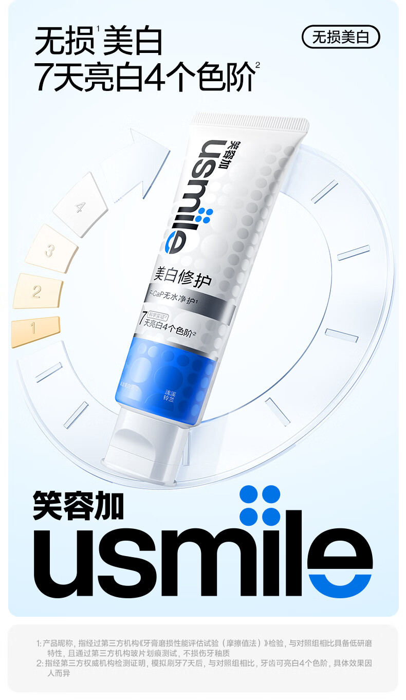 (超运·禾贸)usmile笑容加 卓效美白牙膏(浅溪铃兰)80g*2支 无损美白牙膏